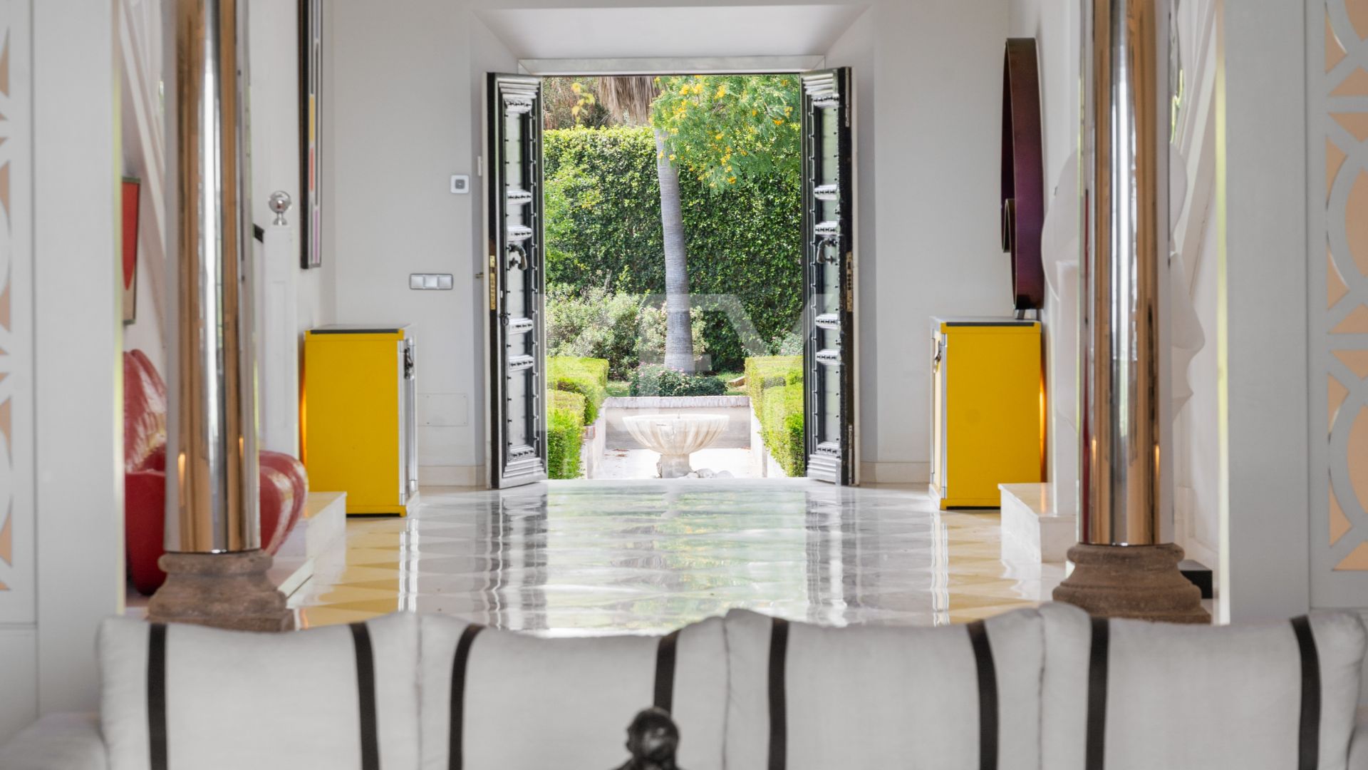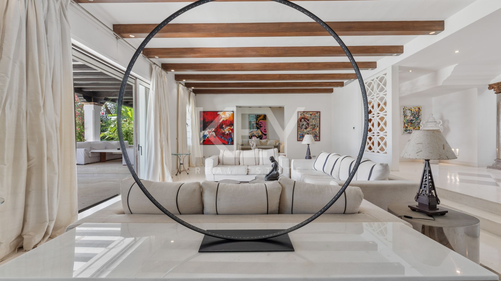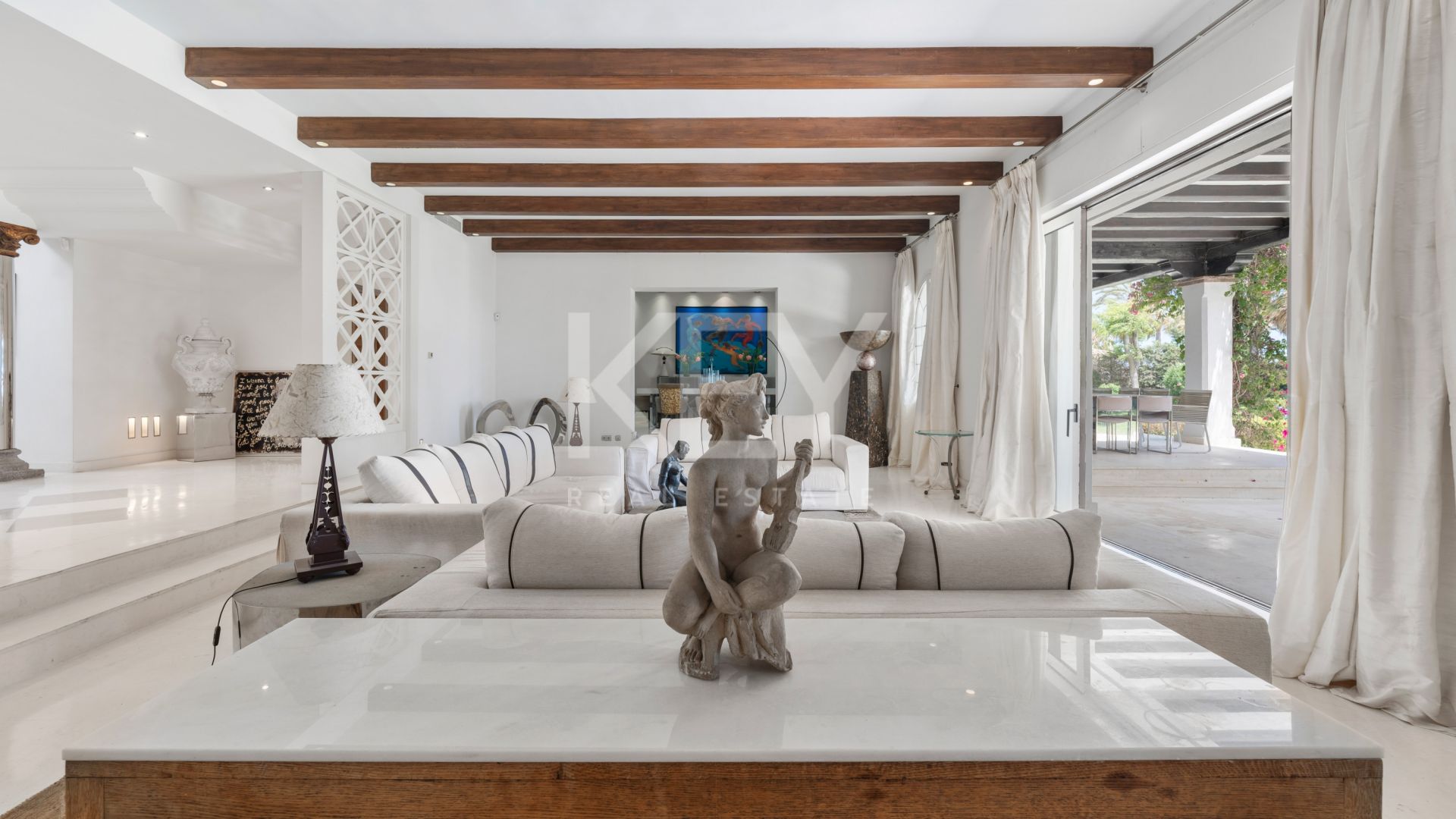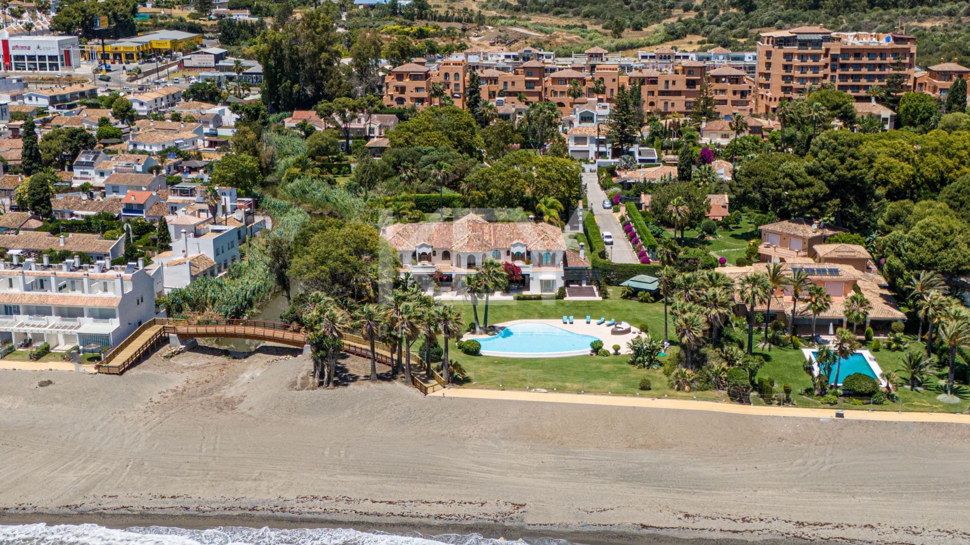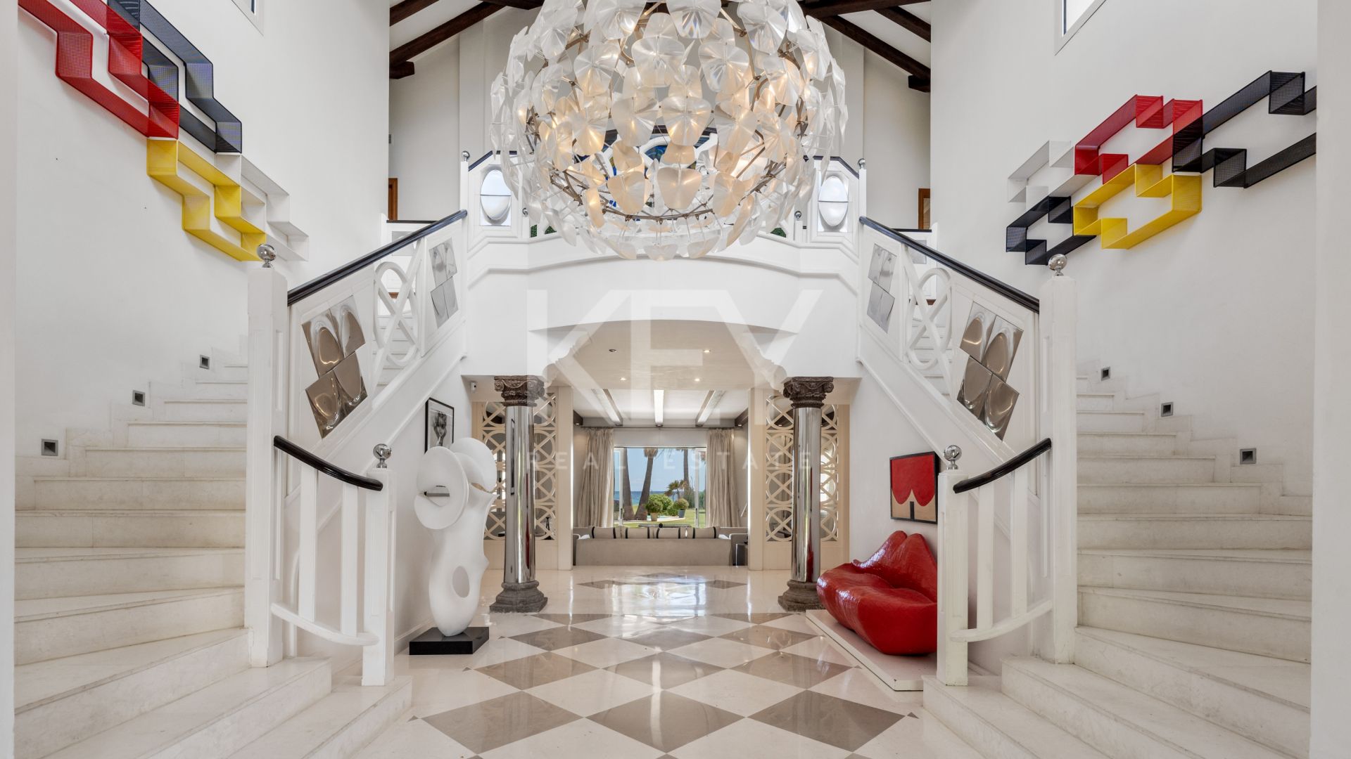 Descubra el epítome del lujo en nuestra villa perfectamente situada frente al mar, a poco más de 2 km de las animadas comodidades de San Pedro de Alcántara y a tan solo cinco minutos en coche de los vibrantes centros de Puerto Banús y Marbella.