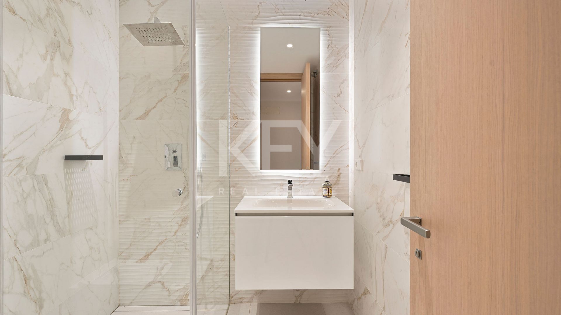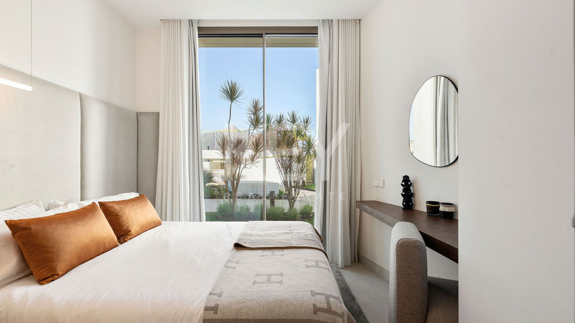 En la primera planta, la suite principal presume de una terraza privada con impresionantes vistas al mar y la montaña, vestidor y un lujoso baño en suite. Un segundo dormitorio y un baño independiente completan este nivel.