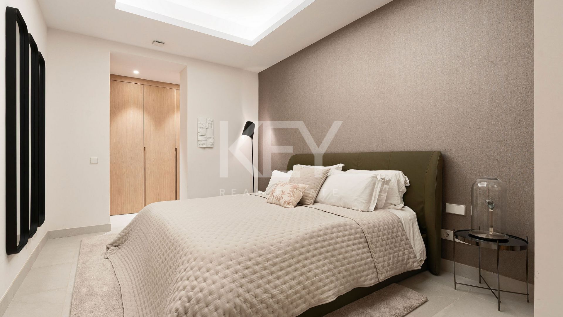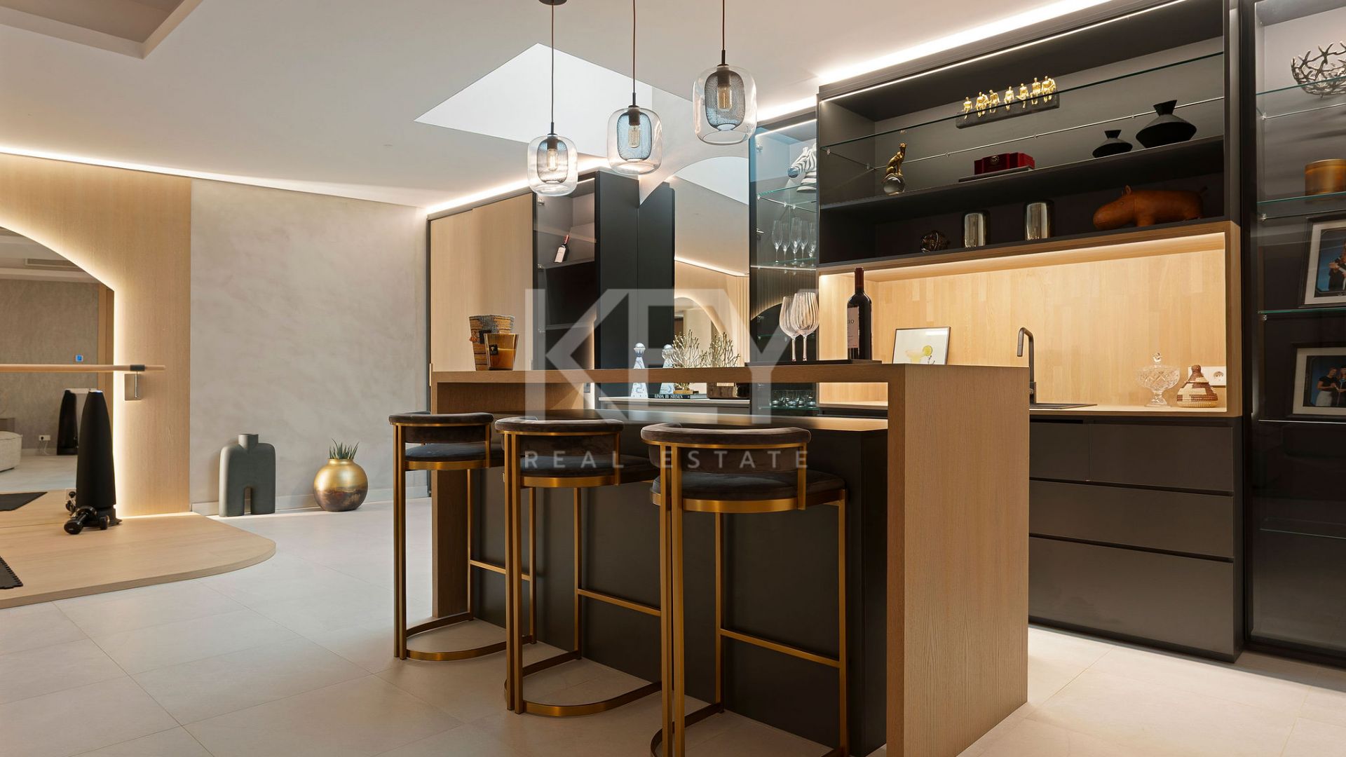 Distribuida en cuatro niveles, la propiedad cuenta con espacios de vida de concepto abierto llenos de luz natural. La planta baja incluye una elegante cocina de diseño con electrodomésticos de alta gama, comedor y salón que se abren perfectamente a una terraza, ideal para comer al aire libre y recibir invitados. Este nivel también ofrece un dormitorio de invitados y un baño independiente, ideal para visitantes o como despacho.