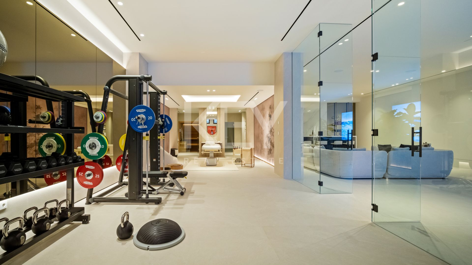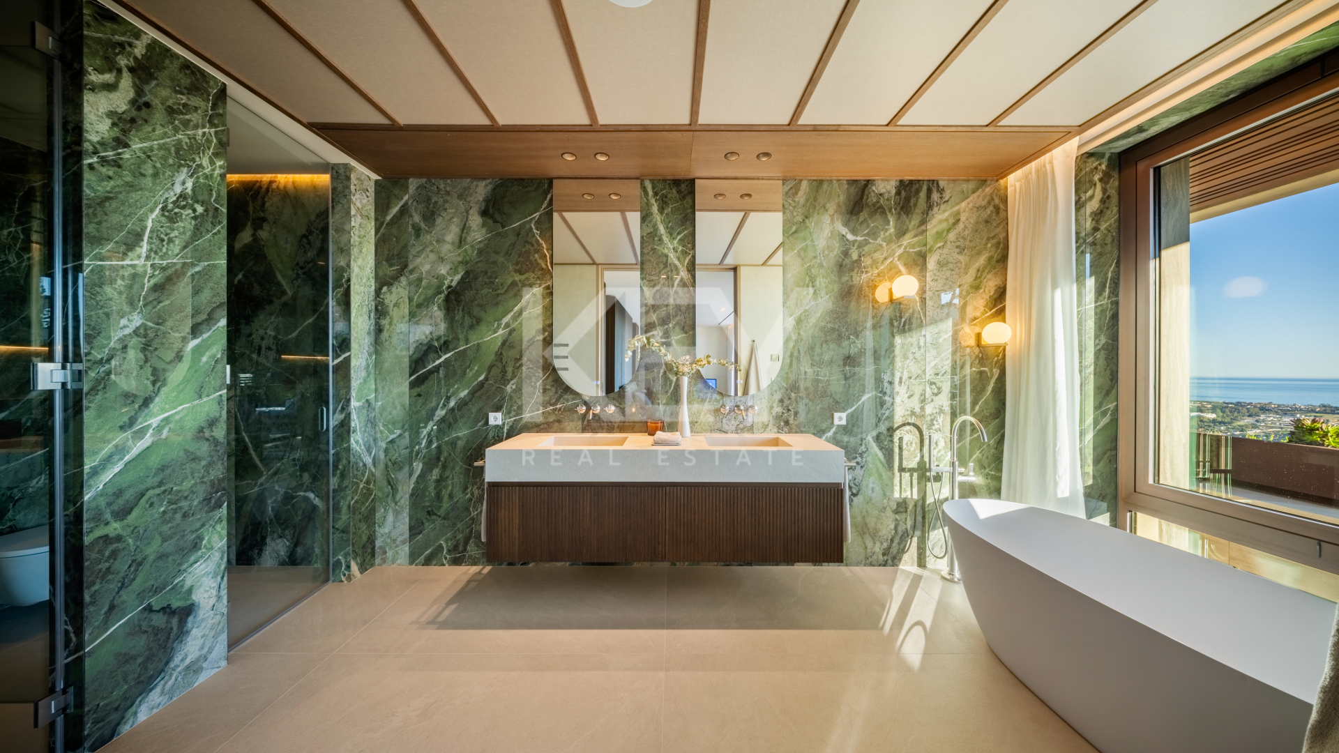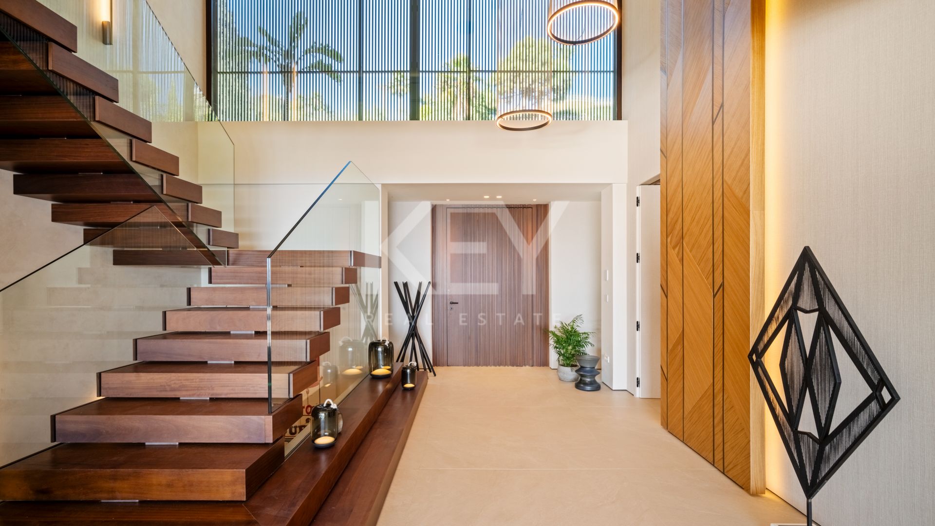 Esta villa abarca aproximadamente 869 m² y se distribuye en tres niveles. Ofrece cinco amplios dormitorios, incluida una suite principal con terraza privada, y seis baños. La sala principal es de concepto abierto, integrando una sala de estar, comedor y una cocina de diseño equipada con electrodomésticos de alta gama de Gaggenau y Miele. Cada habitación se conecta a amplias terrazas al aire libre, proporcionando un espacio ideal para relajarse y recibir invitados.