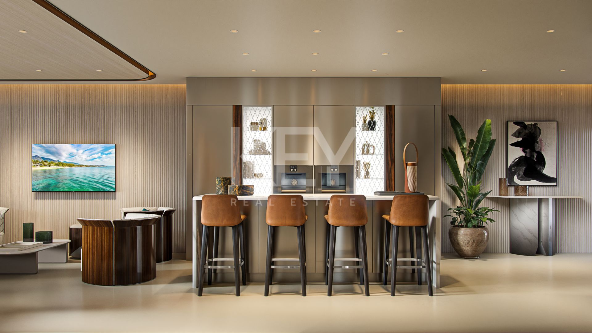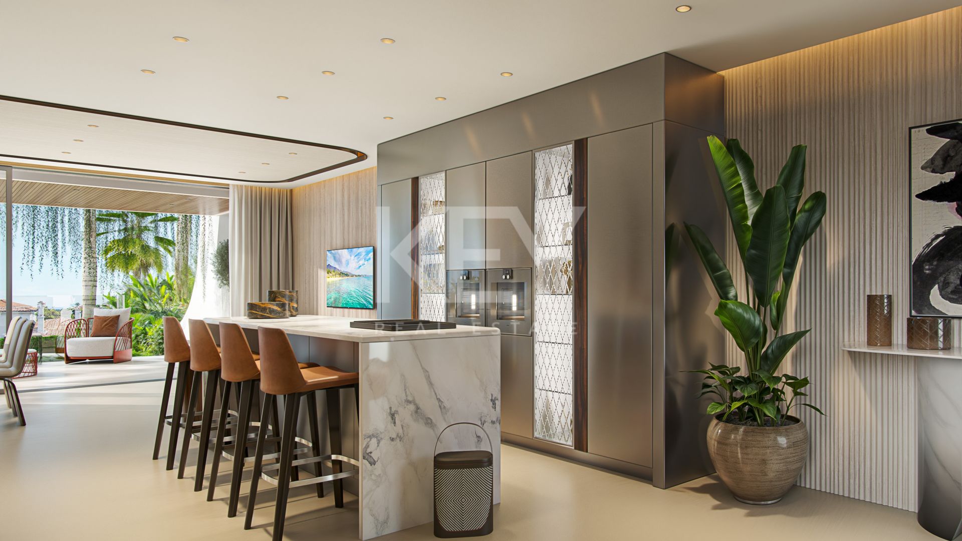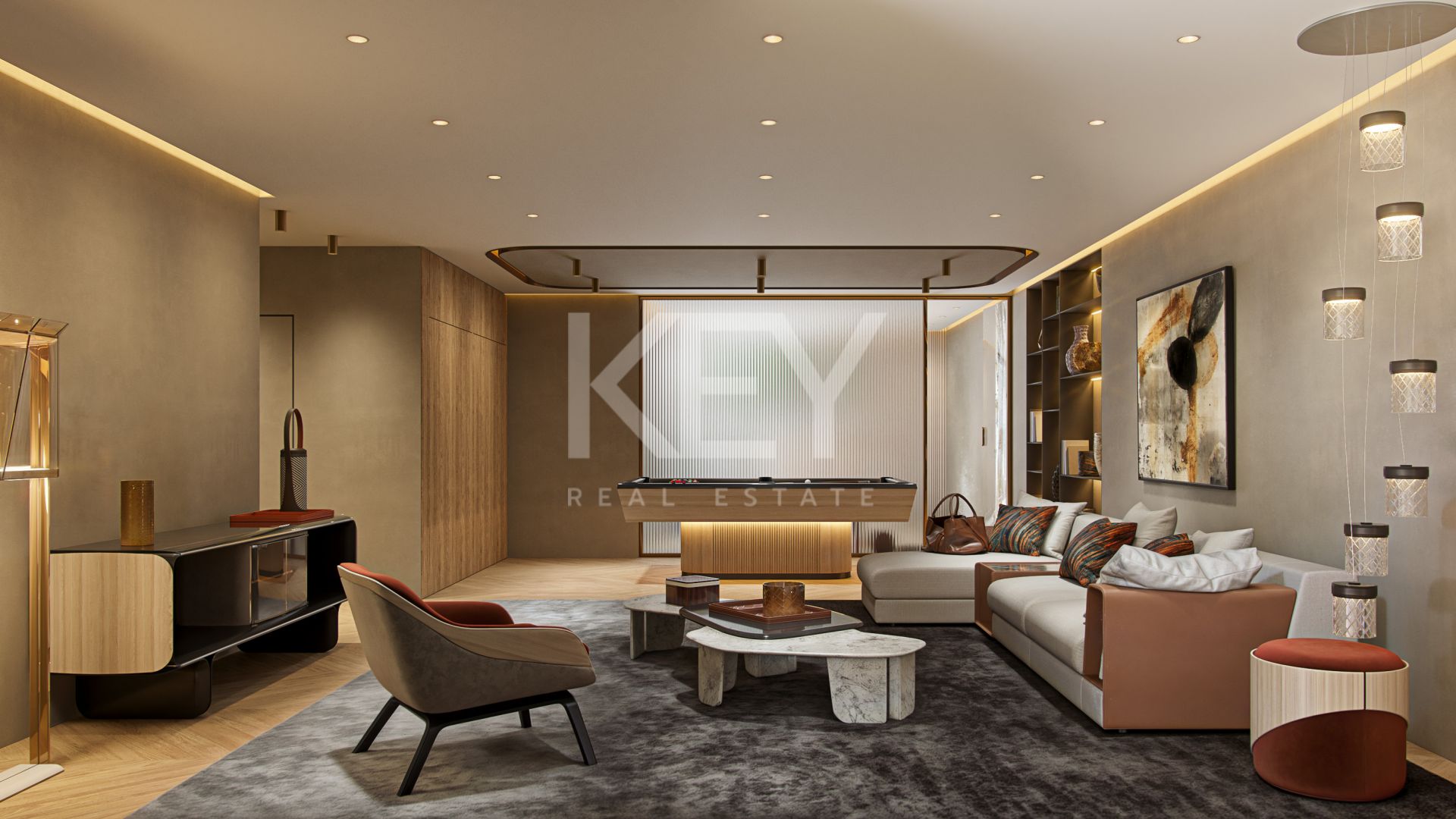 Cada detalle de los interiores ha sido curado por Bentley Home: desde el mobiliario a medida y los acabados refinados hasta las ricas texturas y paletas de colores armonizadas, asegurando un estilo atemporal y distinguido. La residencia cuenta con una piscina privada para refrescantes baños en total privacidad, mientras que cada suite de dormitorio ofrece generosas proporciones, baños de inspiración spa y su propio espacio exterior.