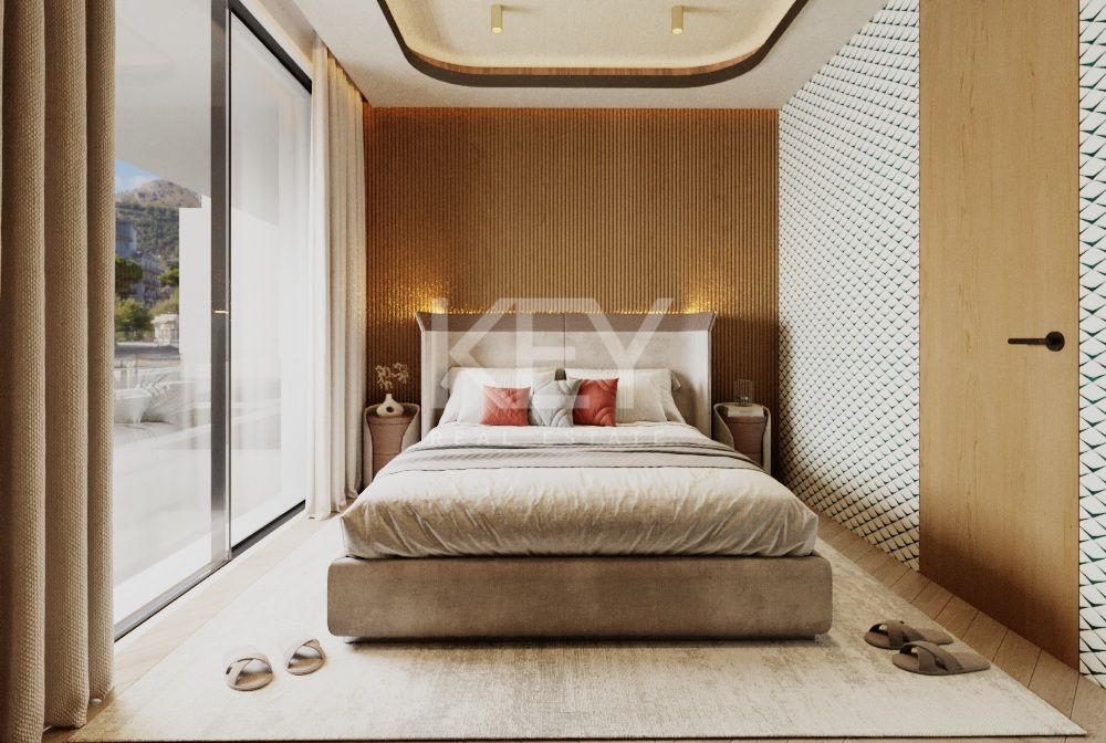 La vivienda se distribuye en dos niveles sofisticados, donde los espacios de vida de concepto abierto fluyen sin esfuerzo hacia amplias terrazas y un hermoso jardín privado paisajístico. Los ventanales de suelo a techo permiten la entrada de luz natural durante todo el día, mientras que la conexión perfecta entre el interior y el exterior crea el entorno ideal tanto para la relajación tranquila como para el entretenimiento.