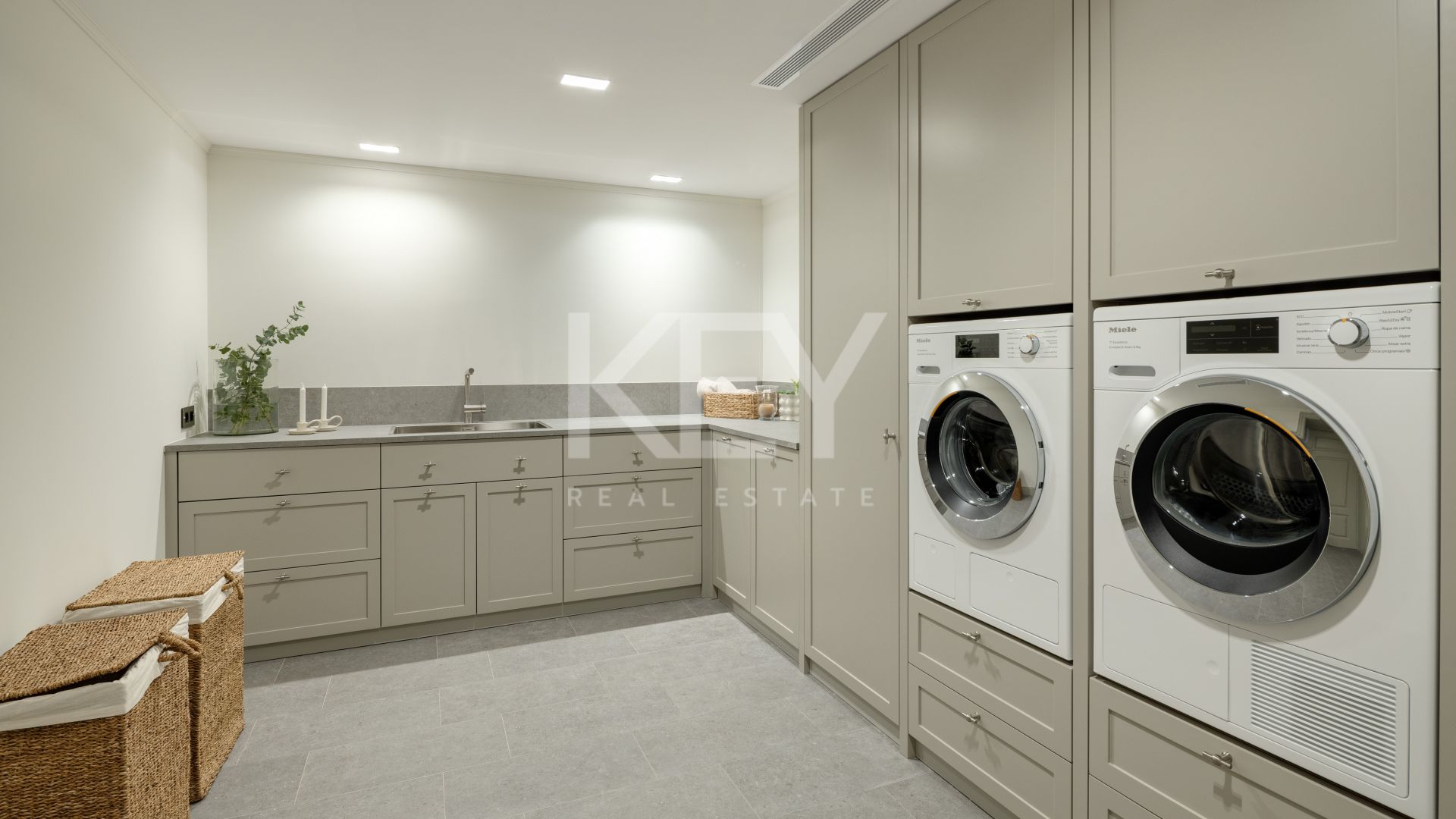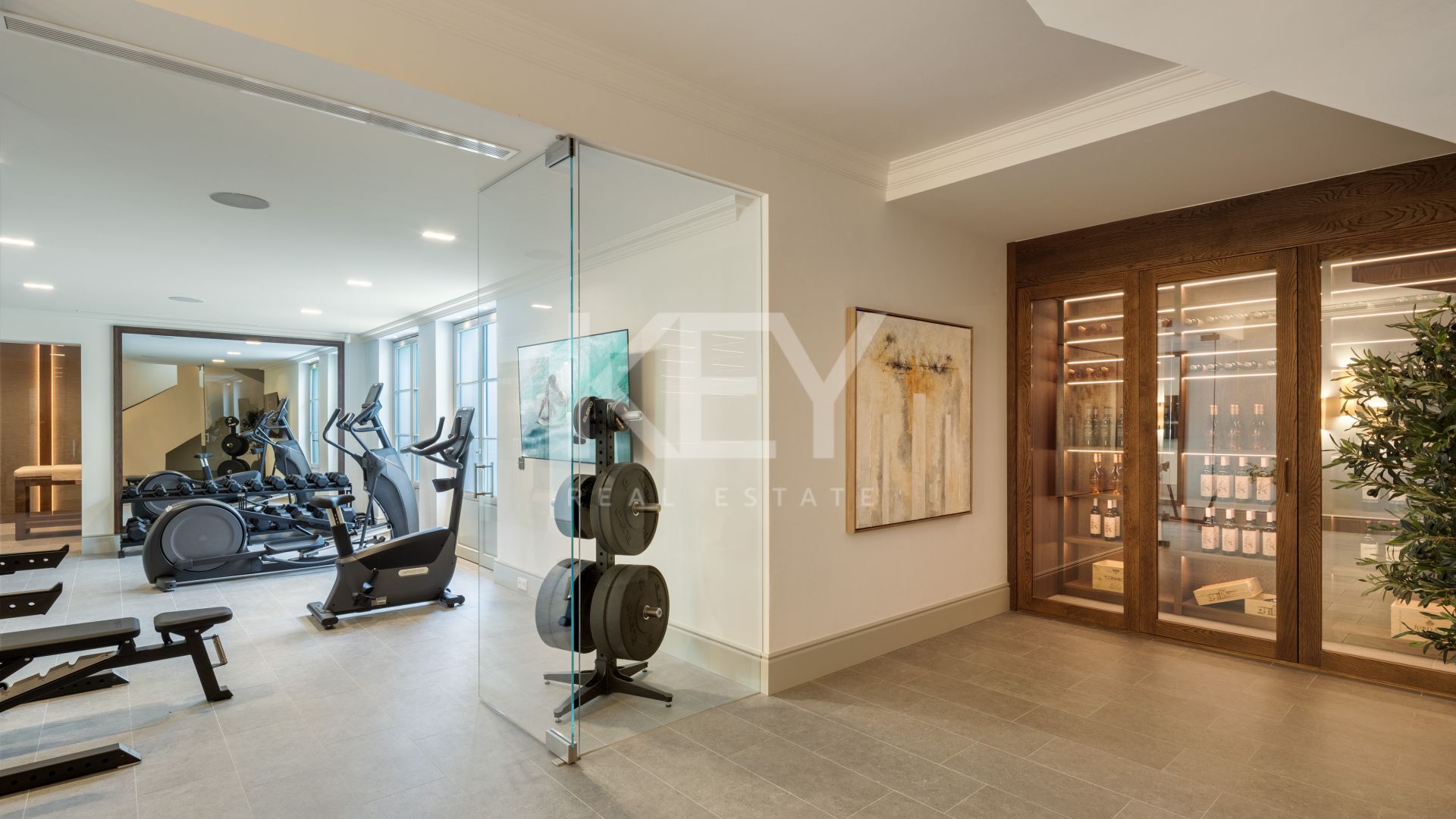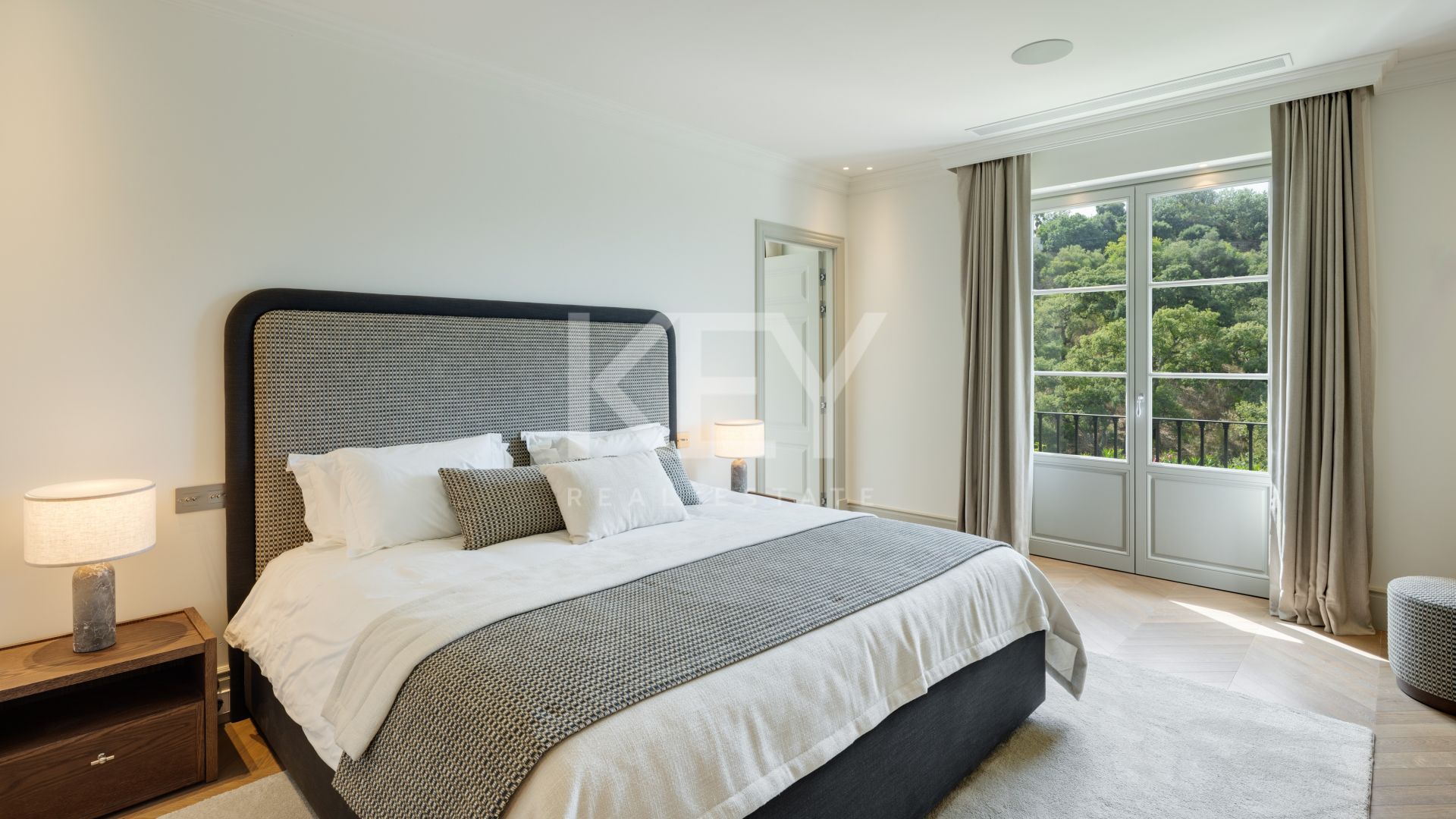 Cinco dormitorios en suite garantizan comodidad y privacidad, con la suite principal disfrutando de un vestidor, un baño elegante y una terraza privada. El nivel inferior está dedicado al ocio, con un cine, gimnasio, suite de masajes y bodega, junto con el personal.