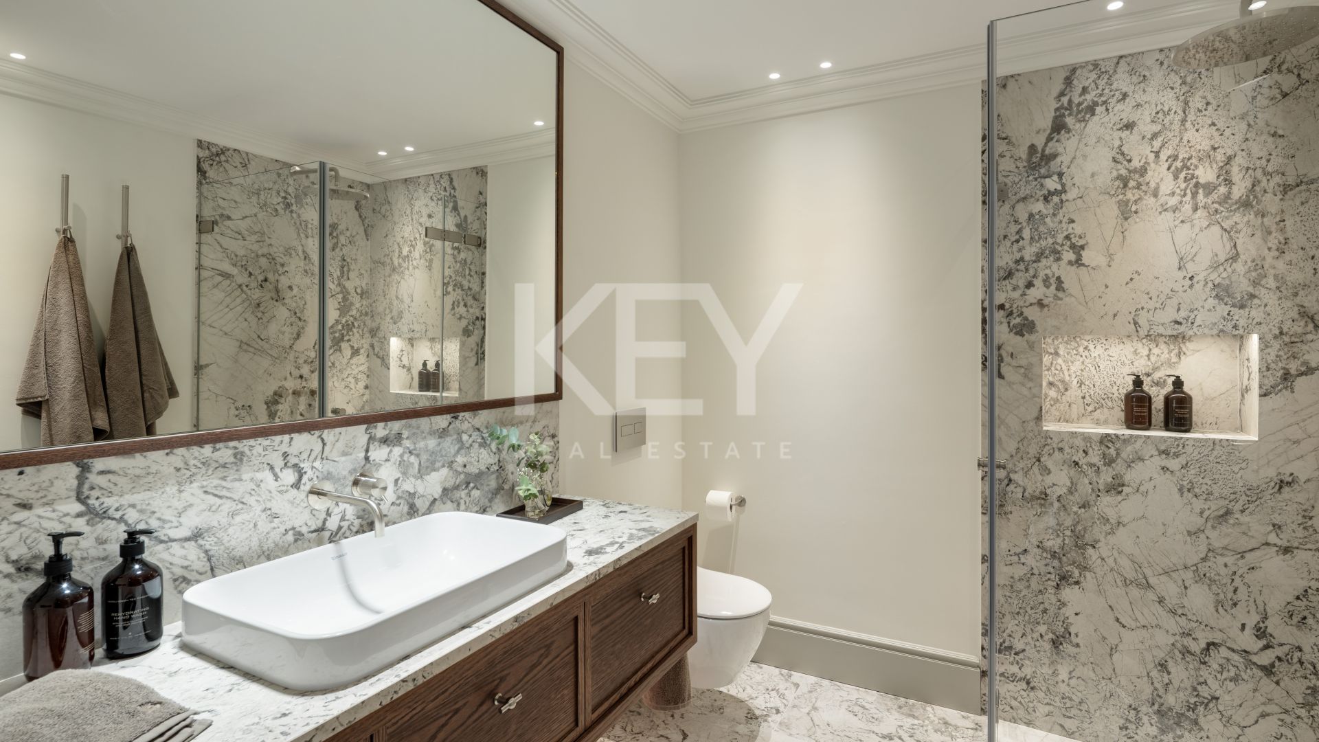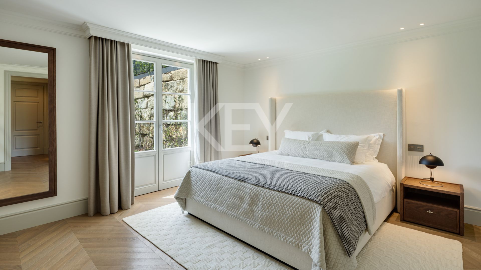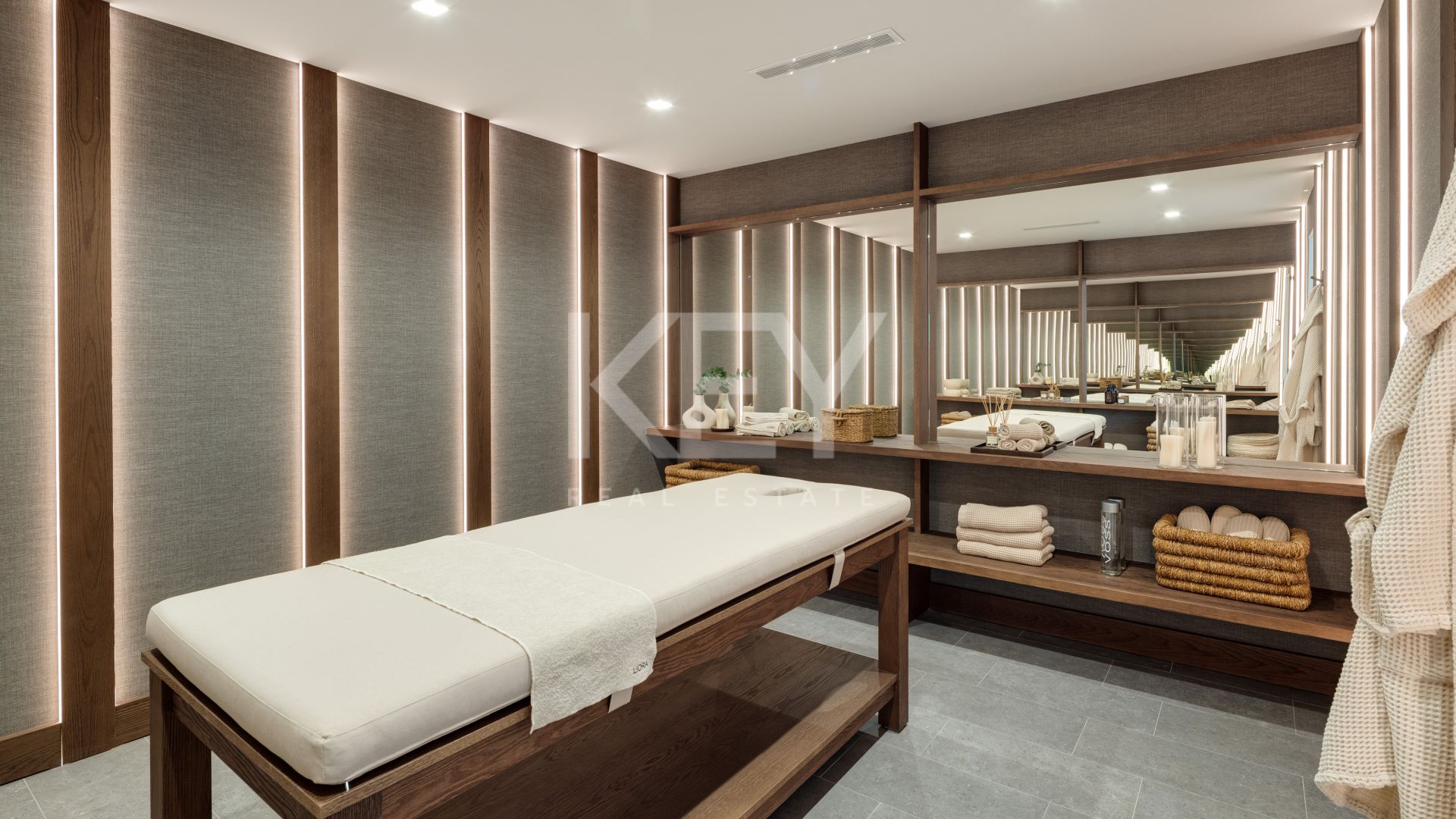 Cinco dormitorios en suite garantizan comodidad y privacidad, con la suite principal disfrutando de un vestidor, un baño elegante y una terraza privada. El nivel inferior está dedicado al ocio, con un cine, gimnasio, suite de masajes y bodega, junto con el personal.