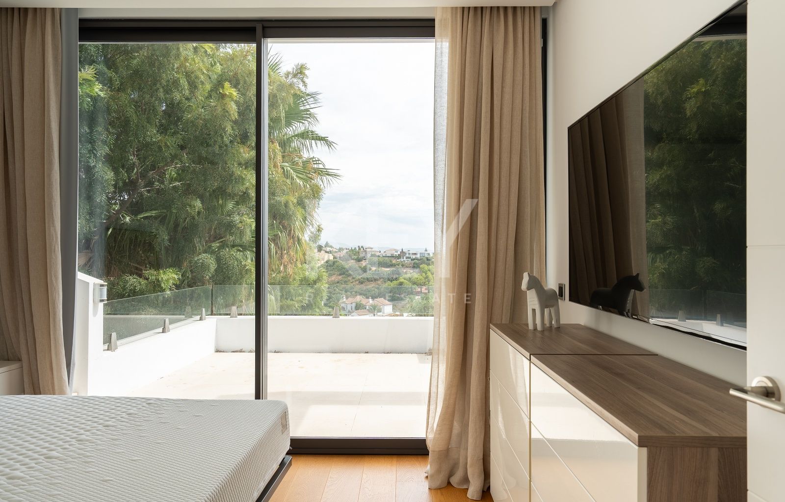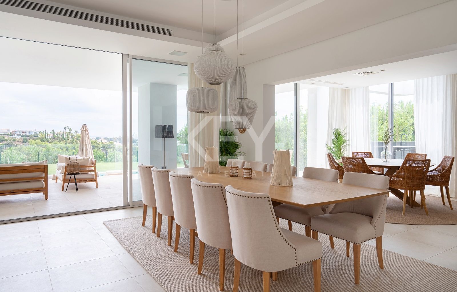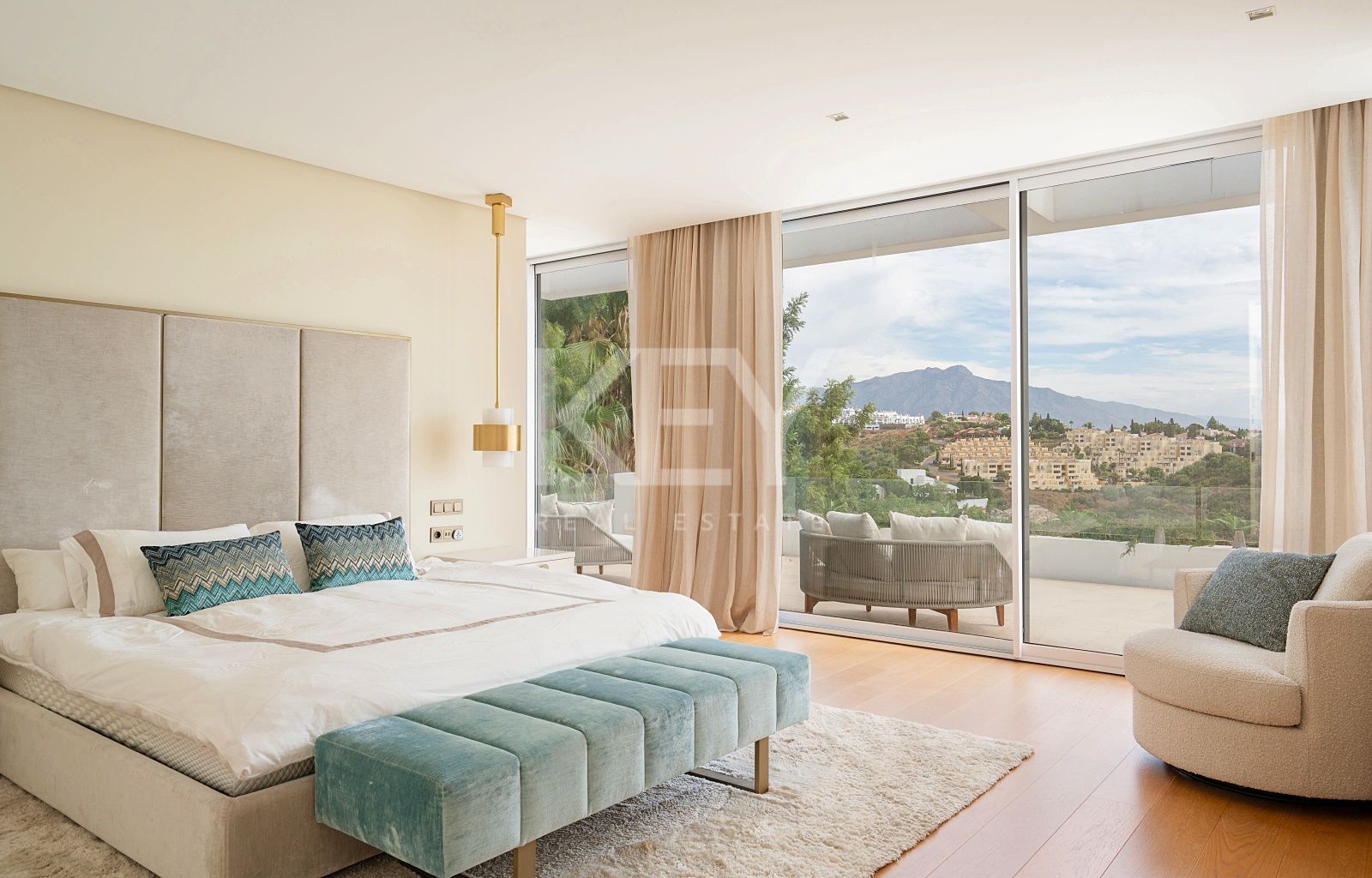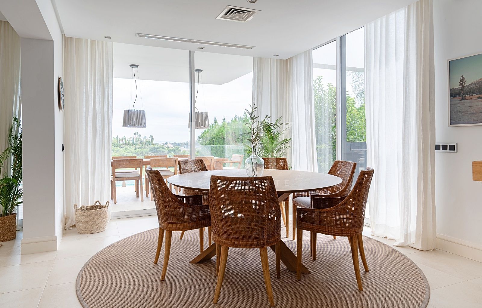 Esta villa contemporánea se encuentra en Los Flamingos, una de las zonas residenciales más consolidadas y seguras de Benahavís. Conocida por su ambiente tranquilo, su entorno impresionante y su arquitectura cuidada, Los Flamingos se ha convertido en una elección habitual para familias e inversores que buscan calidad de vida cerca de Marbella y Estepona. La zona está construida alrededor de tres campos de golf y del prestigioso Hotel Villa Padierna Palace, que aporta un toque distinguido con su spa, restaurantes y servicios de cinco estrellas. A pocos minutos en coche hay supermercados, colegios internacionales, instalaciones deportivas y algunas de las mejores playas de la costa. Puerto Banús y la Milla de Oro se encuentran a menos de quince minutos, lo que convierte esta ubicación en una opción ideal tanto para residencia permanente como para estancias vacacionales.