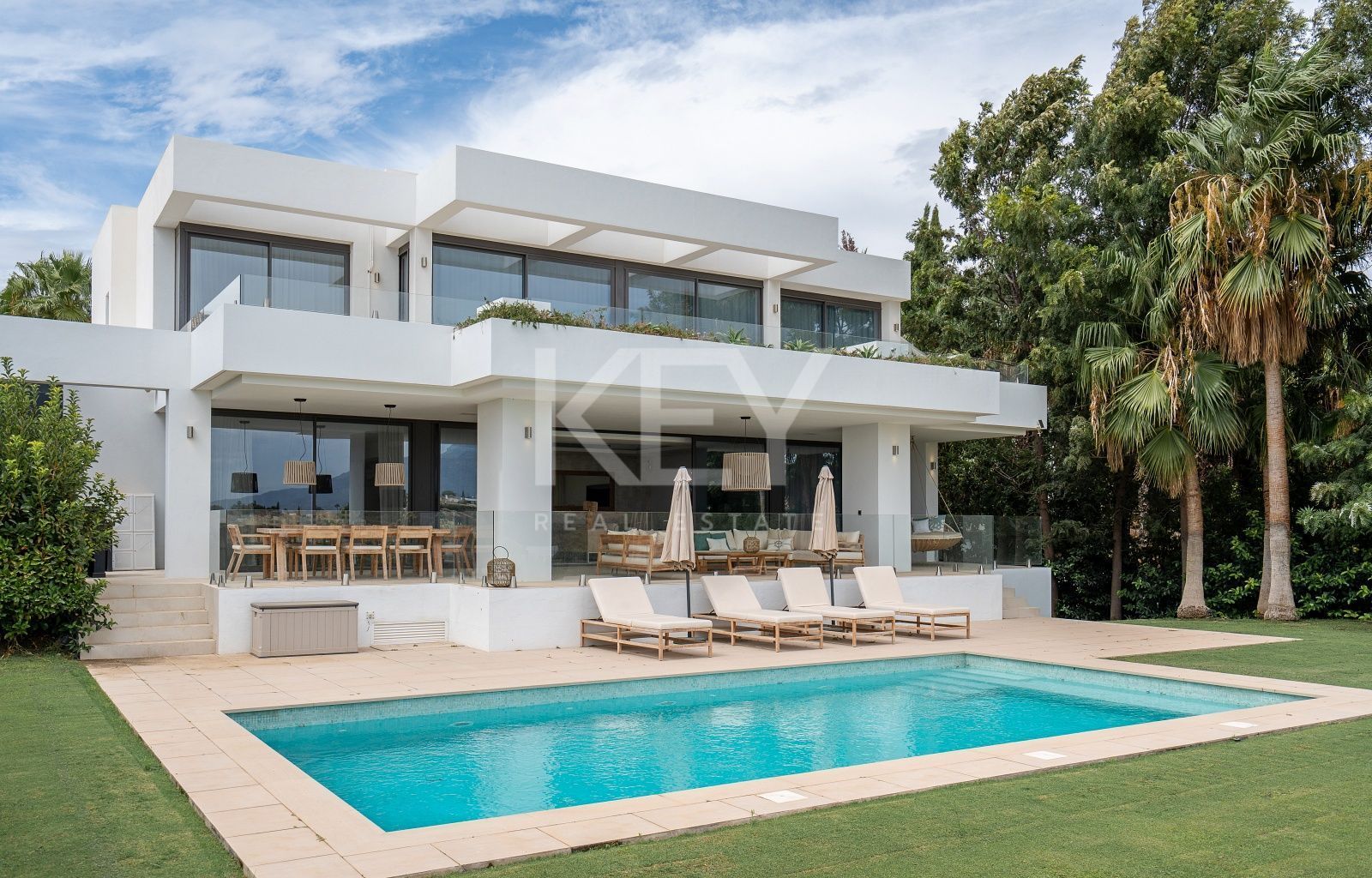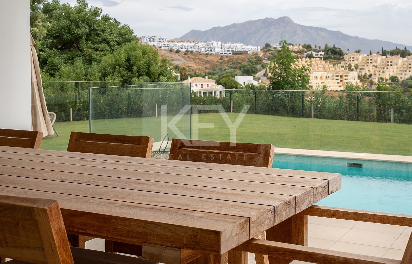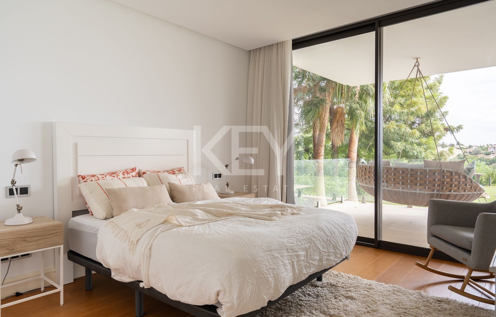 Esta villa contemporánea se encuentra en Los Flamingos, una de las zonas residenciales más consolidadas y seguras de Benahavís. Conocida por su ambiente tranquilo, su entorno impresionante y su arquitectura cuidada, Los Flamingos se ha convertido en una elección habitual para familias e inversores que buscan calidad de vida cerca de Marbella y Estepona. La zona está construida alrededor de tres campos de golf y del prestigioso Hotel Villa Padierna Palace, que aporta un toque distinguido con su spa, restaurantes y servicios de cinco estrellas. A pocos minutos en coche hay supermercados, colegios internacionales, instalaciones deportivas y algunas de las mejores playas de la costa. Puerto Banús y la Milla de Oro se encuentran a menos de quince minutos, lo que convierte esta ubicación en una opción ideal tanto para residencia permanente como para estancias vacacionales.
