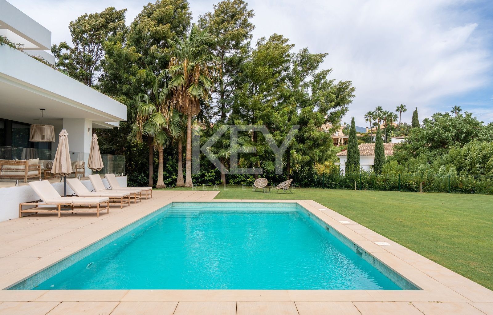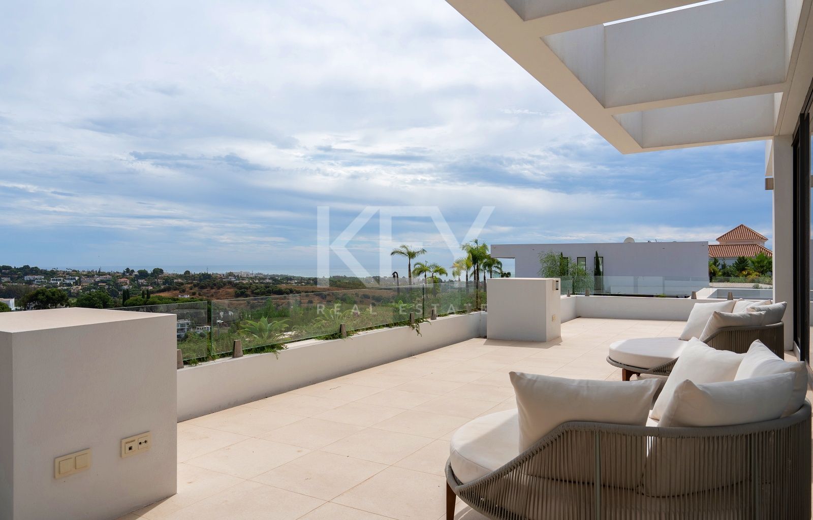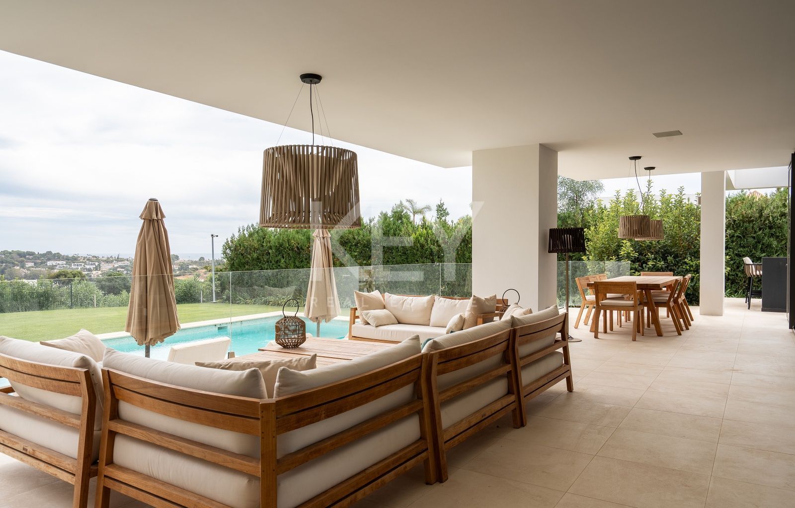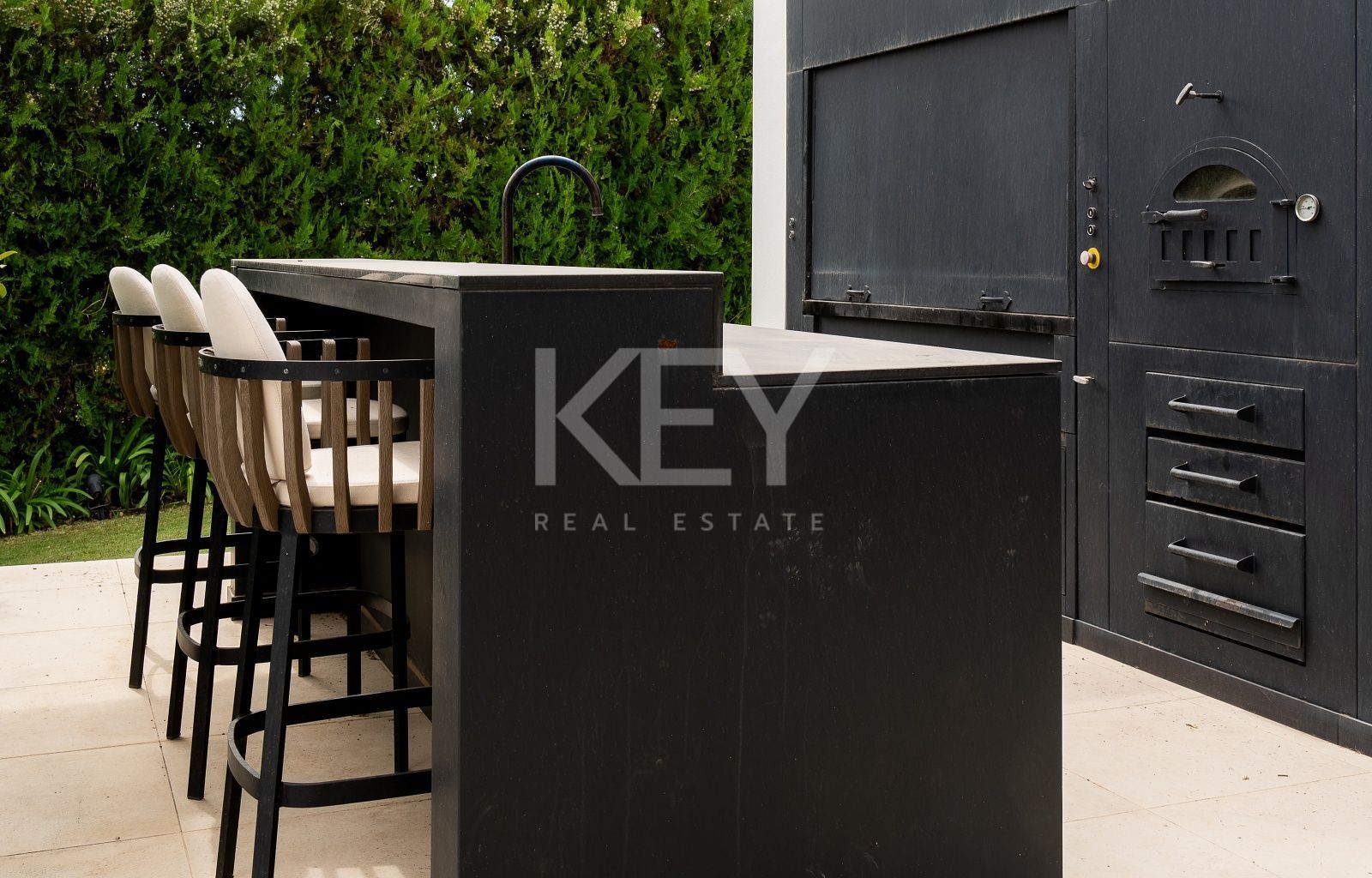 Esta villa contemporánea se encuentra en Los Flamingos, una de las zonas residenciales más consolidadas y seguras de Benahavís. Conocida por su ambiente tranquilo, su entorno impresionante y su arquitectura cuidada, Los Flamingos se ha convertido en una elección habitual para familias e inversores que buscan calidad de vida cerca de Marbella y Estepona. La zona está construida alrededor de tres campos de golf y del prestigioso Hotel Villa Padierna Palace, que aporta un toque distinguido con su spa, restaurantes y servicios de cinco estrellas. A pocos minutos en coche hay supermercados, colegios internacionales, instalaciones deportivas y algunas de las mejores playas de la costa. Puerto Banús y la Milla de Oro se encuentran a menos de quince minutos, lo que convierte esta ubicación en una opción ideal tanto para residencia permanente como para estancias vacacionales.