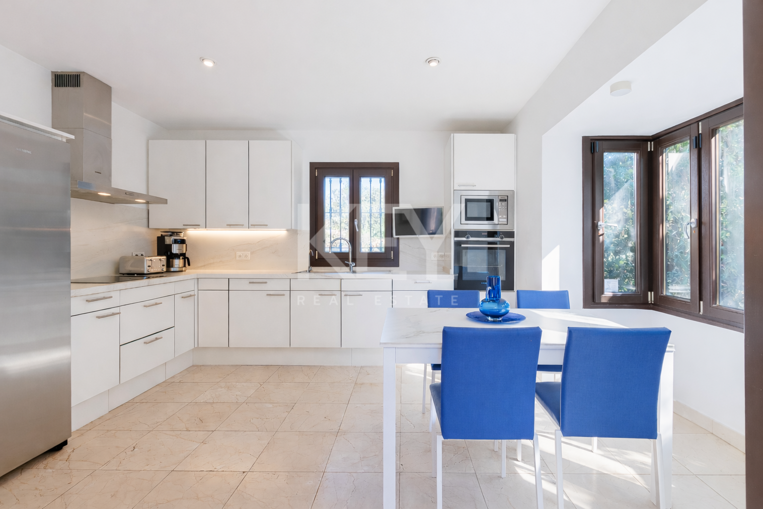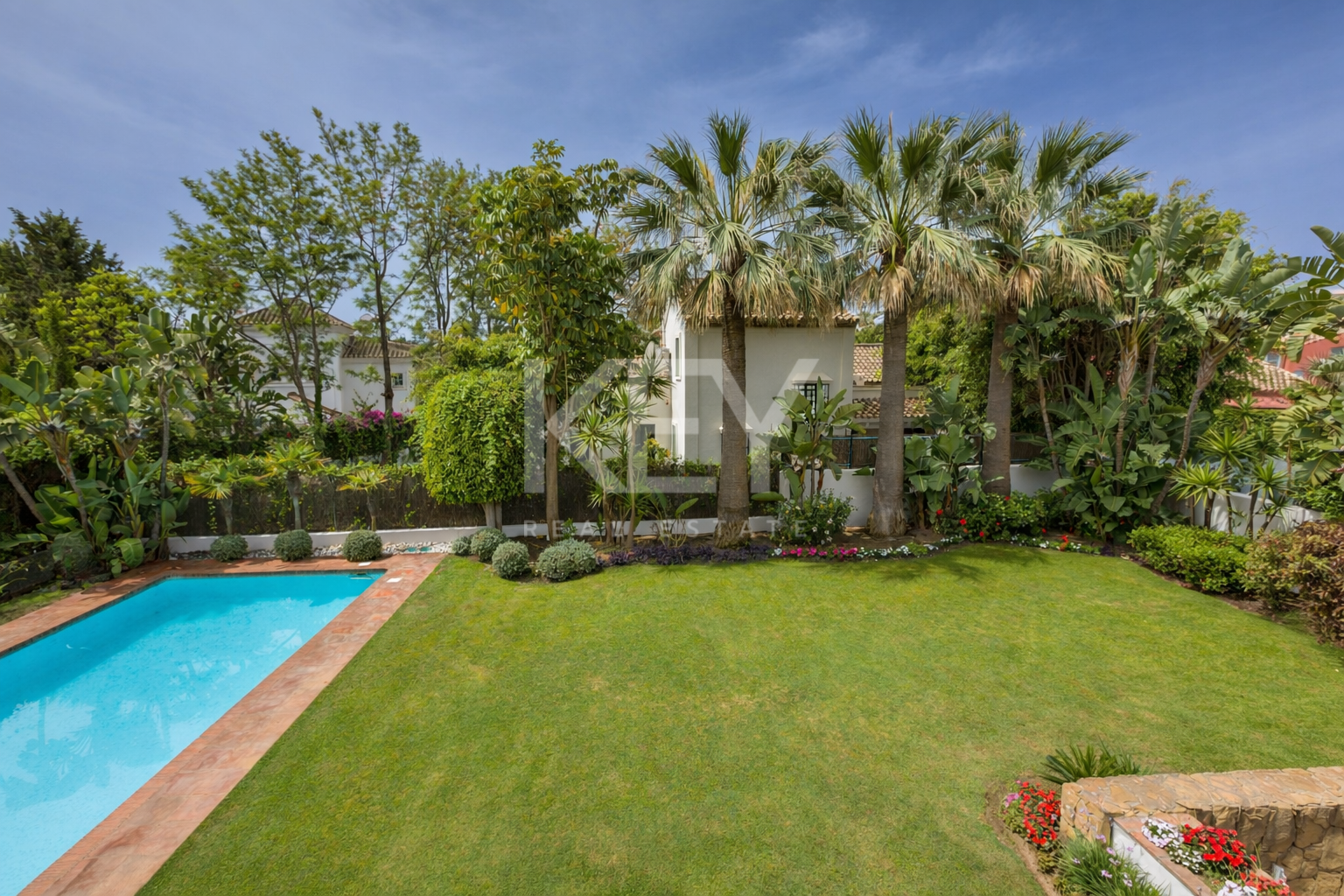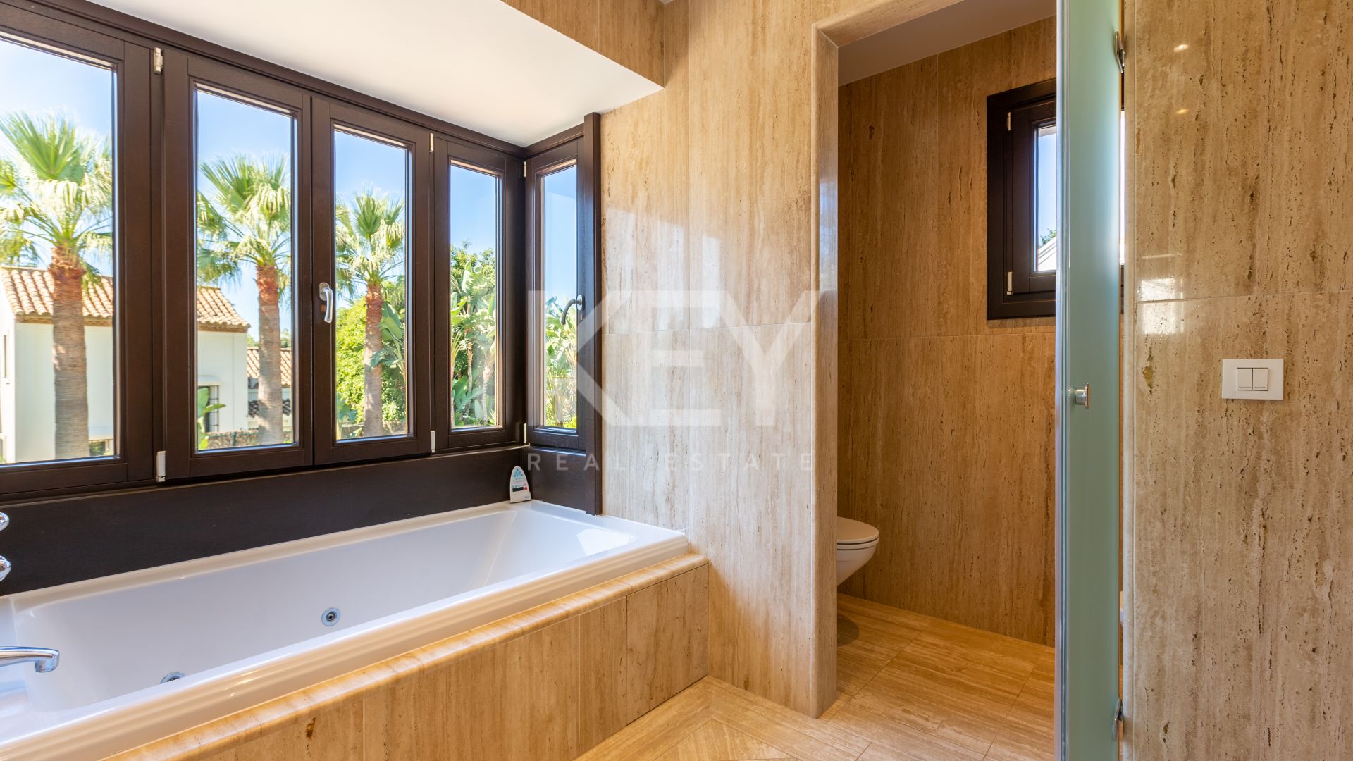 This elegant 5 bedroom villa has a perfect location, just a few steps from the beach and close to prestigious golf courses.