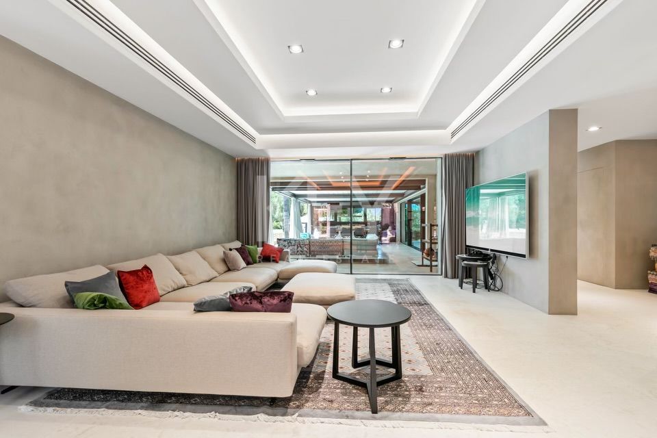 This enchanting home is nestled in the serene surroundings of Marbella, tucked away in a lush green neighborhood with easy access to schools, shops, and top-notch dining spots.