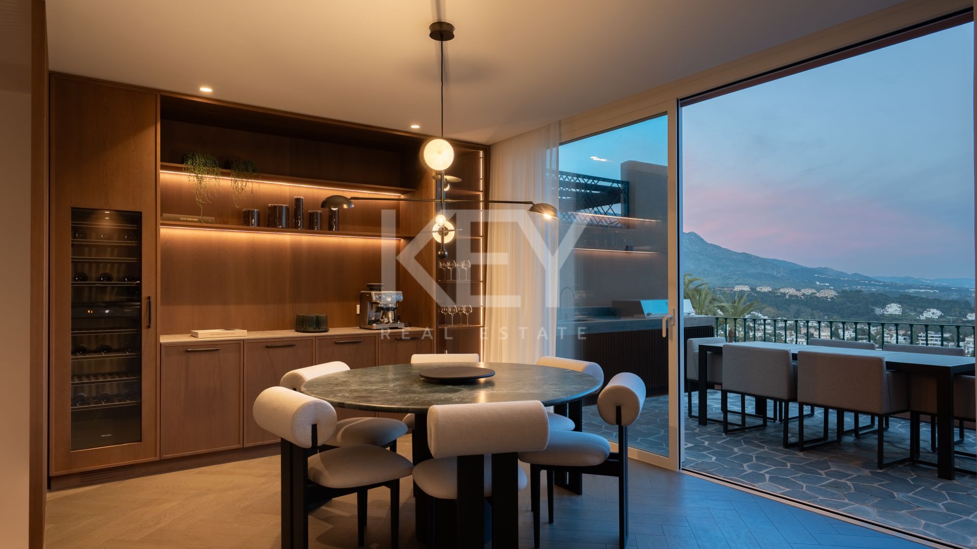 Located in the heart of Marbella’s Golf Valley, within an exclusive gated community in La Cerquilla, this newly renovated penthouse masterfully blends modern design with understated luxury. Offering 305 m² of interior space and 66 m² of terraces, this property stands out with breathtaking sea and mountain views, top-quality finishes, and seamless indoor-outdoor living.