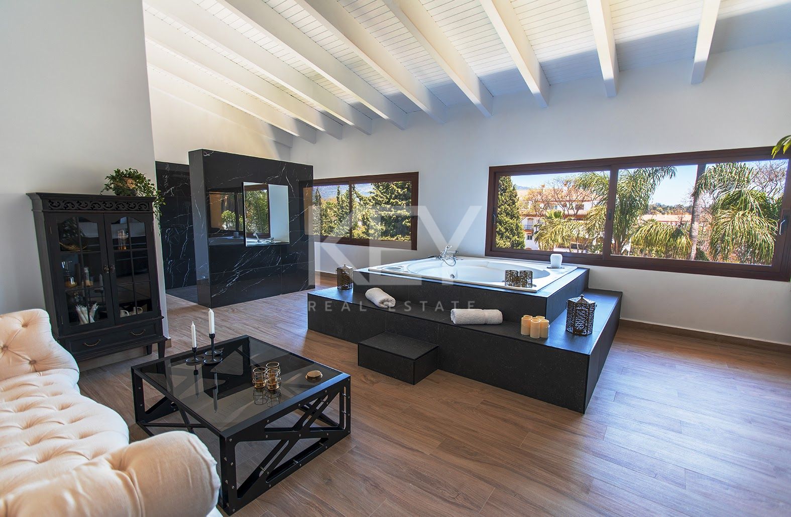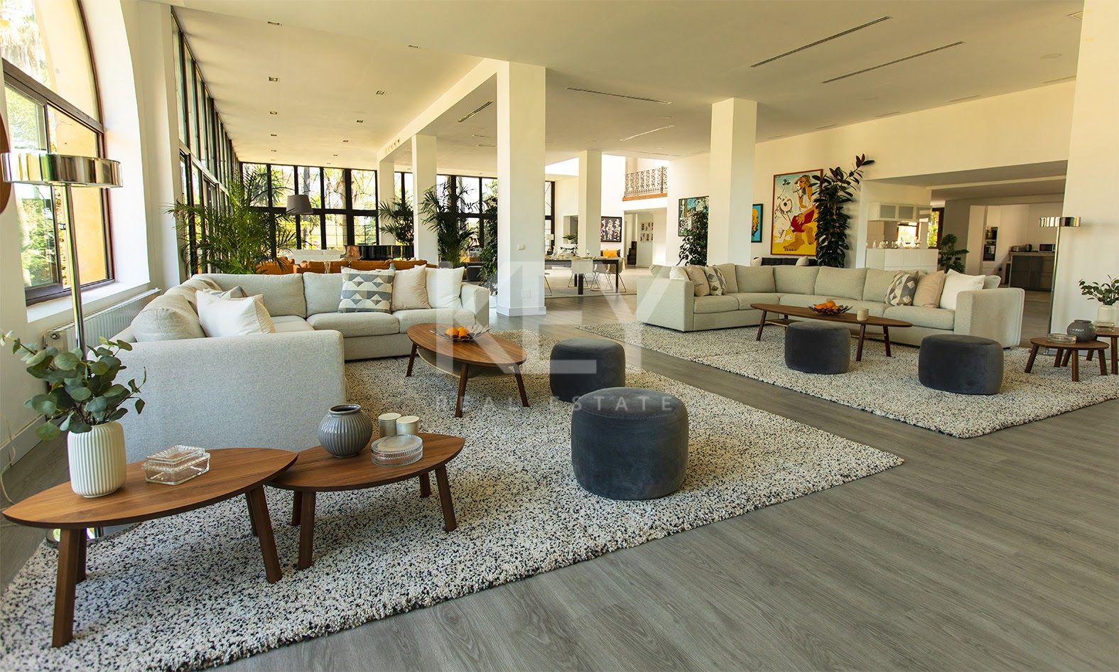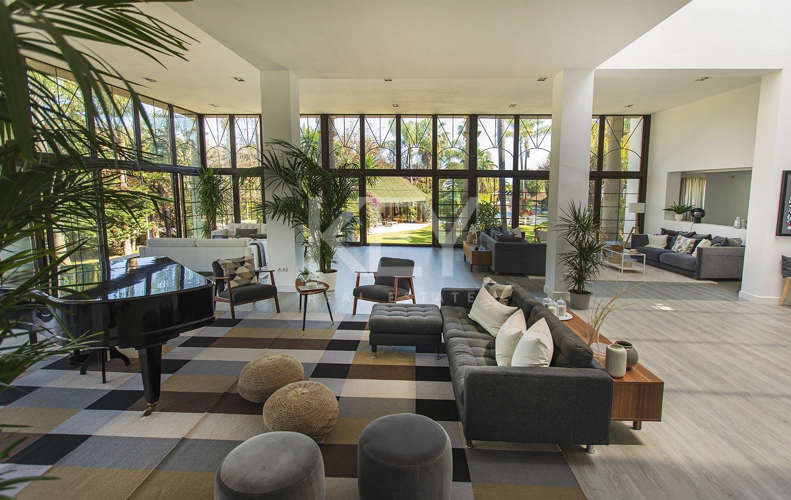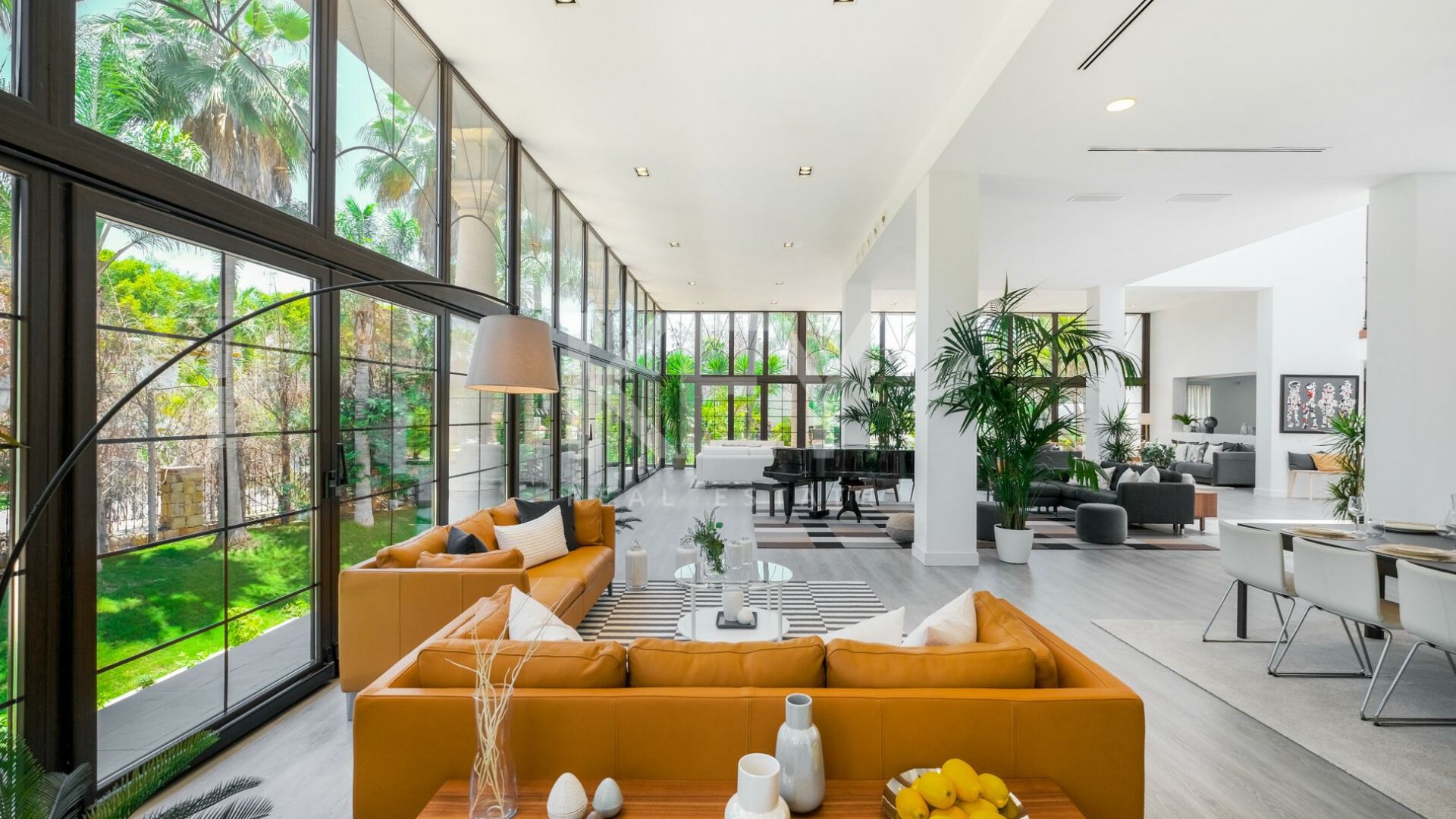 This impressive residence is located in Atalaya de Río Verde, one of the most discreet and desirable areas of Nueva Andalucía. Just minutes from Puerto Banús, the villa has been completely transformed into a stylish New York loft-inspired home. It offers a unique fusion of classic and contemporary elements, complemented by a lush tropical garden that ensures total privacy.