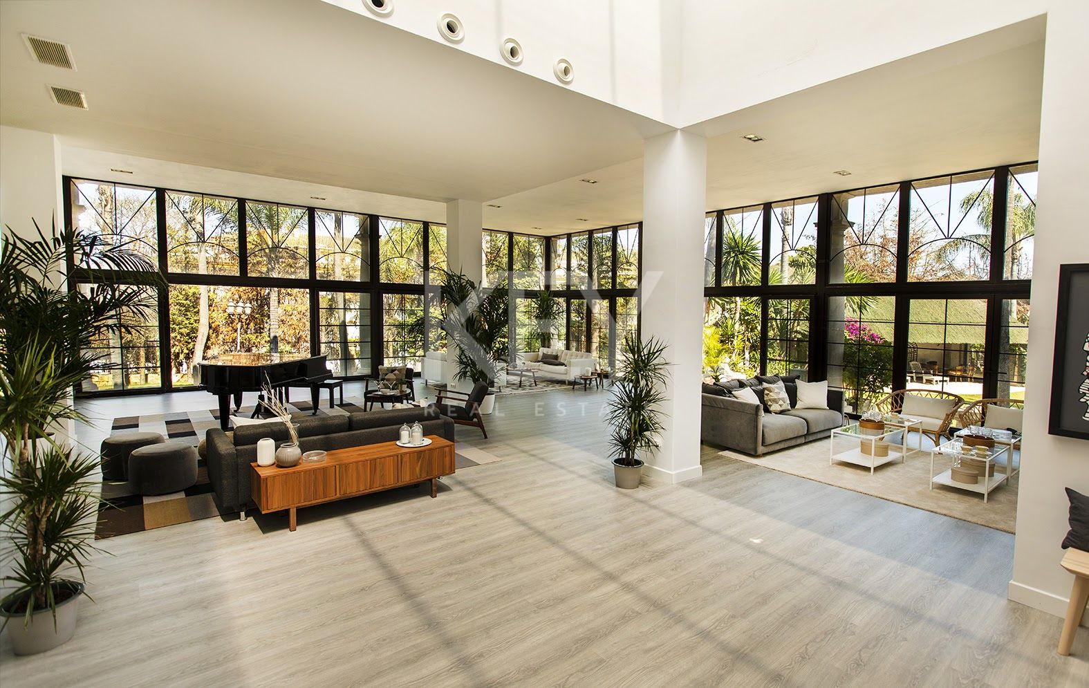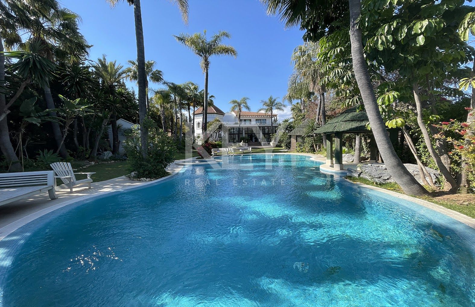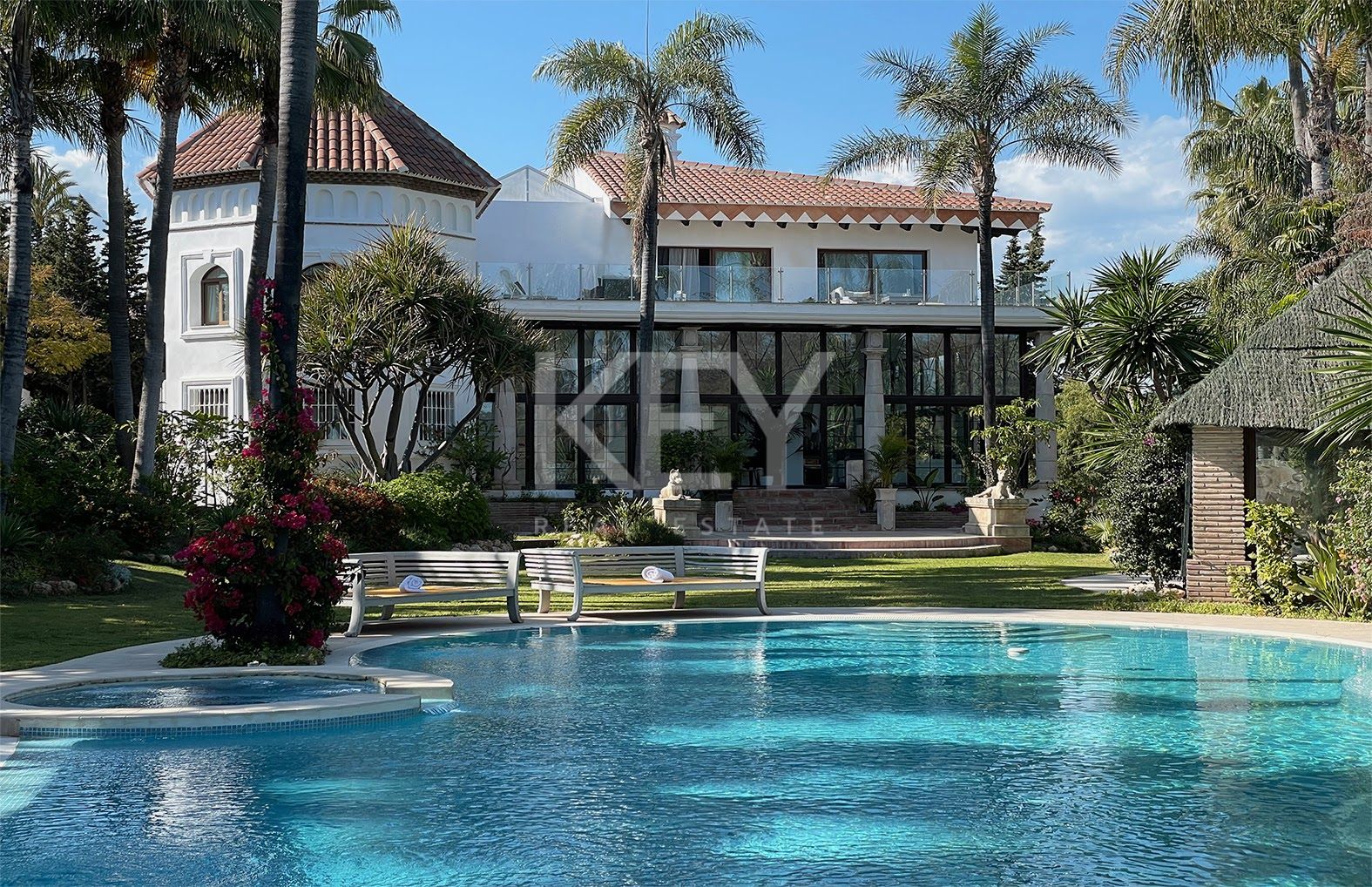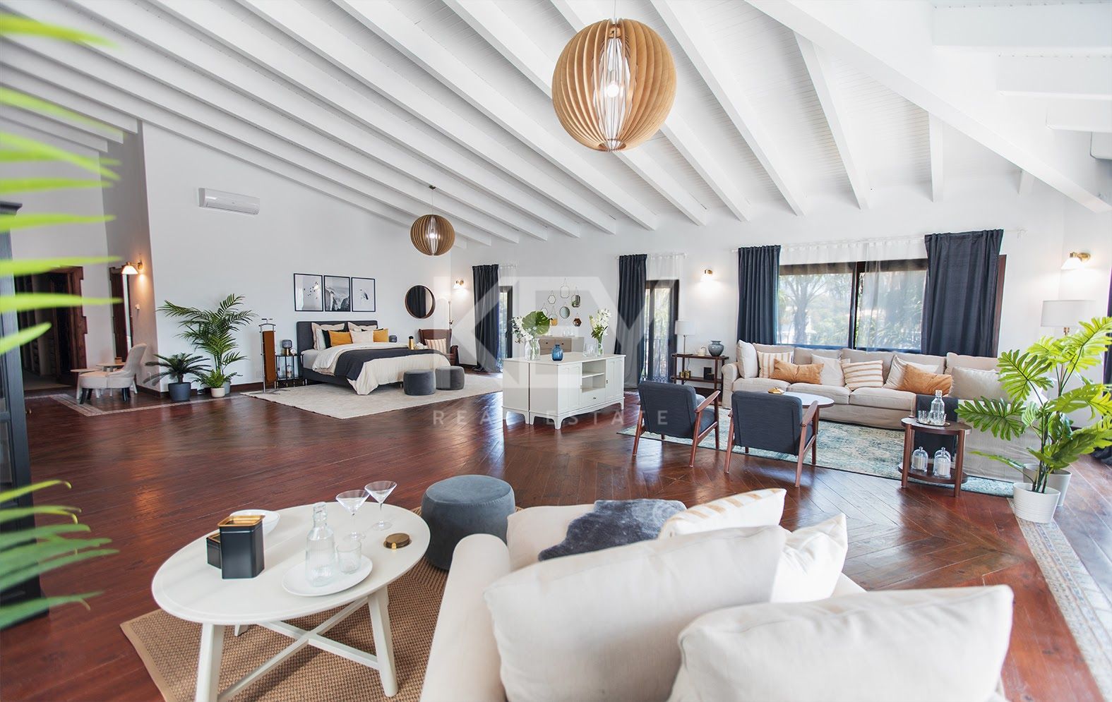 This impressive residence is located in Atalaya de Río Verde, one of the most discreet and desirable areas of Nueva Andalucía. Just minutes from Puerto Banús, the villa has been completely transformed into a stylish New York loft-inspired home. It offers a unique fusion of classic and contemporary elements, complemented by a lush tropical garden that ensures total privacy.