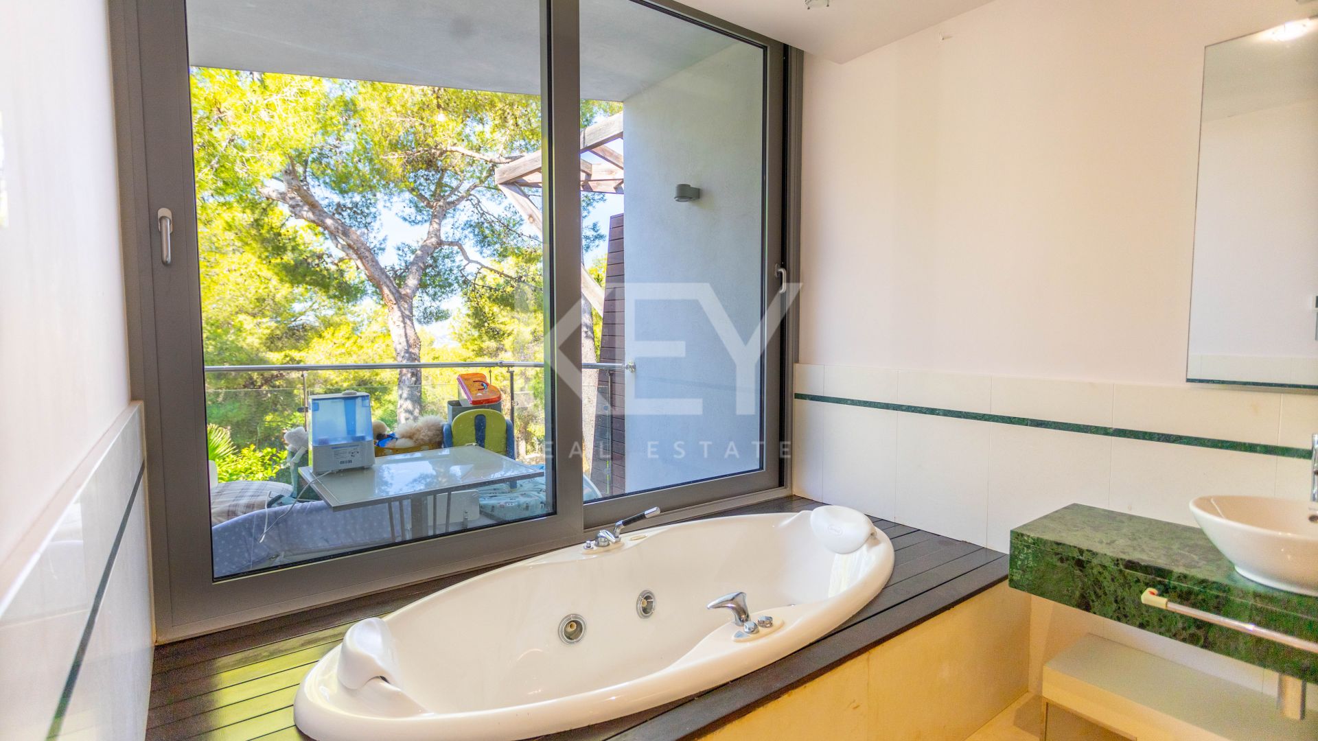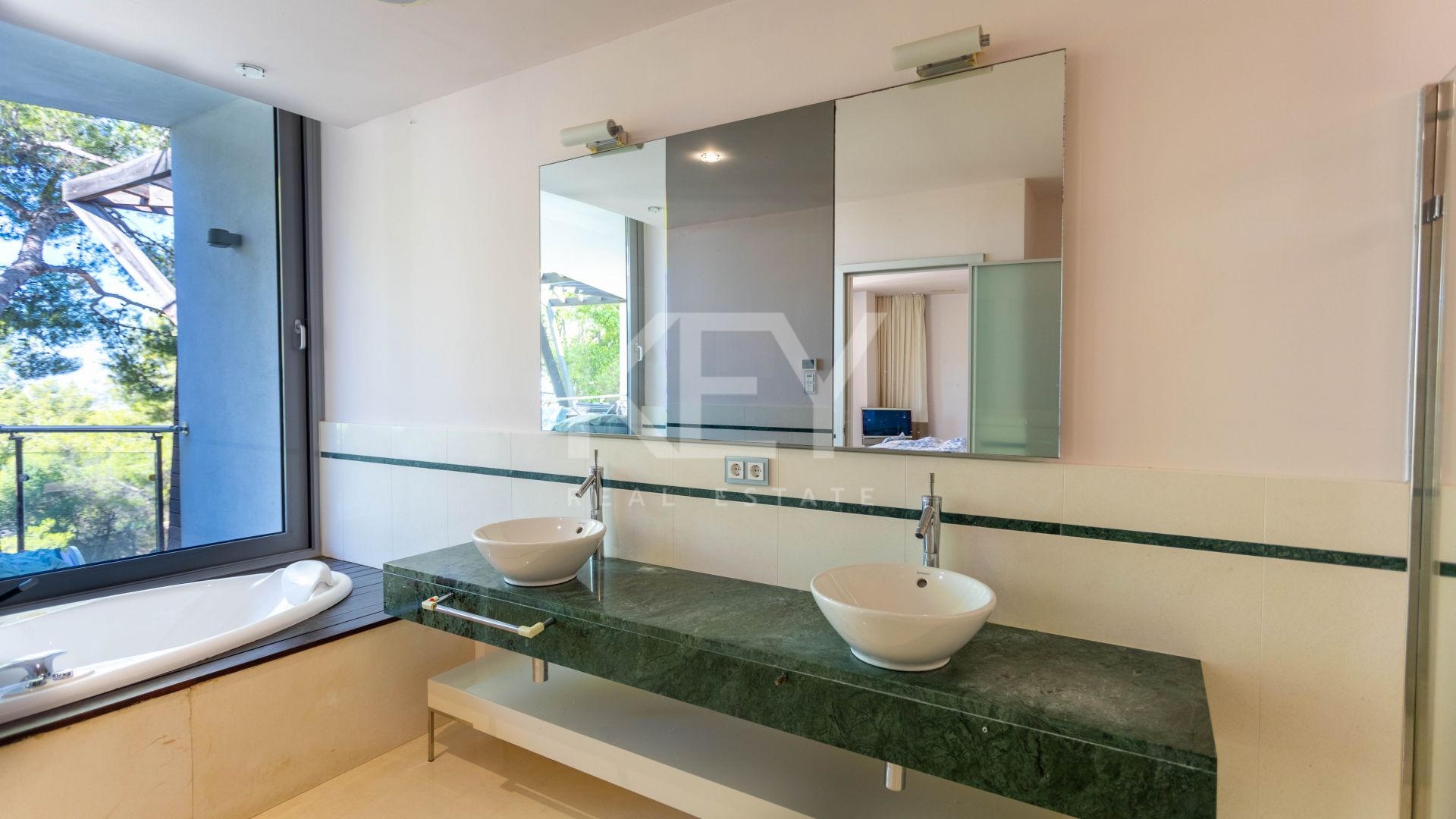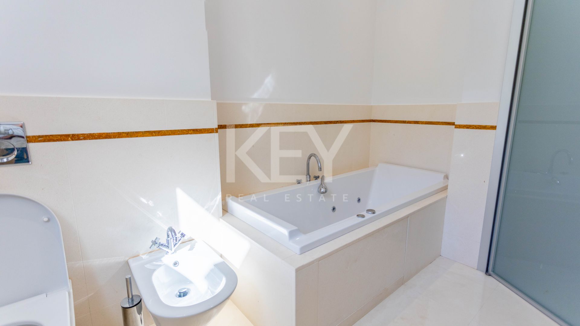 The property spans three levels and features four spacious bedrooms, each filled with natural light and finished to the highest standards. The master suite boasts direct access to a private terrace, perfect for enjoying Marbella’s year-round sunshine and serene sea views.