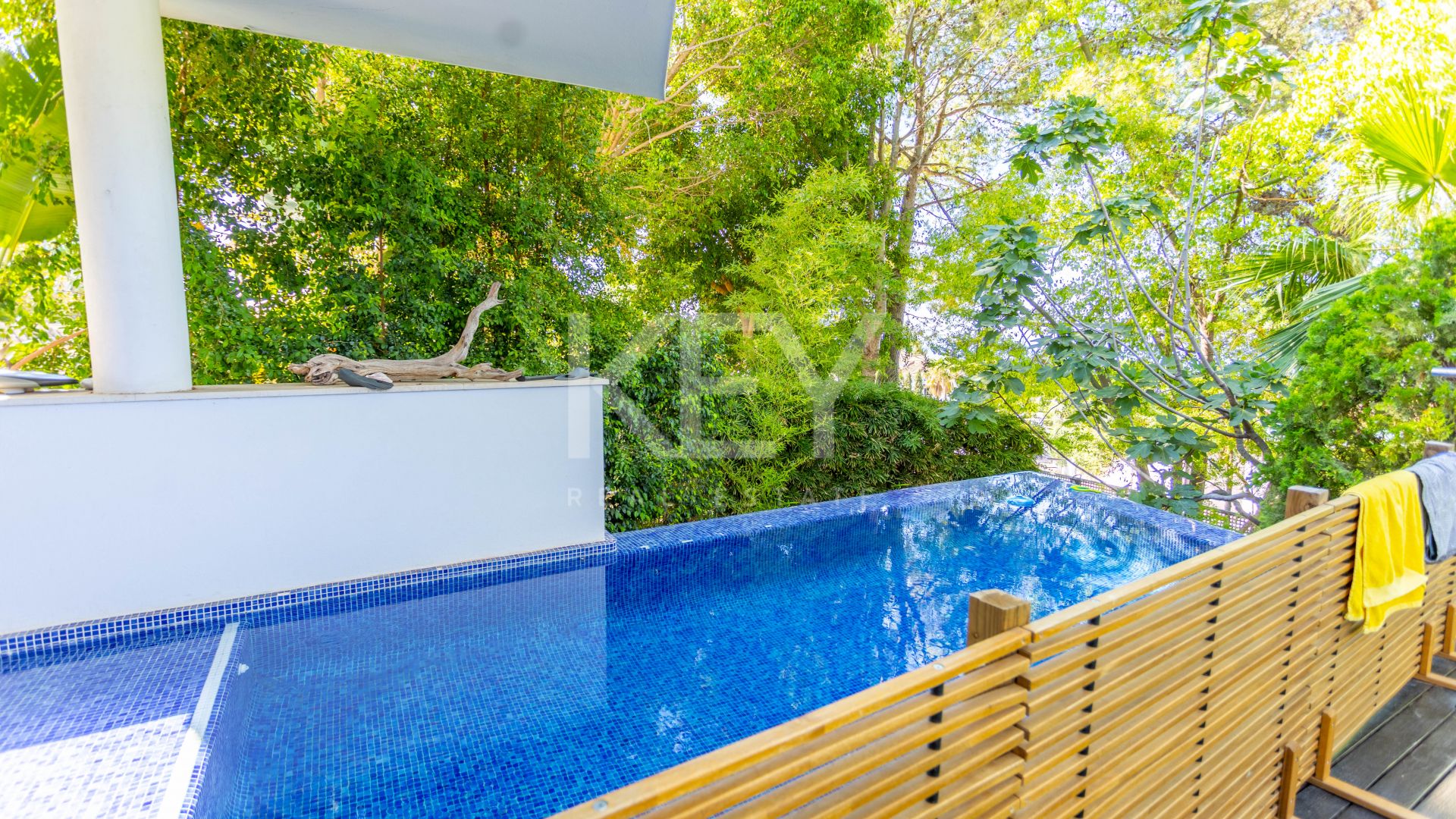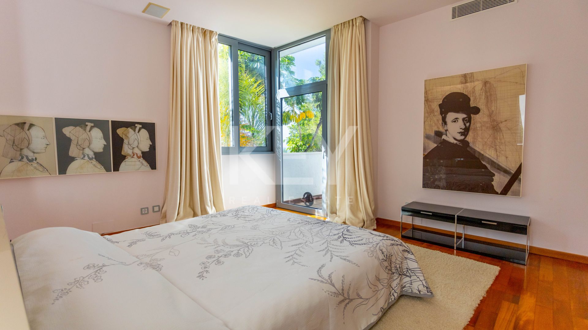 Outdoors, a private pool provides a tranquil setting for relaxation or entertaining, complemented by beautifully landscaped gardens. Residents benefit from 24-hour security and access to immaculate communal facilities, including swimming pools and lush gardens, creating a true resort-style living experience.