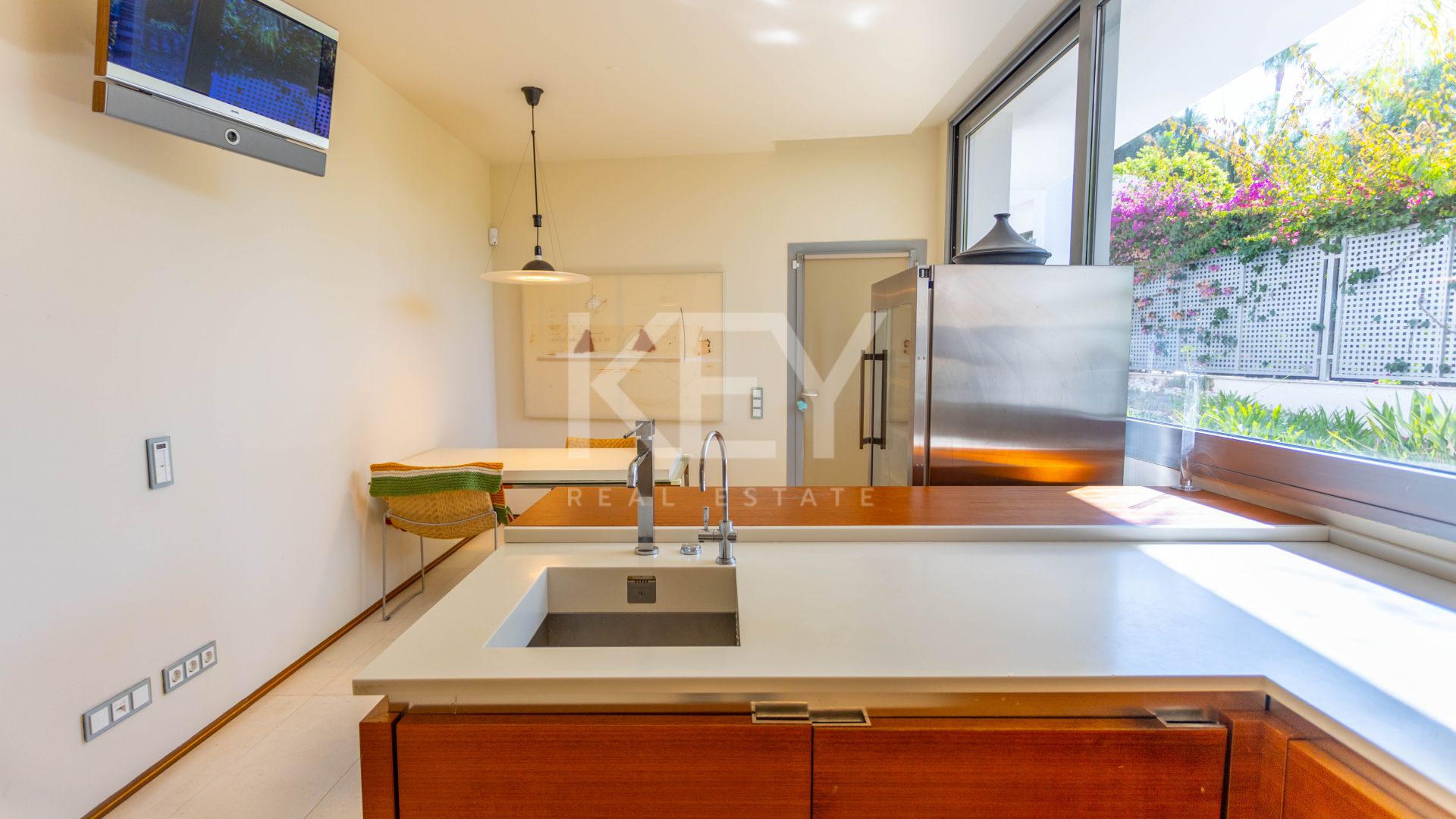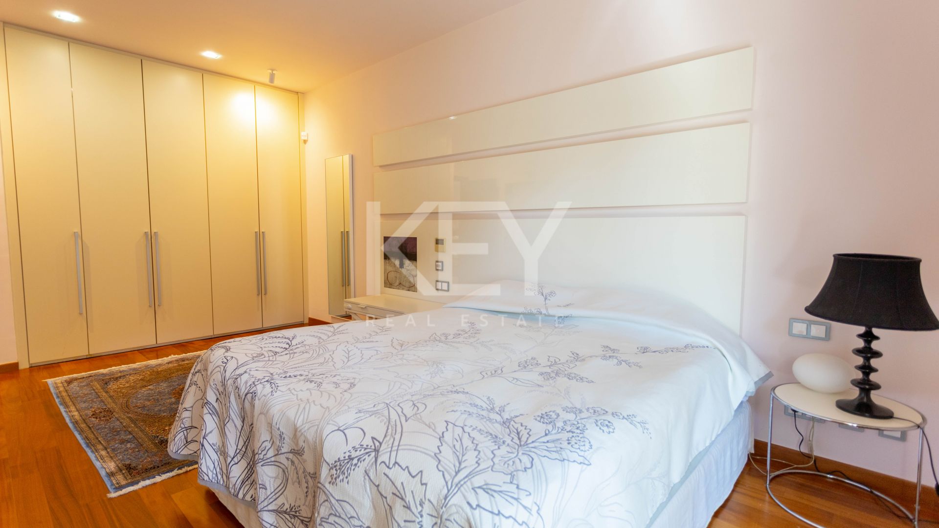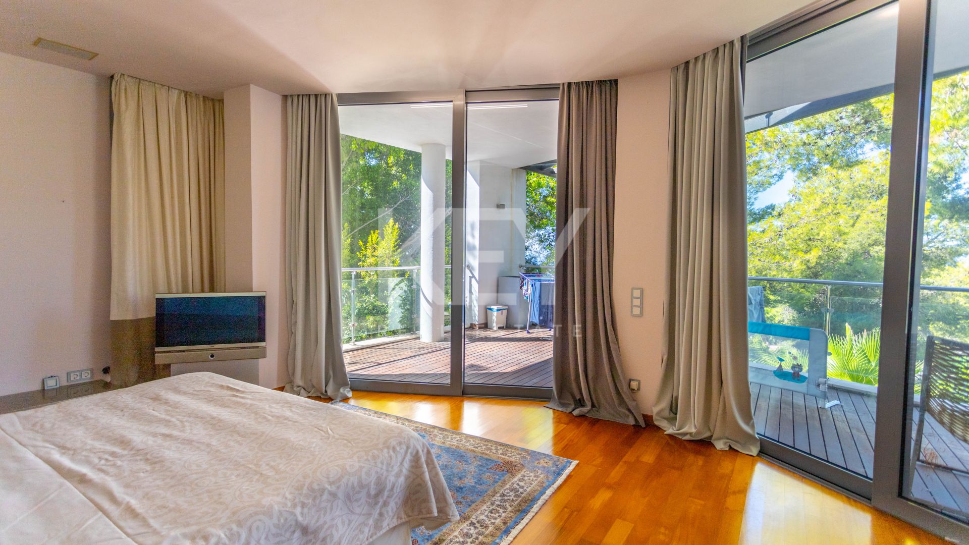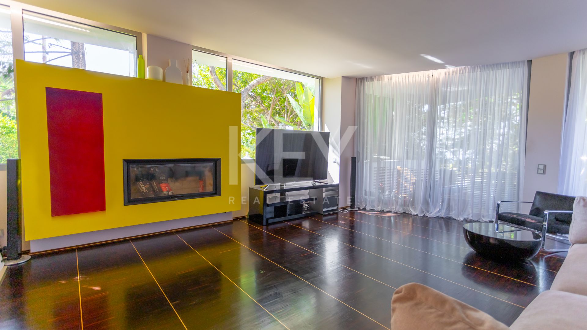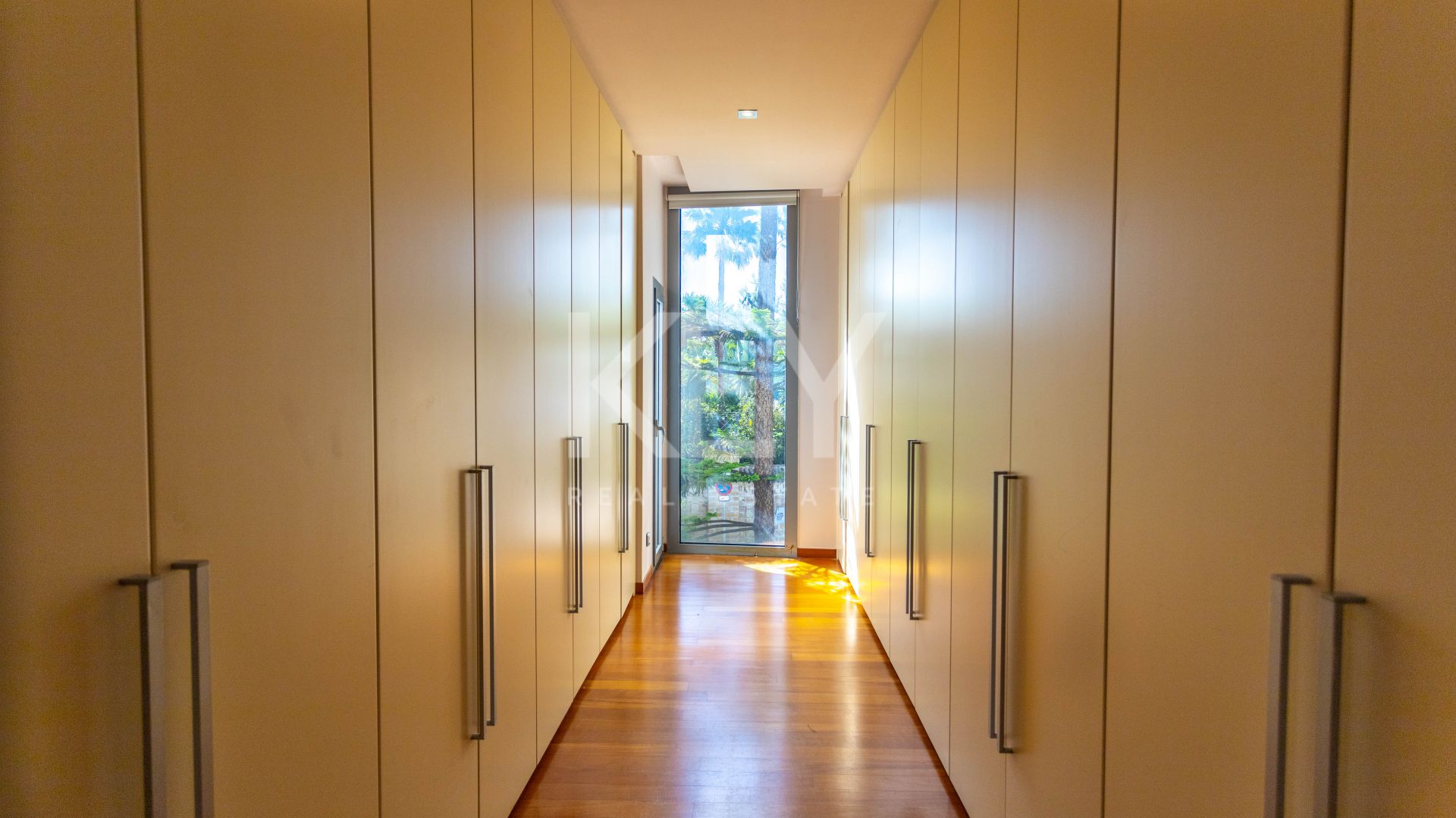 The interiors have been thoughtfully designed to create a seamless connection between indoor and outdoor living. Large windows frame the panoramic views, while the open-plan layout enhances the sense of space and flow. The villa also includes a private lift for added convenience and accessibility.