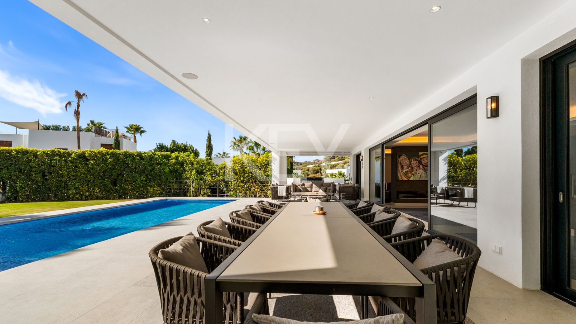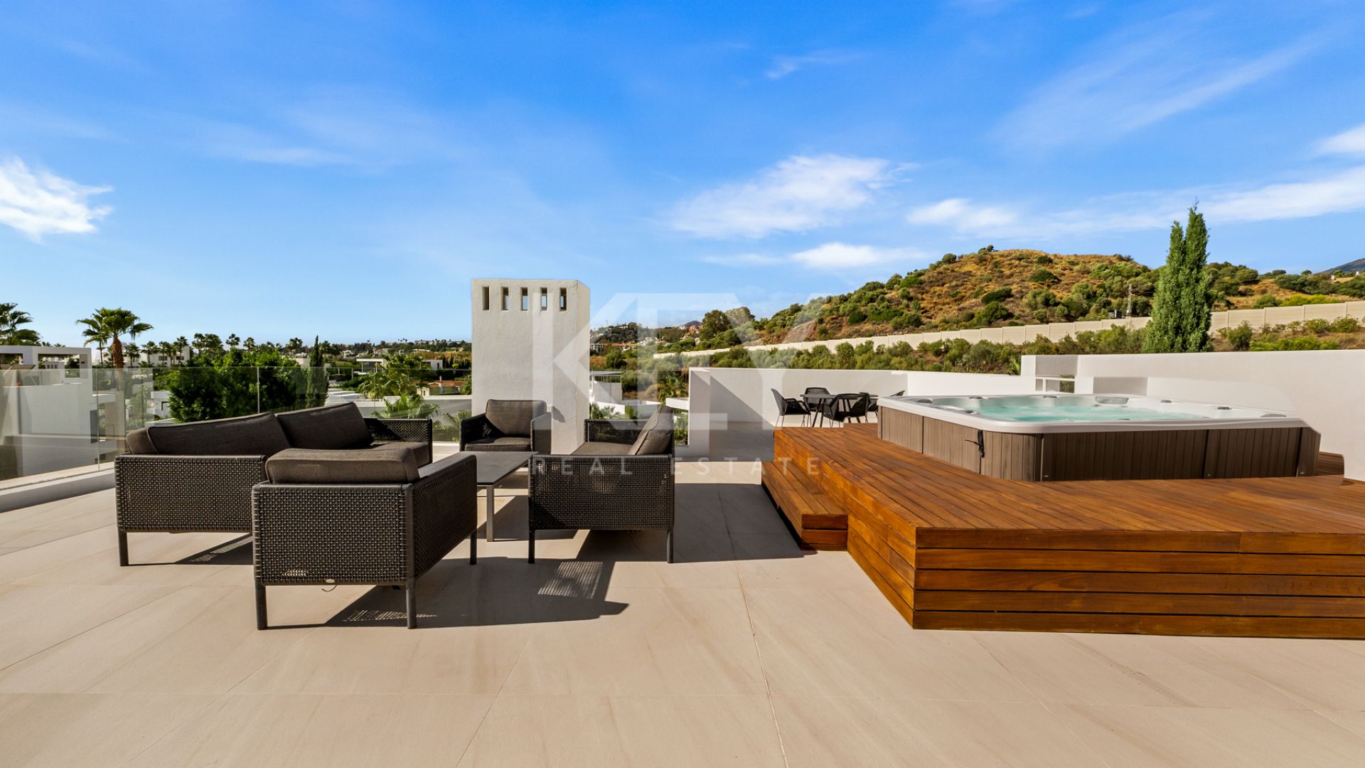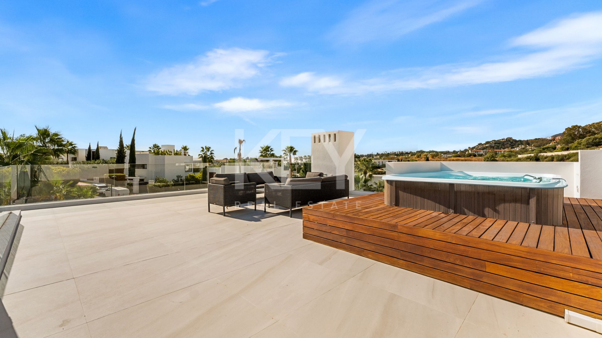 This modern villa is set in one of the most desirable gated communities in Nueva Andalucía, within the well-known Vasari Los Olivos residential area. Surrounded by the Golf Valley, this neighbourhood is appreciated for its calm atmosphere, well-maintained streets, and excellent access to top golf courses, international schools, and the best services in Marbella. Its central location places owners close to Las Brisas, Aloha, Los Naranjos, Puerto Banús, fine dining options, and a wide range of leisure activities.