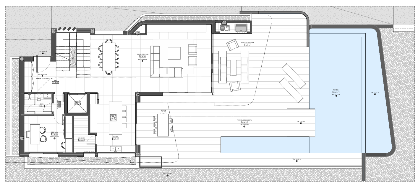 The elevated position provides open views towards the Mediterranean Sea and the surrounding mountain landscape. The proposed project has been designed to prioritise natural light, privacy, and a strong connection between interior and exterior spaces. The architectural concept includes a multi-level villa with spacious terraces, landscaped outdoor areas, and dedicated leisure zones, creating a balanced layout suited to both everyday living and entertaining.