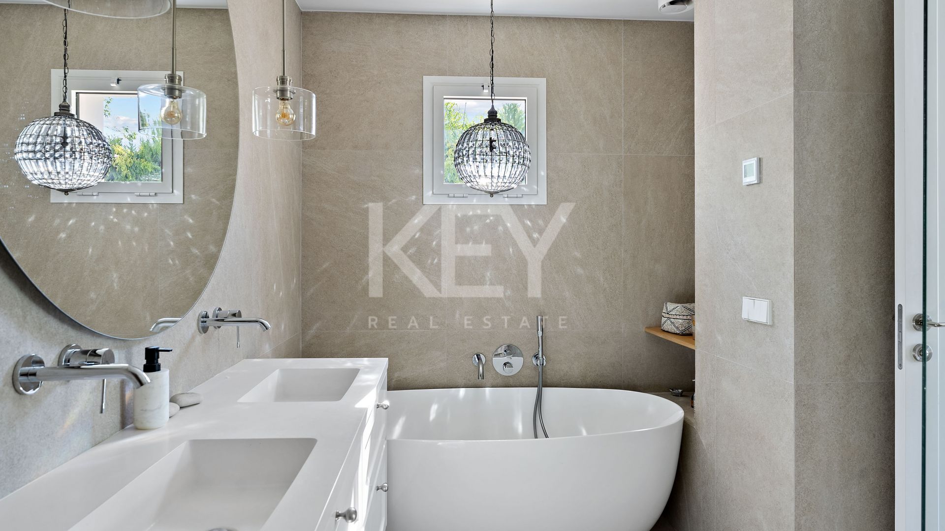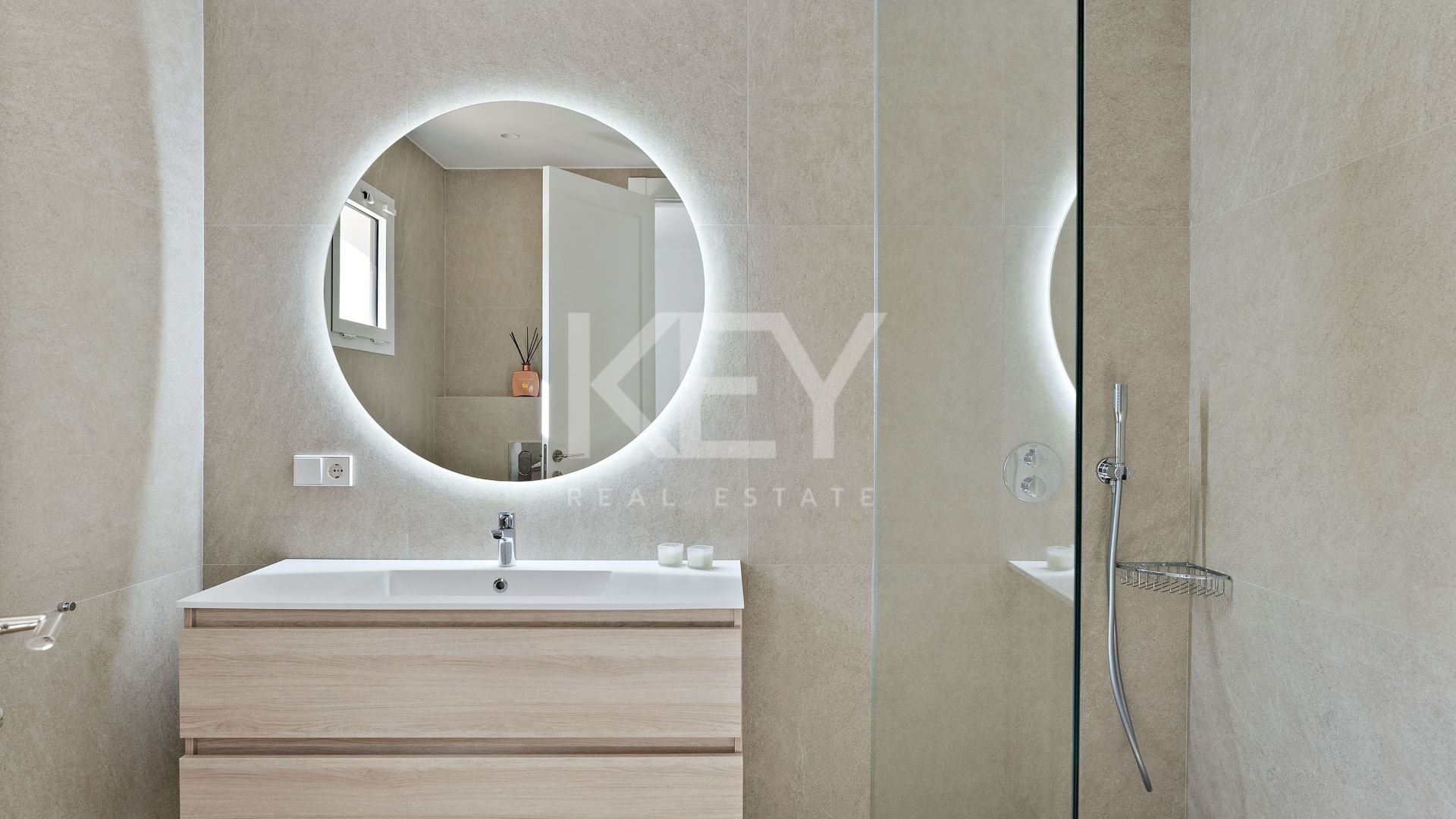 The upper floor accommodates three generously sized bedrooms, each with its own en-suite bathroom, ensuring privacy and convenience for family members and guests. The principal suite stands out with its walk-in wardrobe, southwest-facing terrace and private jacuzzi, offering open views and optimal afternoon sun. The layout also allows for the creation of an additional fourth bedroom, adding flexibility for buyers seeking extra accommodation or a home office.