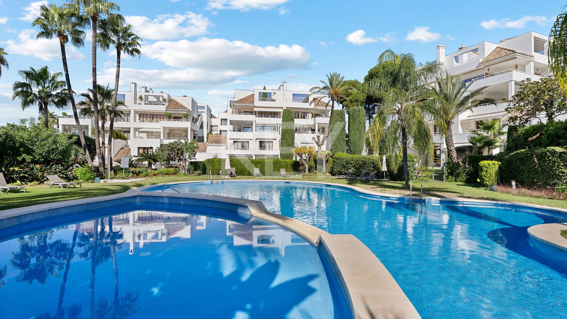Located in one of the most desirable residential enclaves of Nueva Andalucía, this fully refurbished apartment is set within the prestigious double-gated community of Alcores del Golf, directly adjacent to Los Naranjos Golf Club. The property combines contemporary functionality with a clean Nordic-inspired aesthetic, creating an inviting and well-balanced living environment designed for both comfort and long-term enjoyment.