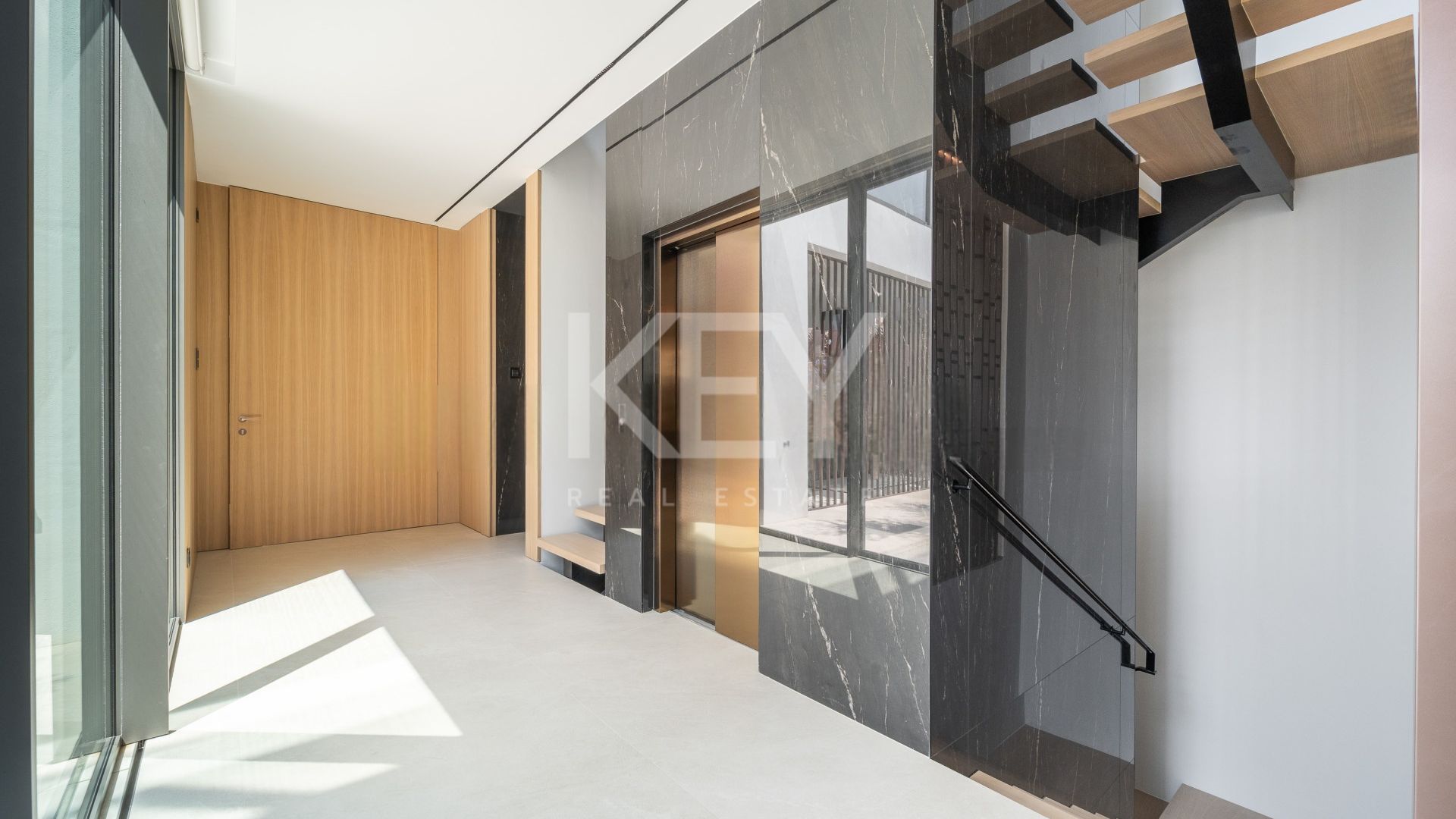Completed in late 2023, the property forms part of a boutique gated development and has been designed with a clear focus on functionality, architectural coherence, and natural light. Distributed across four levels and connected by both staircase and private lift, the home offers generous interior volumes complemented by expansive terraces, a rooftop solarium, and a private garden. The layout supports comfortable everyday living while also adapting well to entertaining and extended stays.