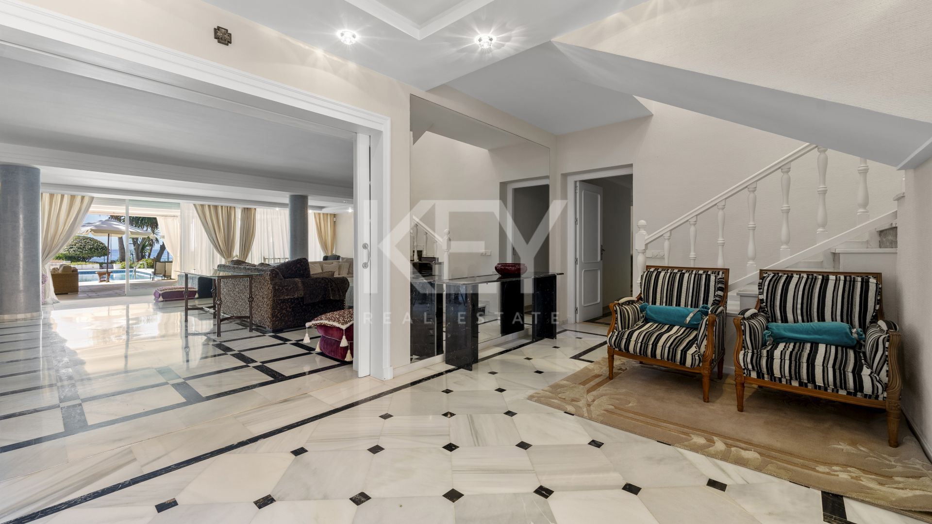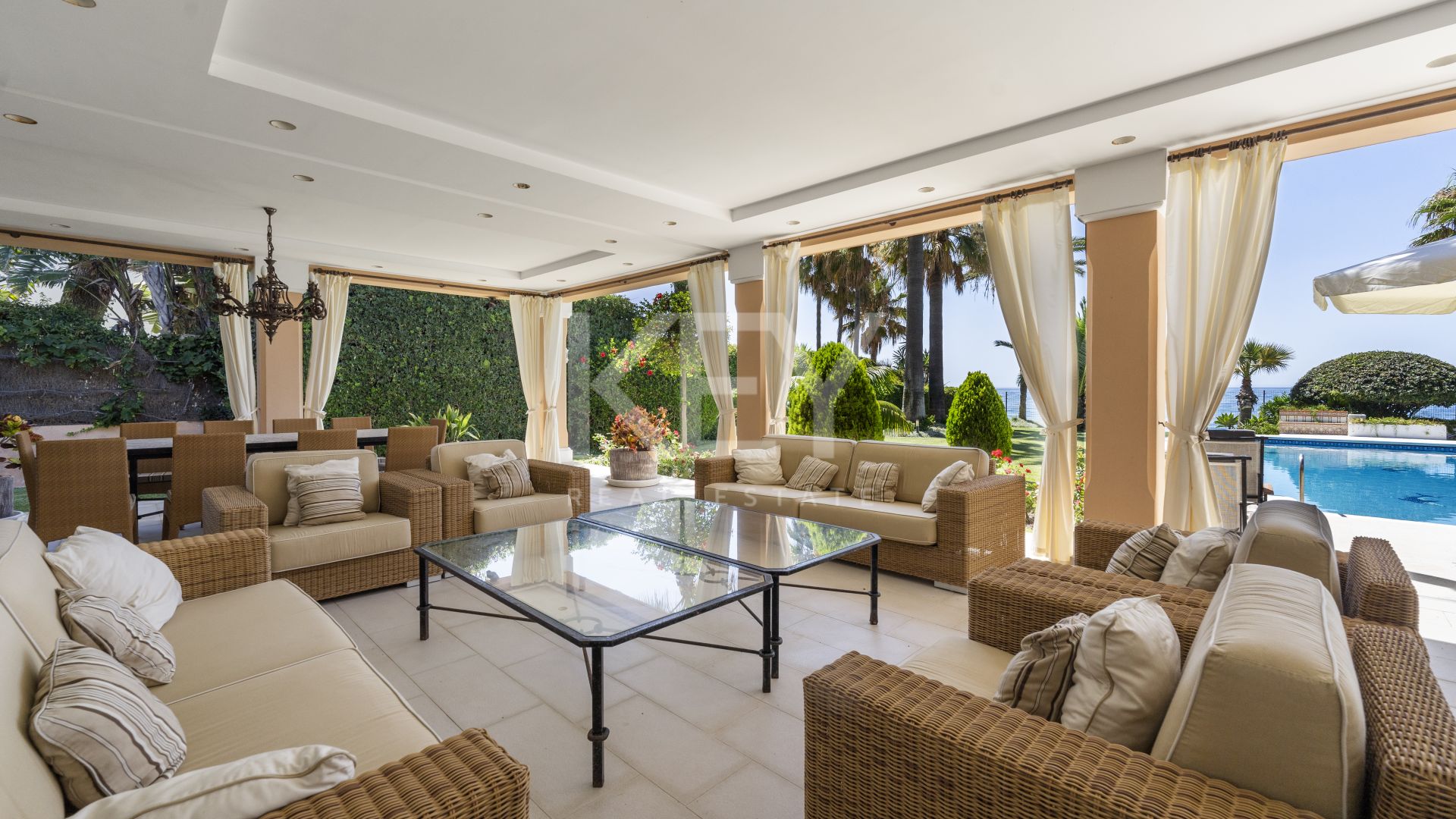 Discover this prestigious beachfront property in Estepona, offering a unique combination of direct sea access, elegant living spaces, and a lifestyle defined by comfort and coastal charm. Set on more than 4,300 m² of beautifully landscaped gardens, this exceptional luxury villa in Estepona presents a rare opportunity to own a residence with private access directly onto one of the most desirable beaches on the Costa del Sol. From sunrise to sunset, uninterrupted Mediterranean views and gentle sea breezes shape everyday life in a truly privileged setting.