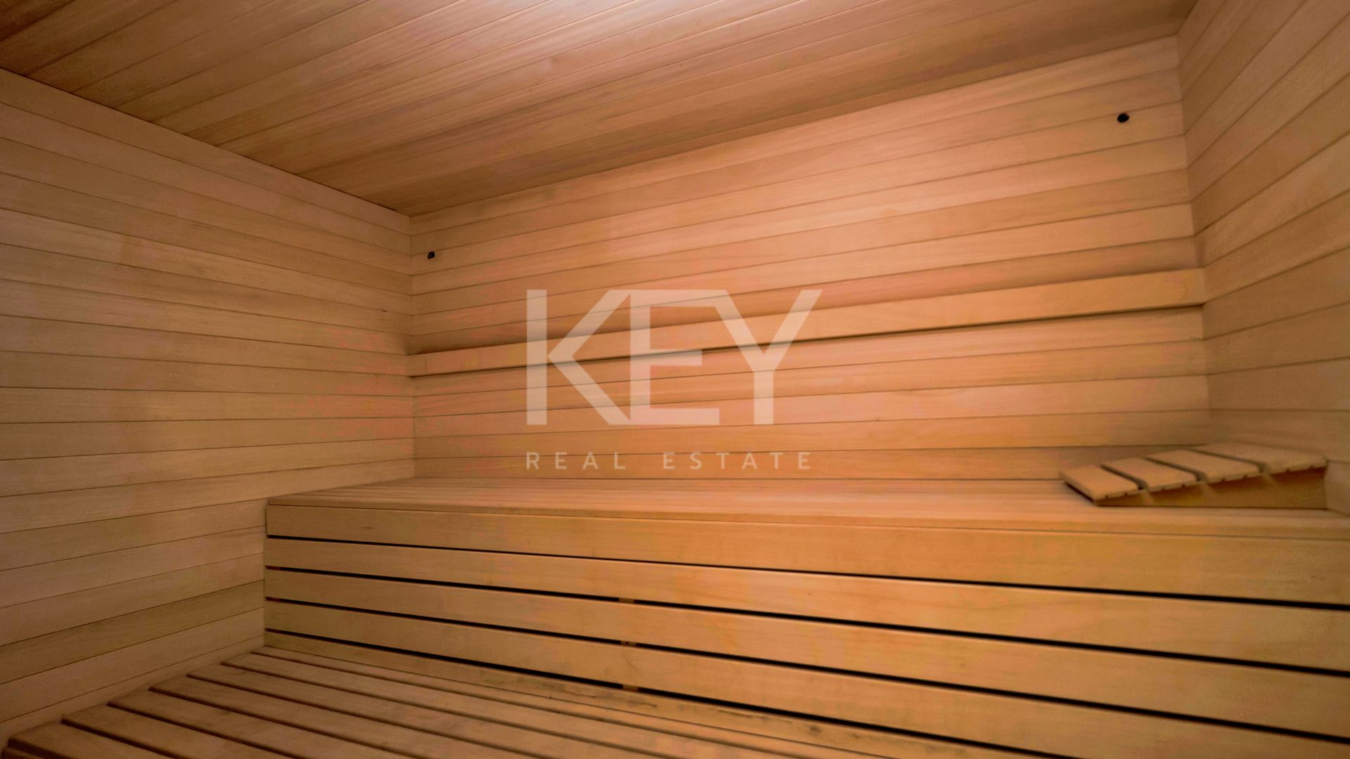 The lower level of the villa is dedicated to leisure and wellness. This floor includes a stylish bar area, an entertainment space with pool table, a private cinema room, a fully equipped gym, and a spa zone with sauna, indoor heated pool, and jacuzzi. This layout ensures year-round comfort, making the home equally enjoyable in all seasons.
