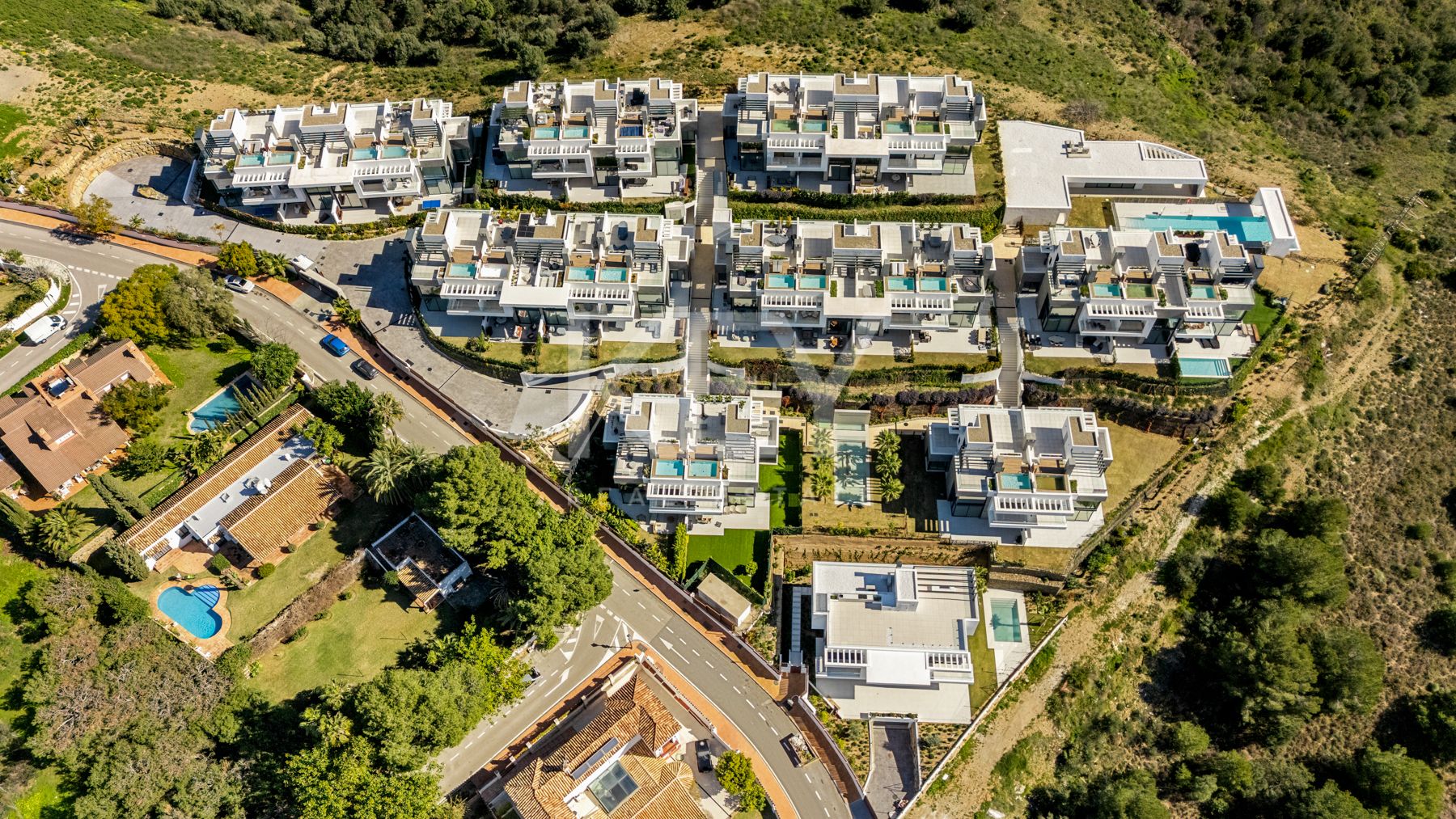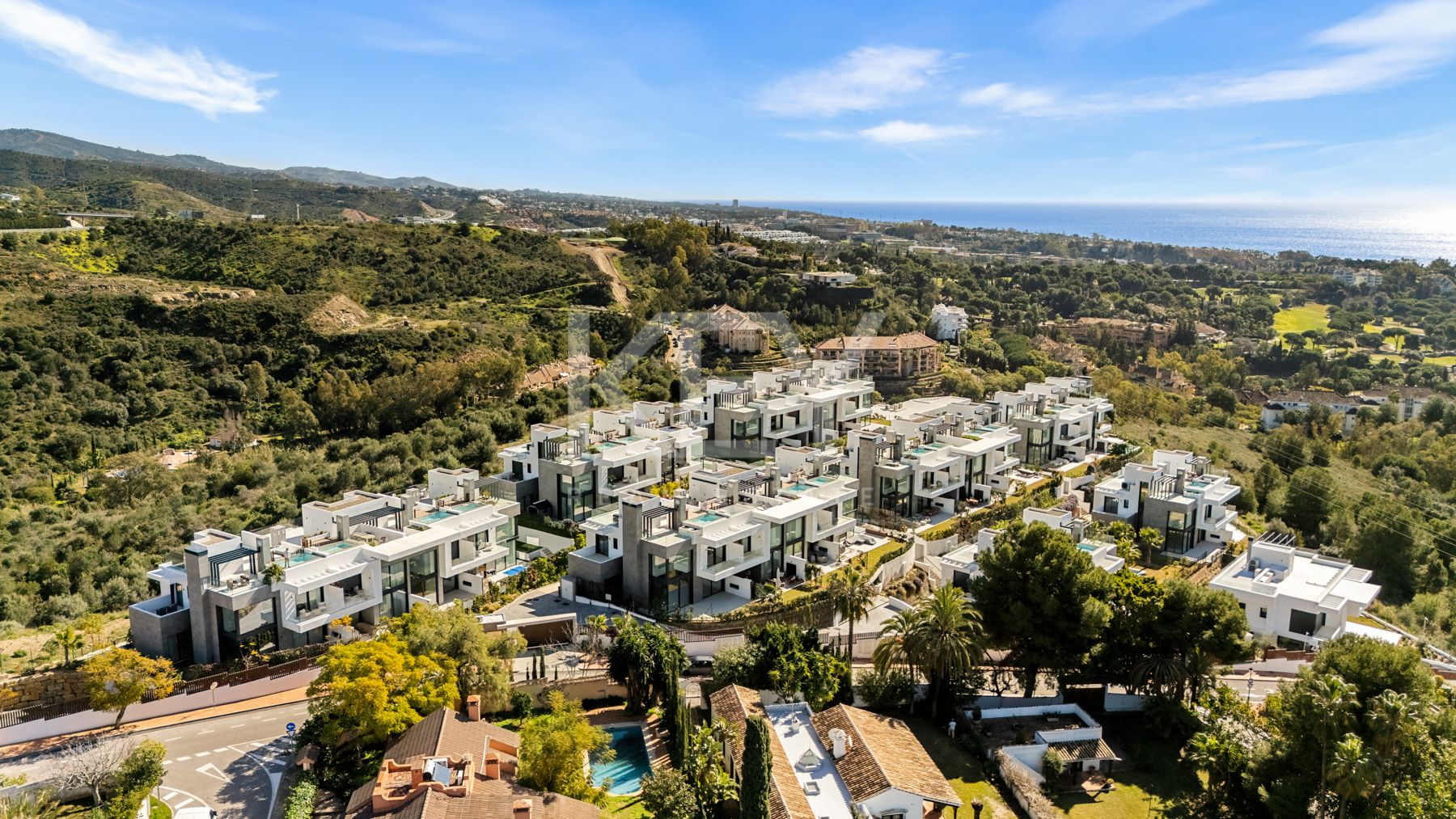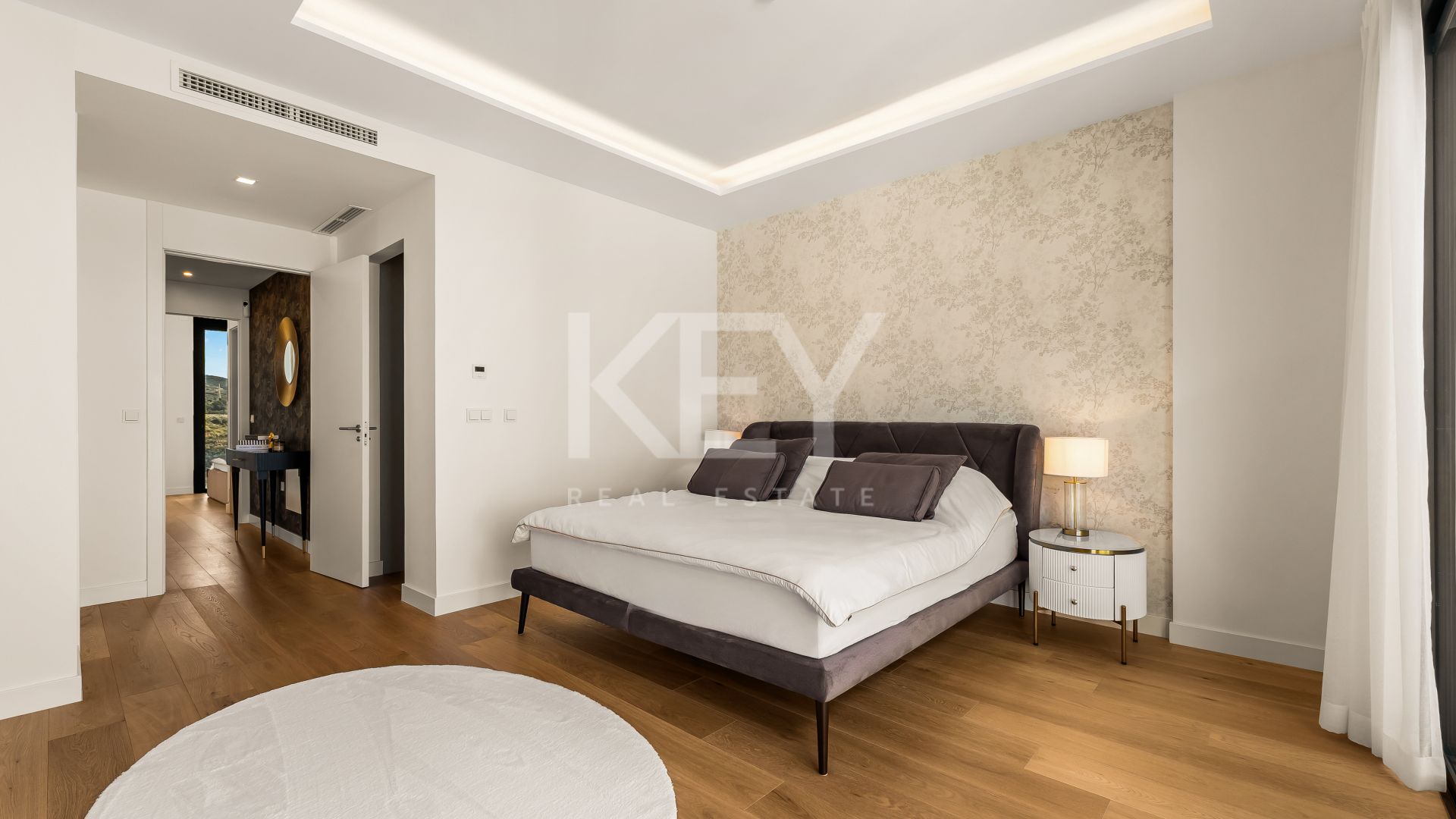 A private swimming pool and outdoor terraces allow residents to enjoy Marbella’s mild climate throughout the year, while the elevated position between sea and mountains creates a sense of space and privacy. Within the gated community, residents have access to a shared outdoor pool and a wellness area with a gym, sauna, and hammam. Convenient access roads lead directly to each home, ensuring comfort for both owners and guests. Many buyers look for modern villas near Marbella with sea views and relaxation areas, and this property meets those expectations through a balanced combination of design and functionality.