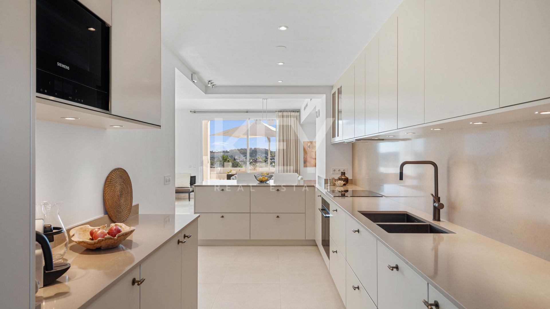 Distributed over two levels, the penthouse offers a bright open-plan living concept with seamless transitions between indoor and outdoor spaces. The contemporary kitchen is fitted with high-quality finishes and designed for both functionality and style, connecting naturally to the main living area. Three well-proportioned bedrooms and three bathrooms provide comfort for both residents and guests, making it ideal as a permanent residence or a high-end holiday home in Marbella.