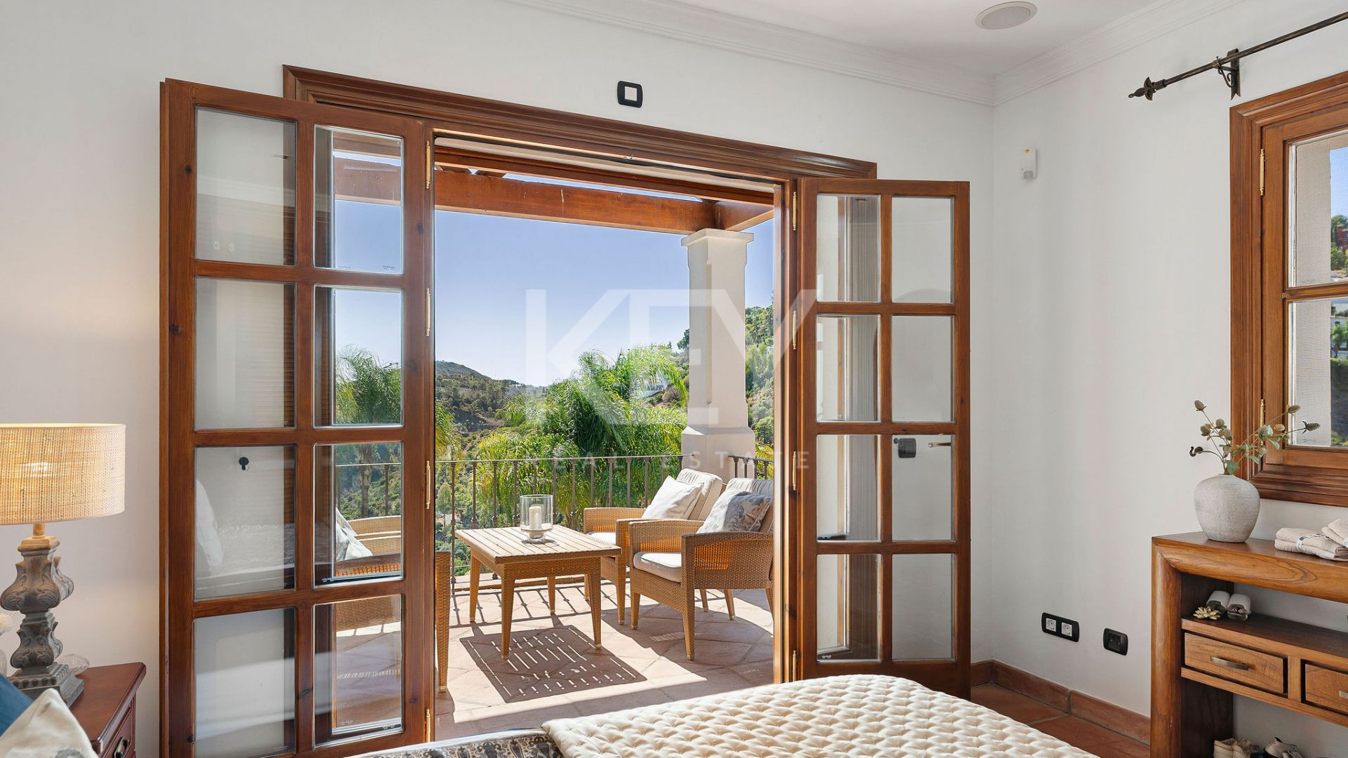 Inside, the villa delivers both functionality and lifestyle appeal. The layout includes spacious open-plan living areas, high ceilings, and traditional architectural details that enhance character while maintaining a contemporary feel. Features such as underfloor heating, air conditioning, a home cinema room, and integrated sound systems respond to the expectations of buyers looking for modern villas in Benahavís with premium features. The master suite includes a walk-in wardrobe, and additional flexible spaces allow for further bedrooms or entertainment areas, adapting easily to different lifestyle needs.