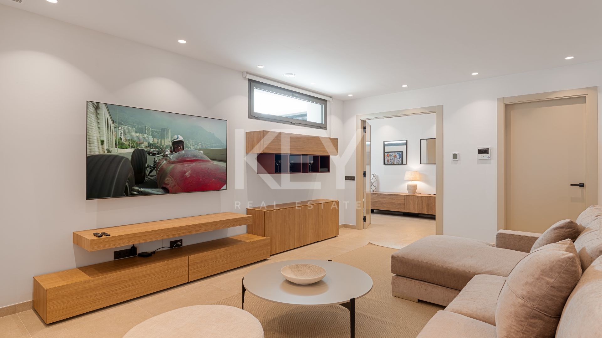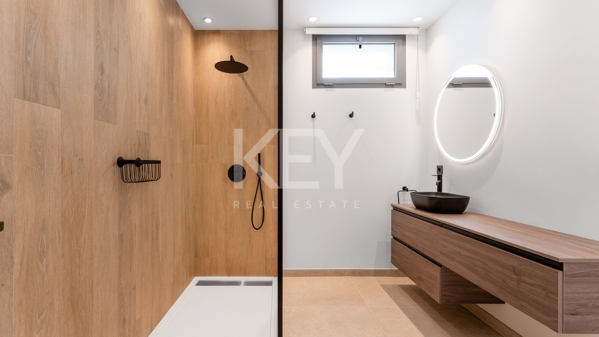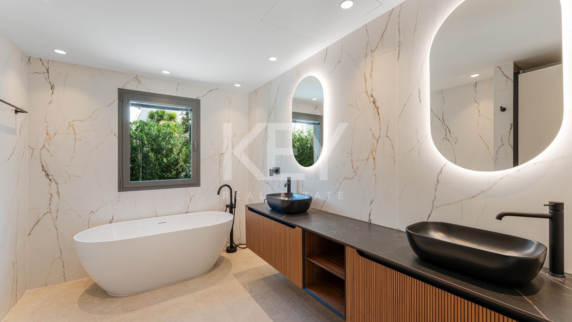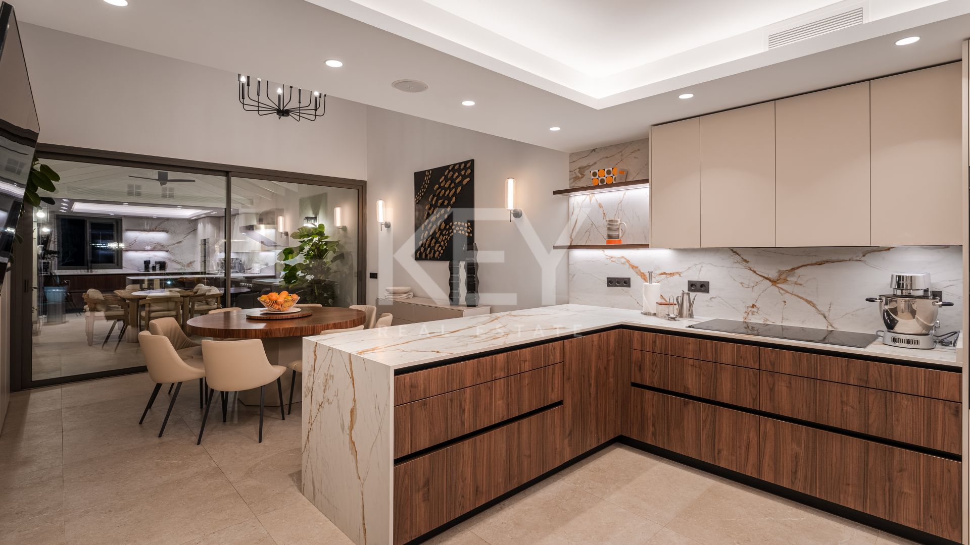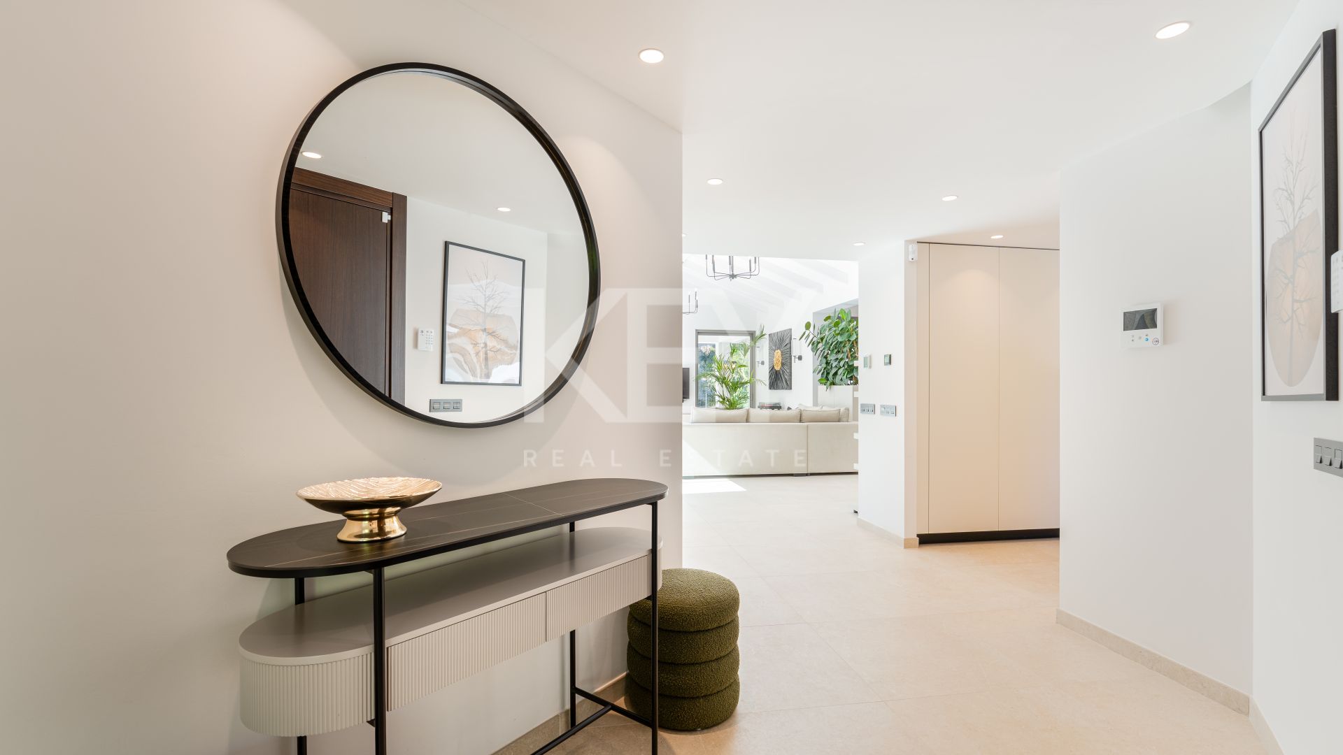 This contemporary five-bedroom villa for sale in Nueva Andalucía offers a refined approach to modern living in one of Marbella’s most sought-after residential areas. Fully renovated in 2025, the property combines clean architectural lines with functional design, creating a home that is both practical and visually striking. Positioned in the heart of the Golf Valley, it benefits from proximity to some of the most established golf courses on the Costa del Sol, making it an ideal choice for buyers searching for luxury property in Marbella near golf.