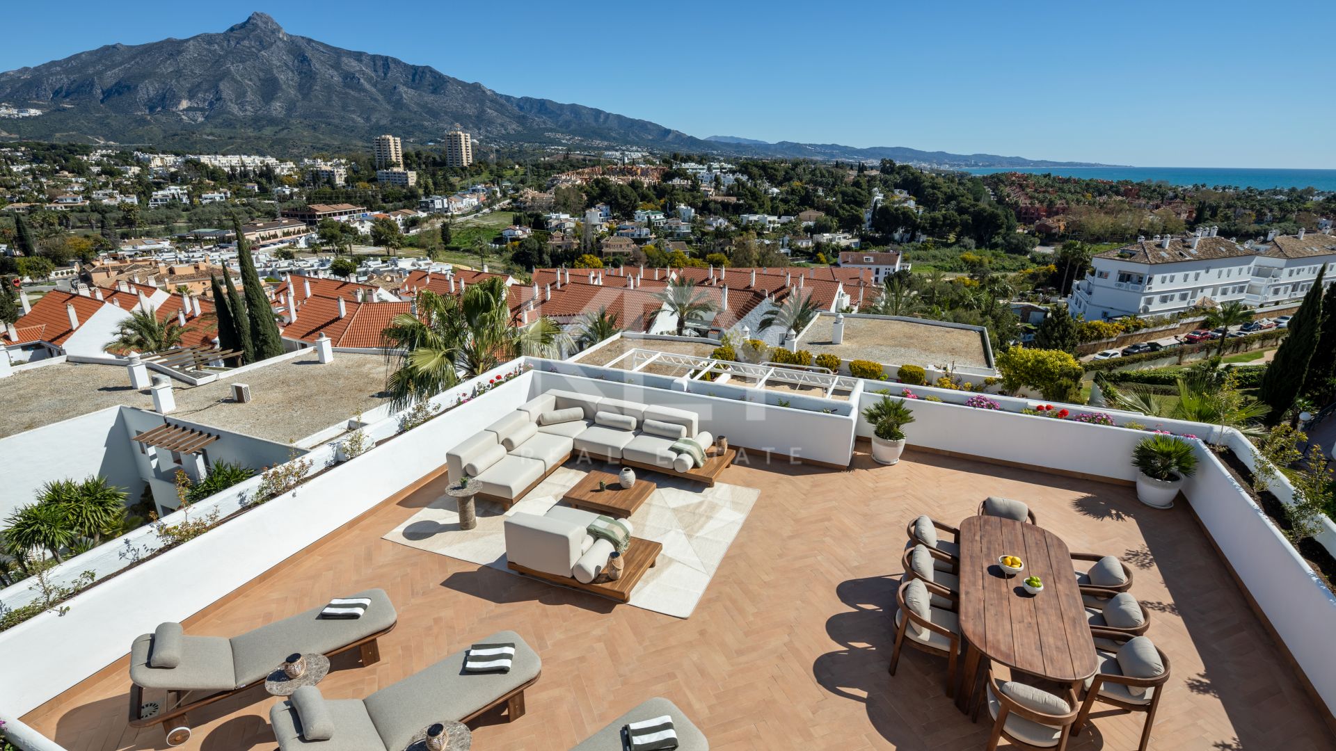 Positioned in one of the most sought-after residential areas of Marbella, this fully renovated apartment in Nueva Andalucía combines modern living with an exceptional location. The property stands out for its spacious terrace, offering open views of both the Mediterranean Sea and the surrounding mountains, creating a setting that enhances everyday living. Thanks to its orientation, the apartment benefits from abundant natural light throughout the day, adding to the sense of comfort and space.