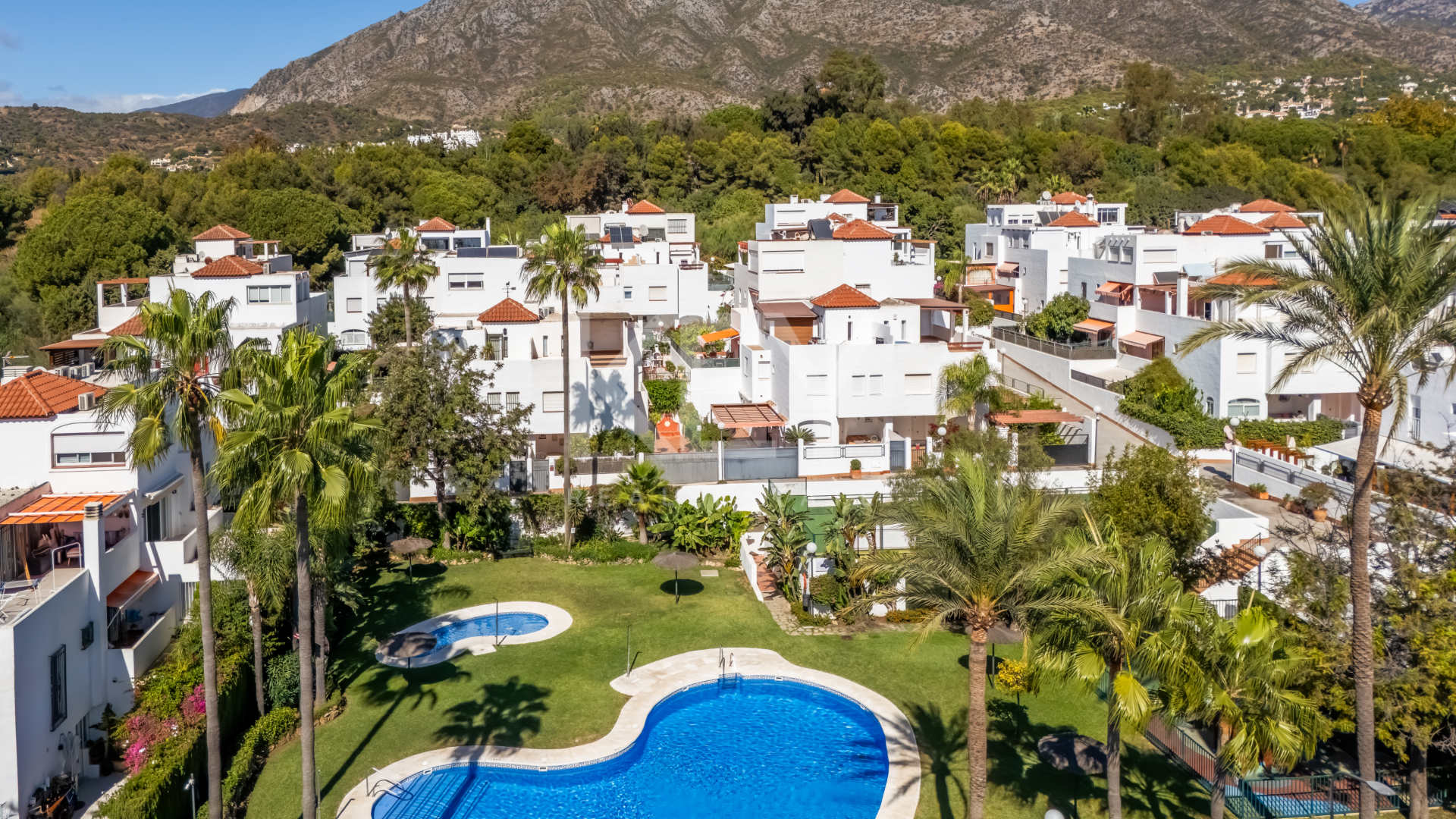 Nestled in the prestigious Las Lomas del Marbella Club, this fully renovated townhouse perfectly blends ...