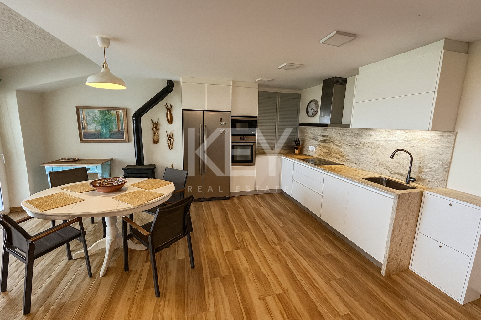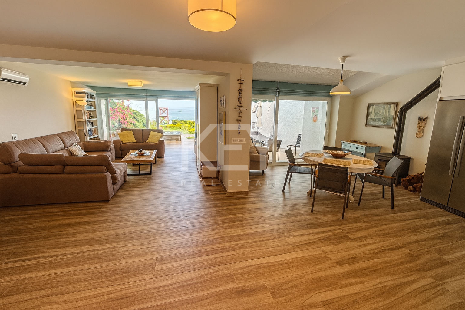 Дом расположен на трех уровнях, что обеспечивает гибкость планировки. На входном этаже находятся четыре спальни с ванными комнатами, две из которых имеют потрясающий вид на море. Основной уровень включает светлую гостиную и столовую открытой планировки с уютным камином, современную кухню и гостевой санузел. Большие стеклянные двери ведут на просторную террасу с зоной барбекю и частным садом, который плавно переходит в пляж.