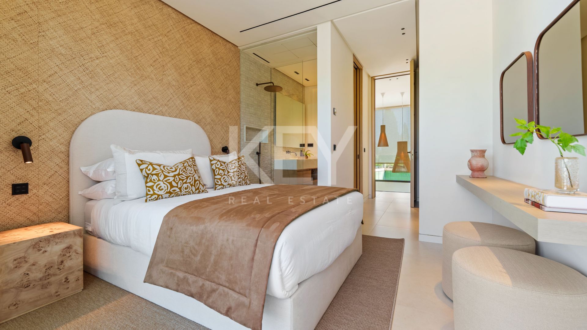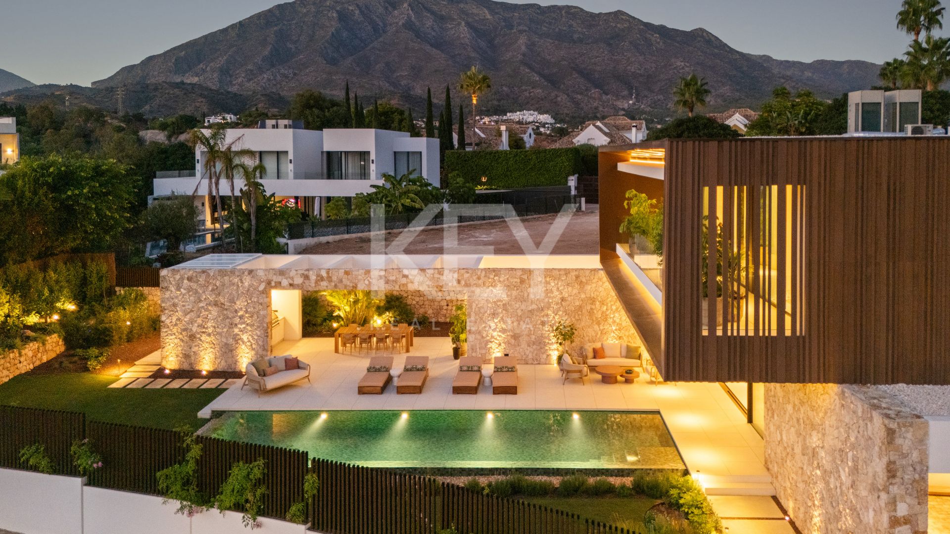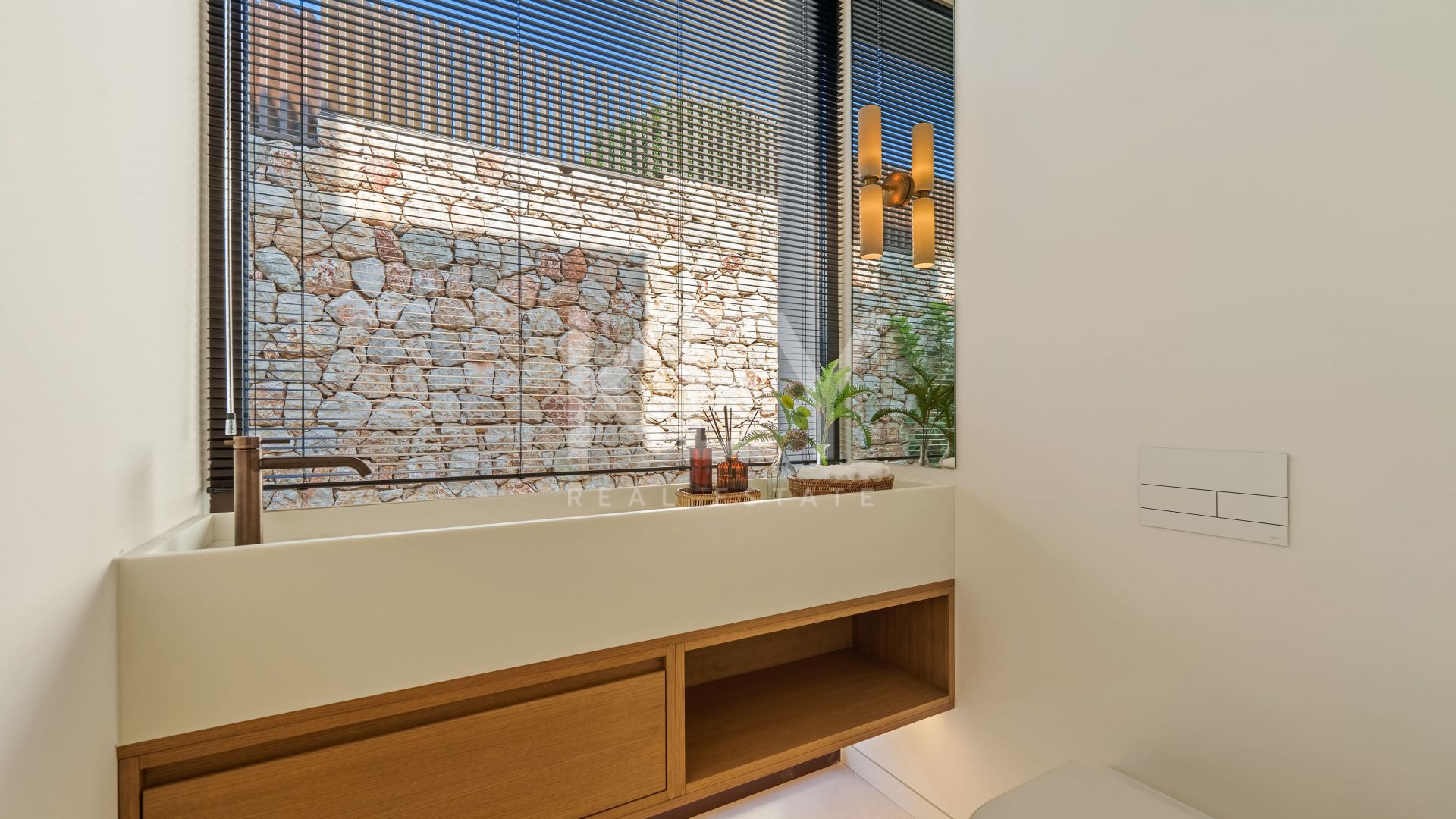 В зелёных холмах Марбельи расположена современная вилла, идеально вписанная в природный ландшафт и одновременно поражающая изысканным архитектурным стилем. Большие панорамные окна соединяют внутренние помещения с террасами и садом, наполняя дом светом и создавая атмосферу спокойствия и гармонии. Натуральное дерево и камень подчёркивают ощущение природной элегантности.