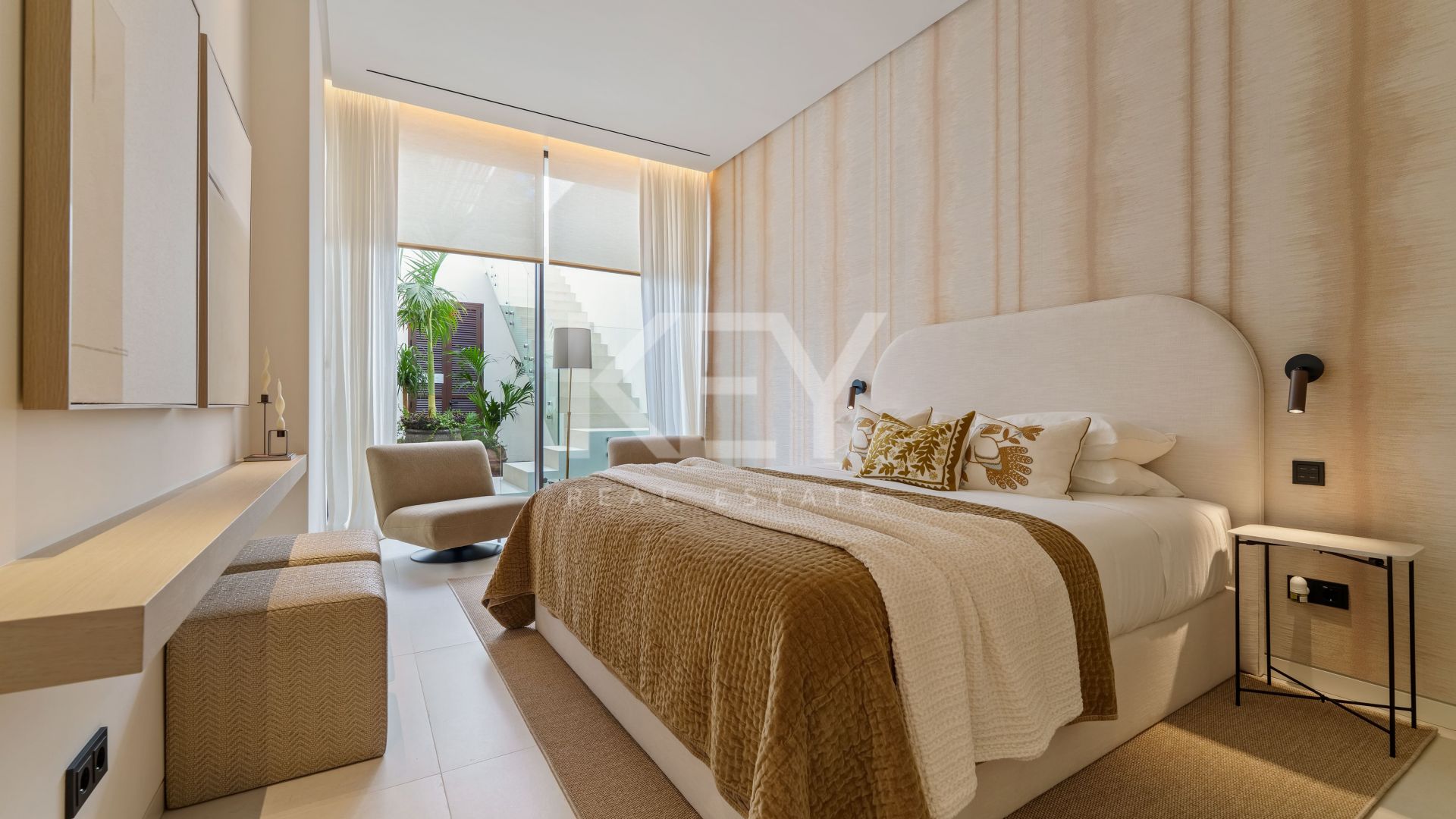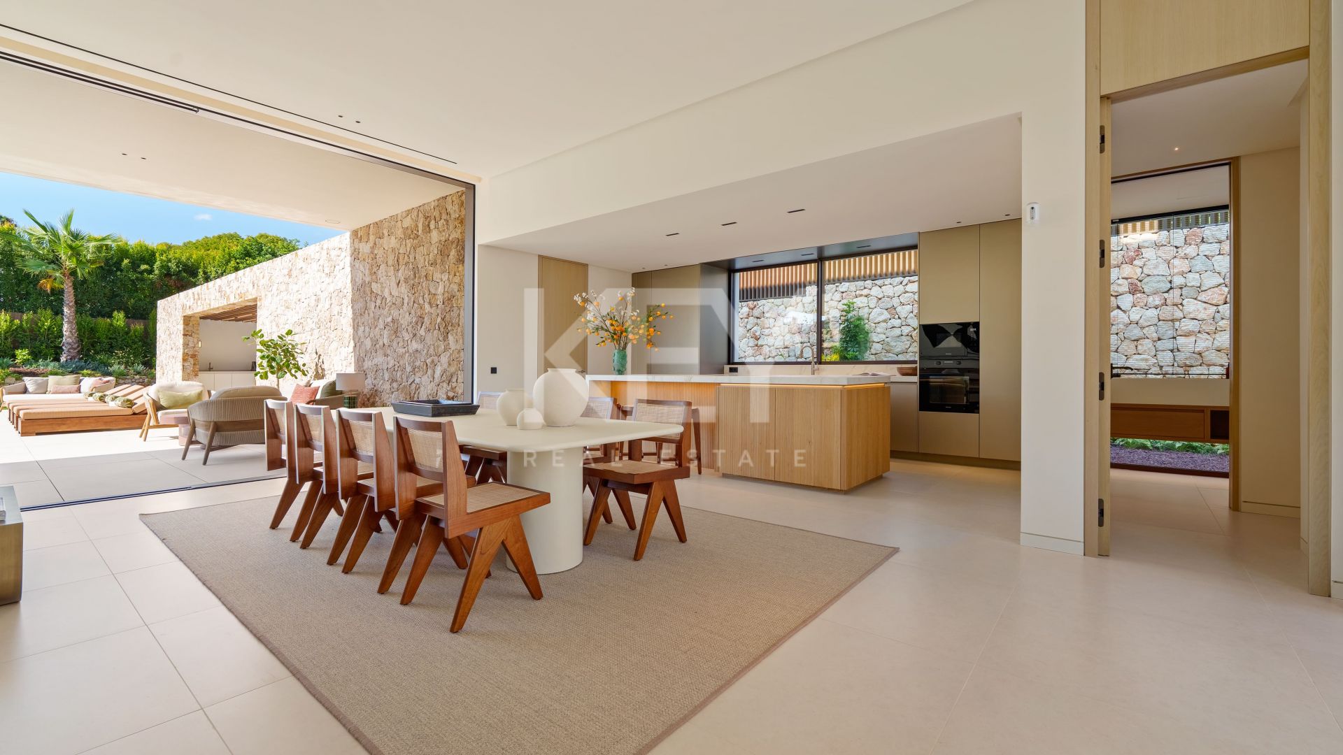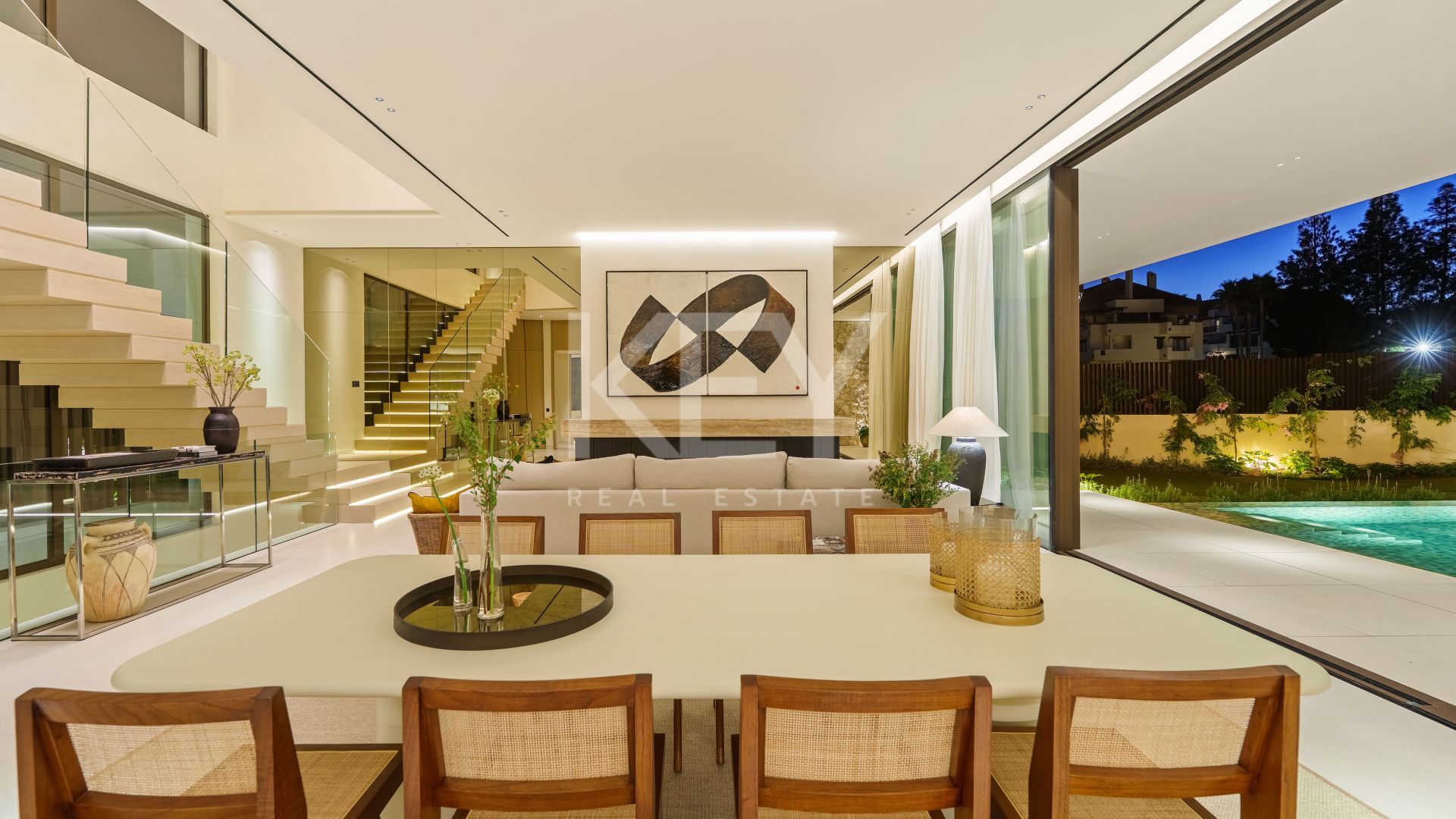 В зелёных холмах Марбельи расположена современная вилла, идеально вписанная в природный ландшафт и одновременно поражающая изысканным архитектурным стилем. Большие панорамные окна соединяют внутренние помещения с террасами и садом, наполняя дом светом и создавая атмосферу спокойствия и гармонии. Натуральное дерево и камень подчёркивают ощущение природной элегантности.