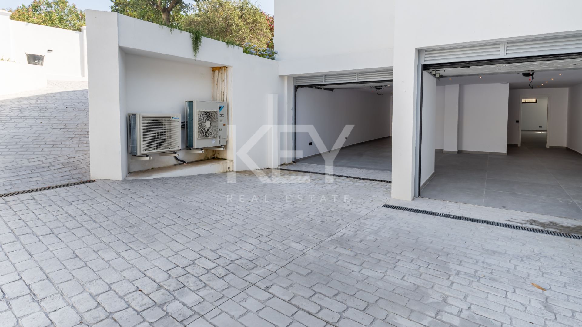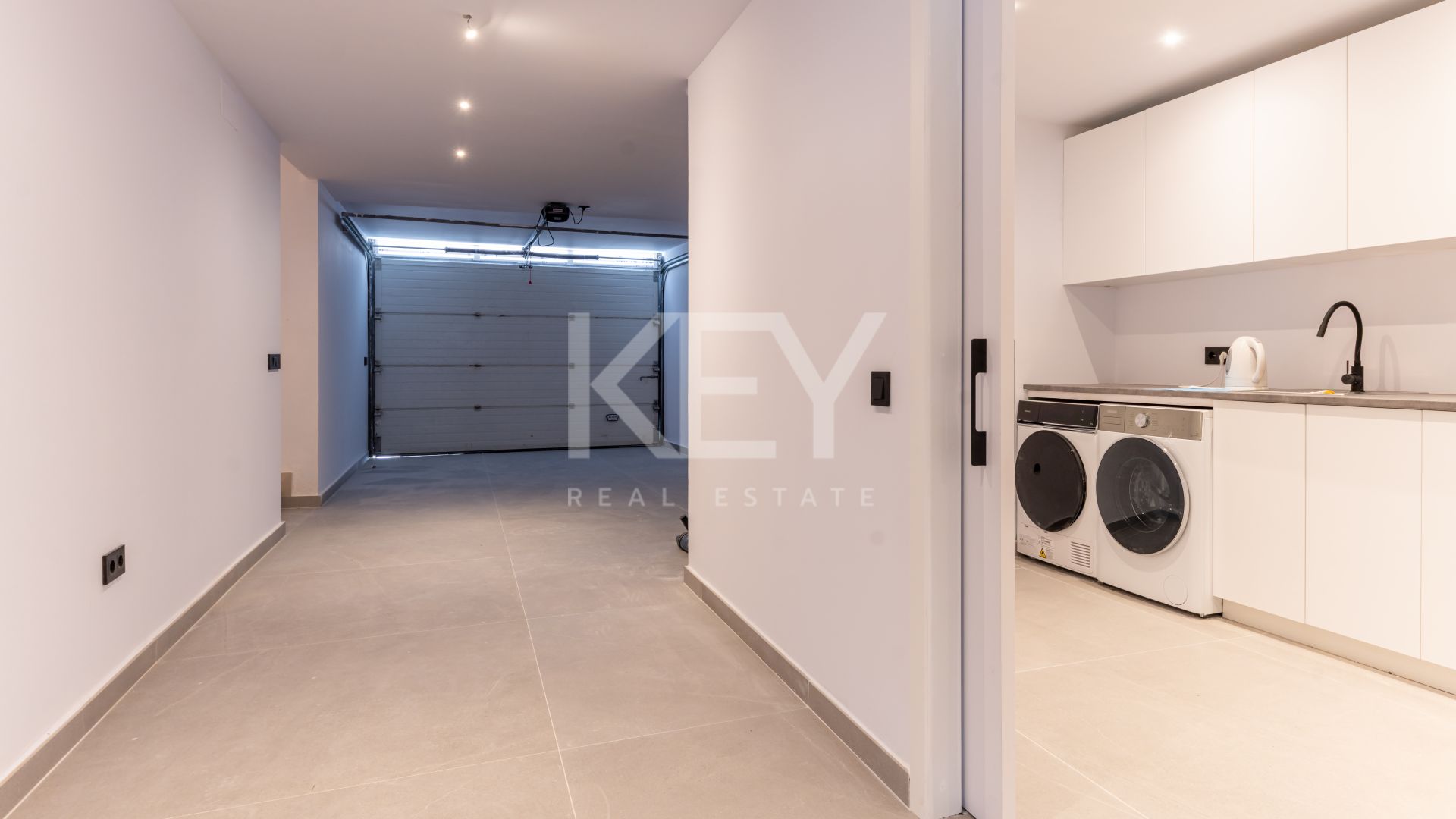 Широкая подъездная дорога ведет к охраняемой подземной парковке и естественно освещенному подвалу с гибким использованием — идеально подходит для тренажерного зала, кинозала, зоны развлечений или винного погреба.