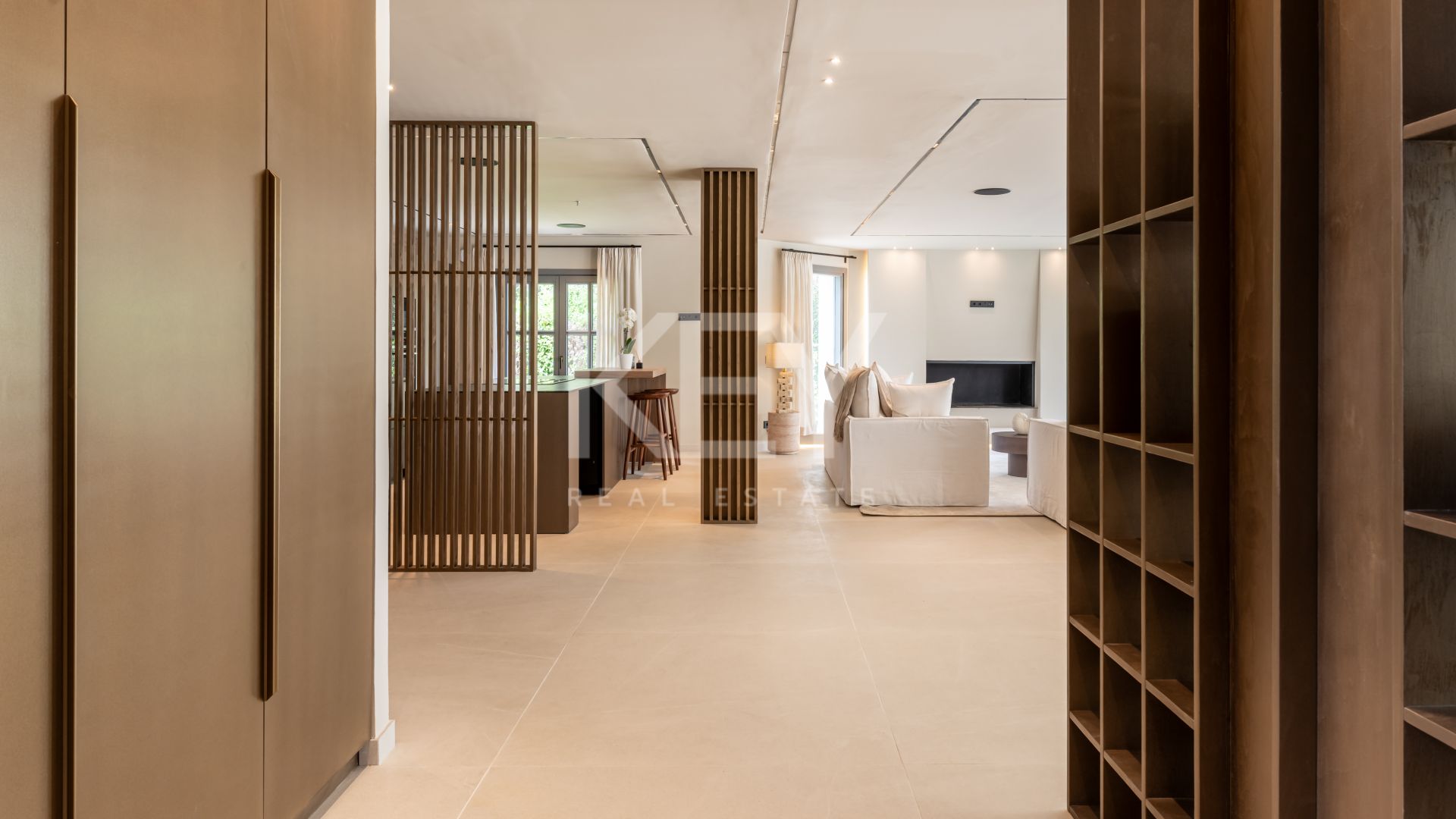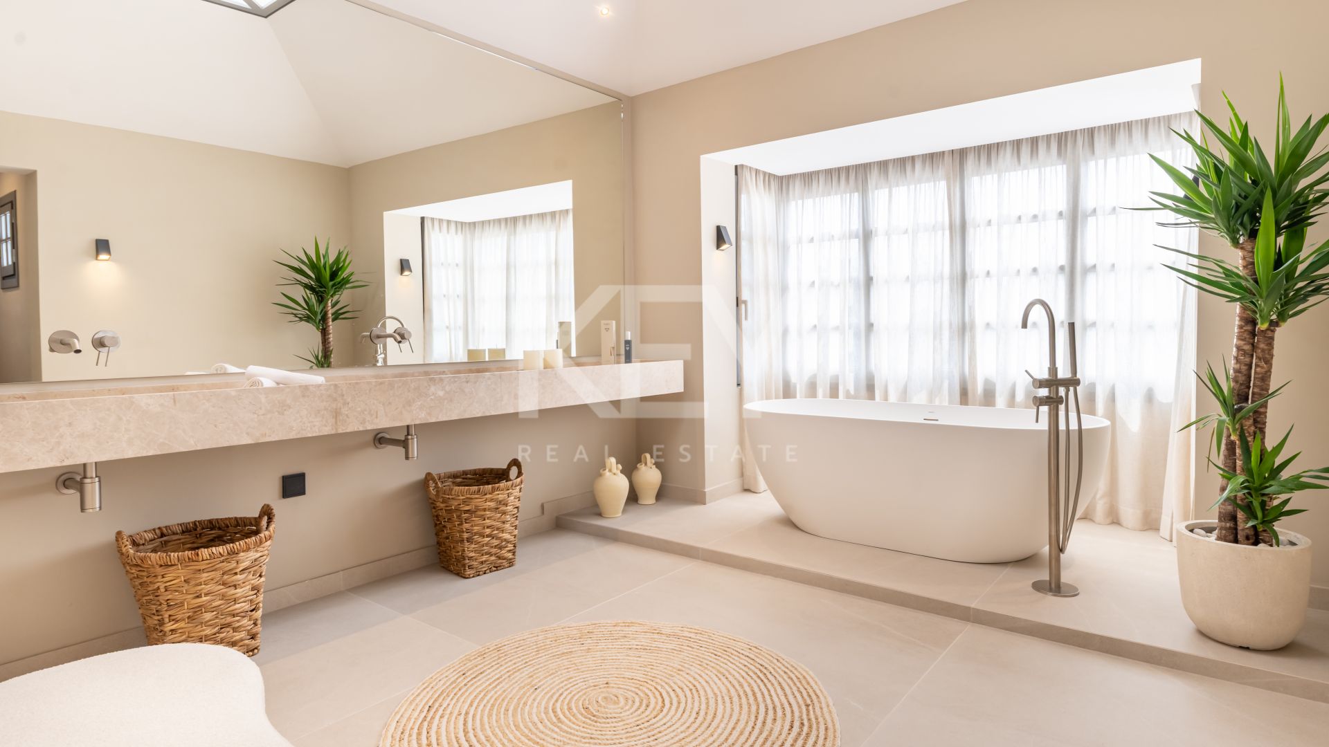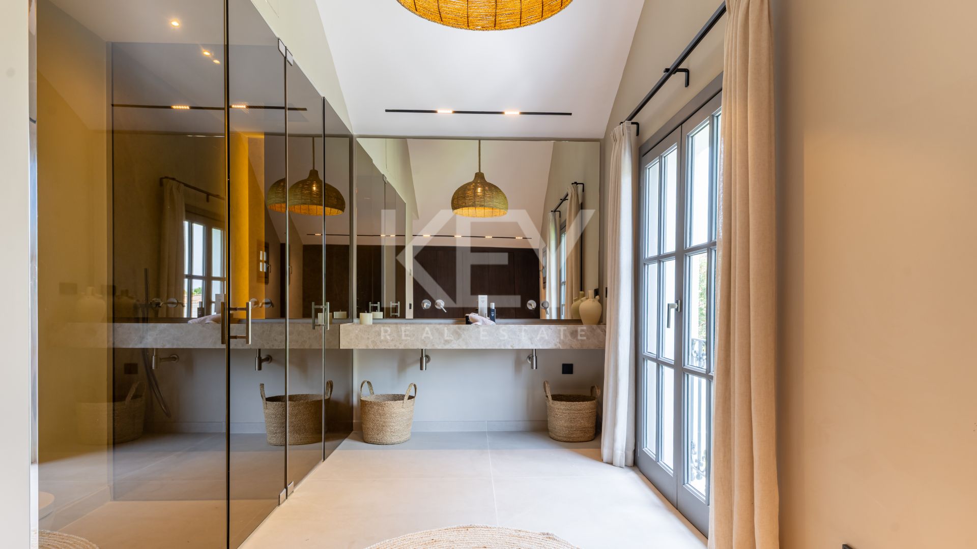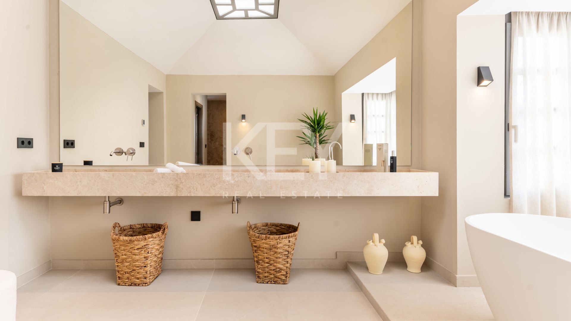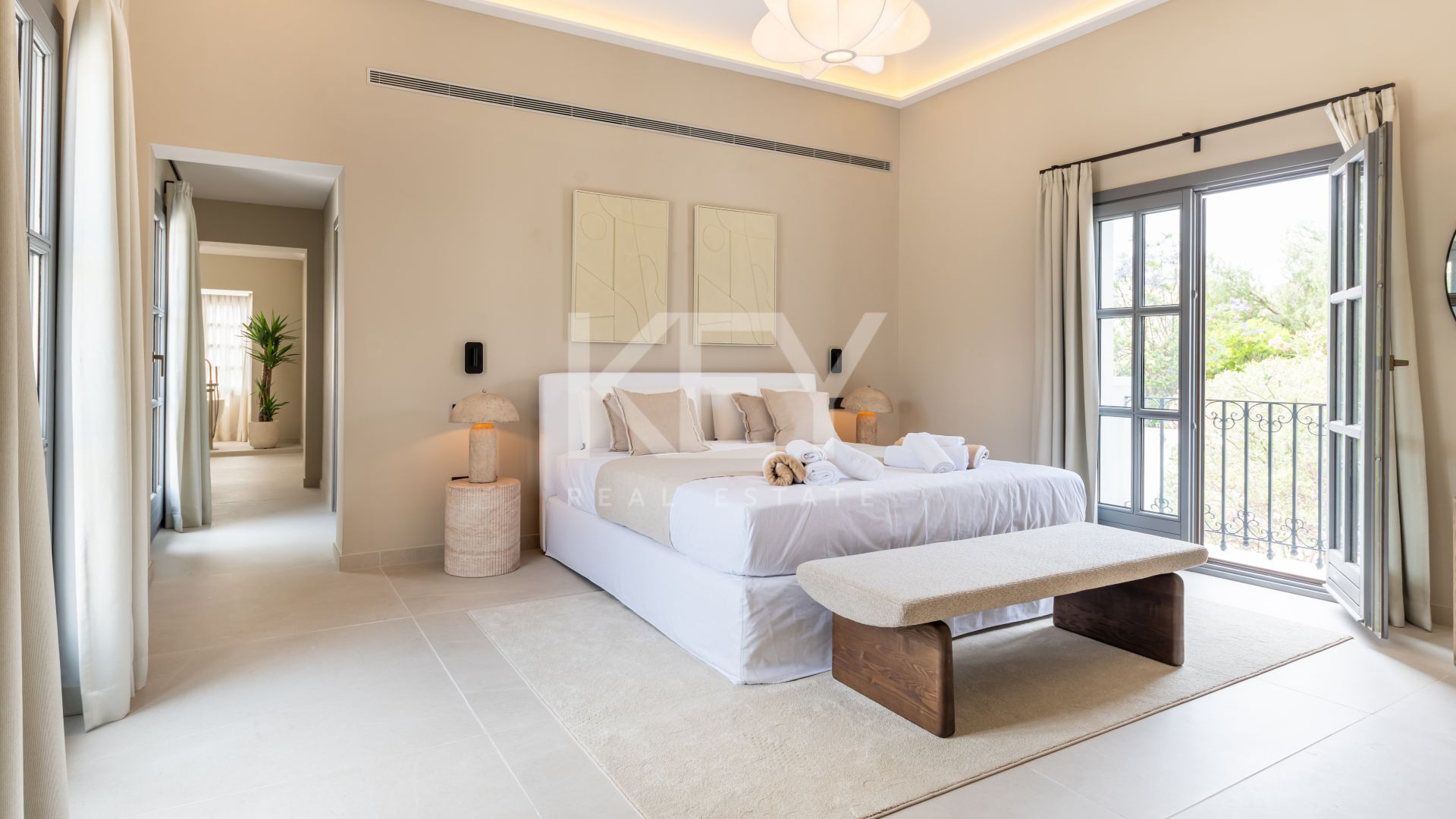 Эта изысканная вилла, расположенная всего в 400 метрах от гольф-клуба Atalaya, сочетает в себе классический андалузский шарм и современную элегантность. Окруженная взрослыми деревьями и красивыми ландшафтными садами, она дарит ощущение умиротворения, которое усиливается благодаря частному бассейну и просторным открытым площадкам, предназначенным как для отдыха, так и для развлечений.