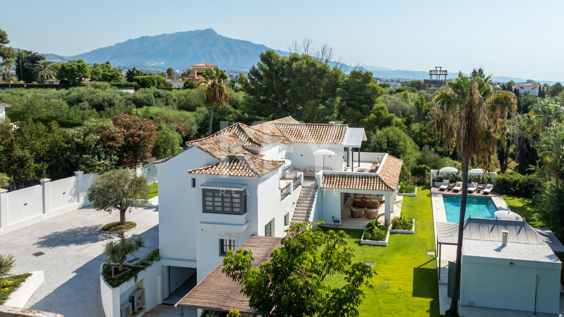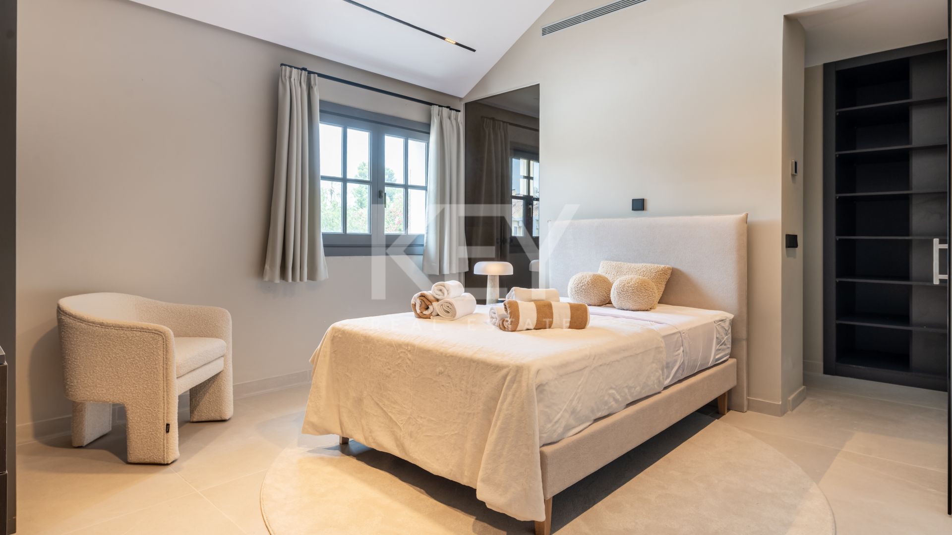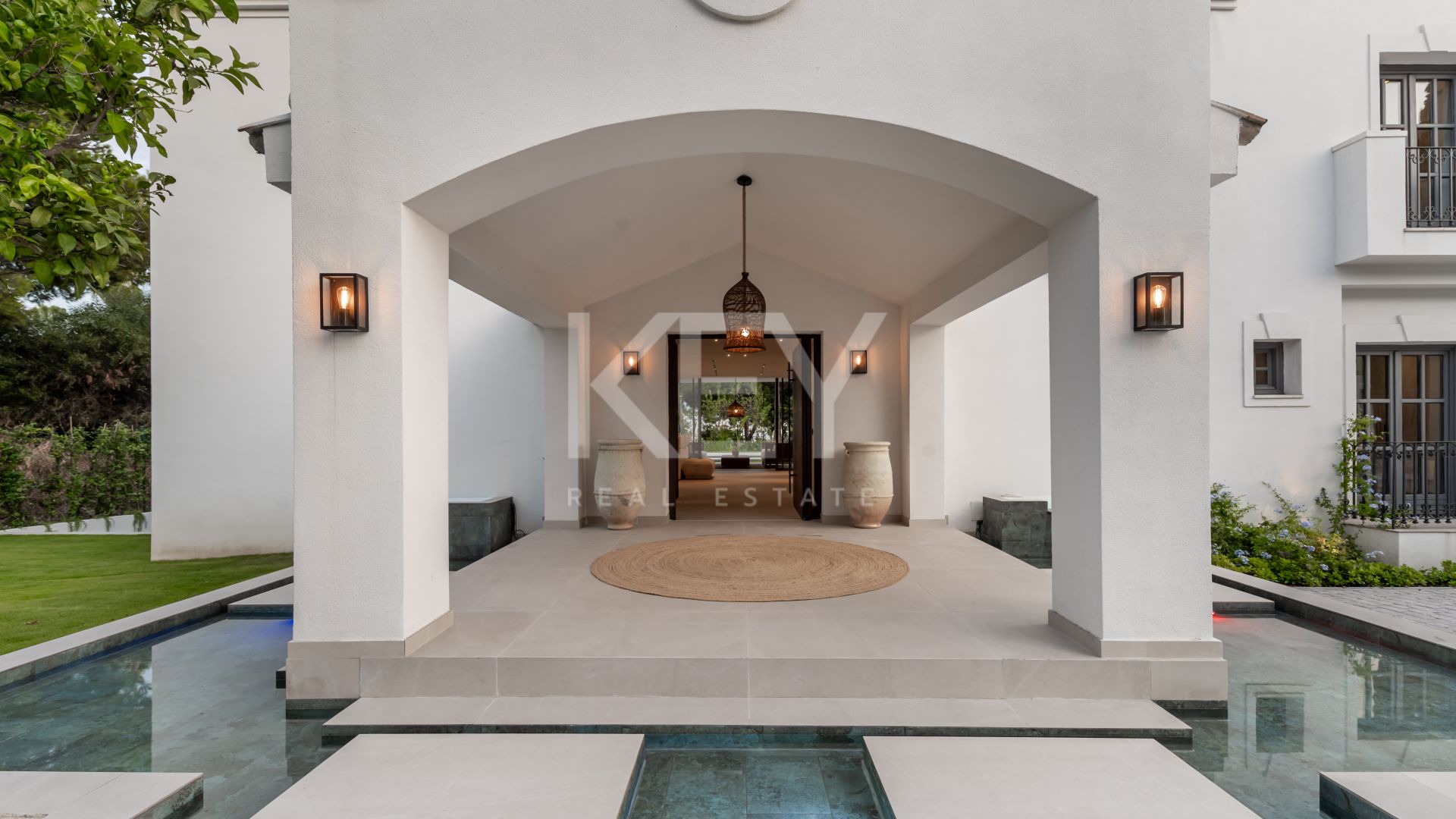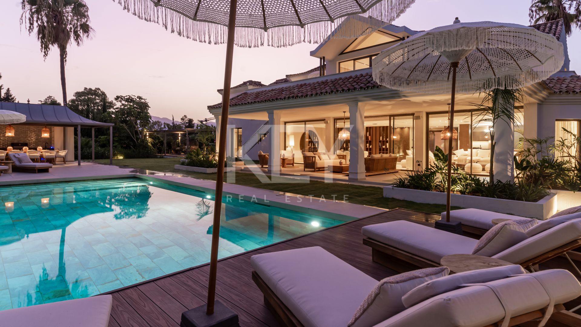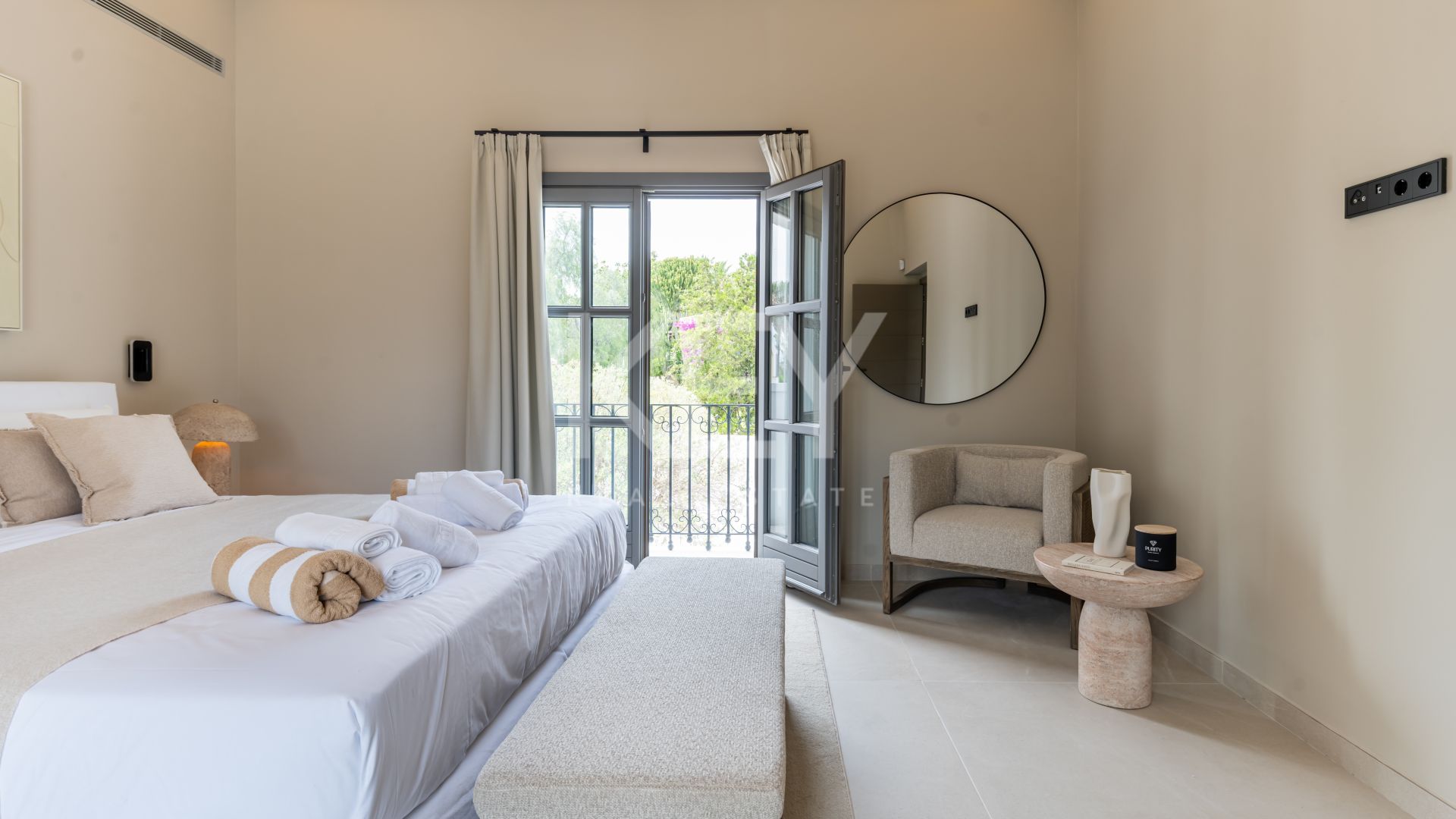 Эта изысканная вилла, расположенная всего в 400 метрах от гольф-клуба Atalaya, сочетает в себе классический андалузский шарм и современную элегантность. Окруженная взрослыми деревьями и красивыми ландшафтными садами, она дарит ощущение умиротворения, которое усиливается благодаря частному бассейну и просторным открытым площадкам, предназначенным как для отдыха, так и для развлечений.