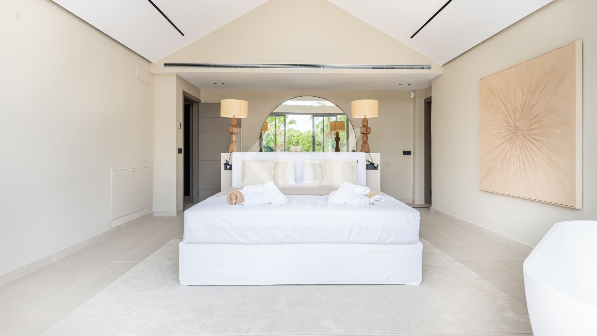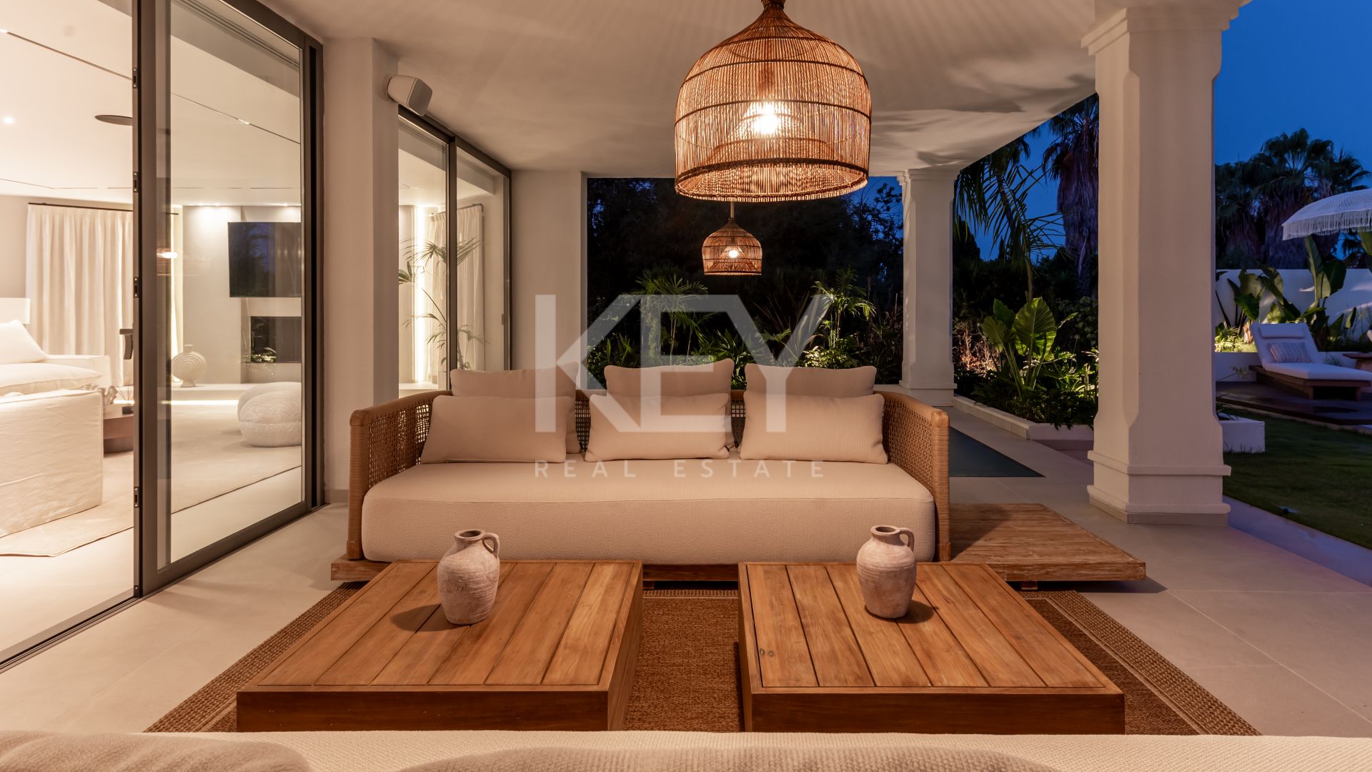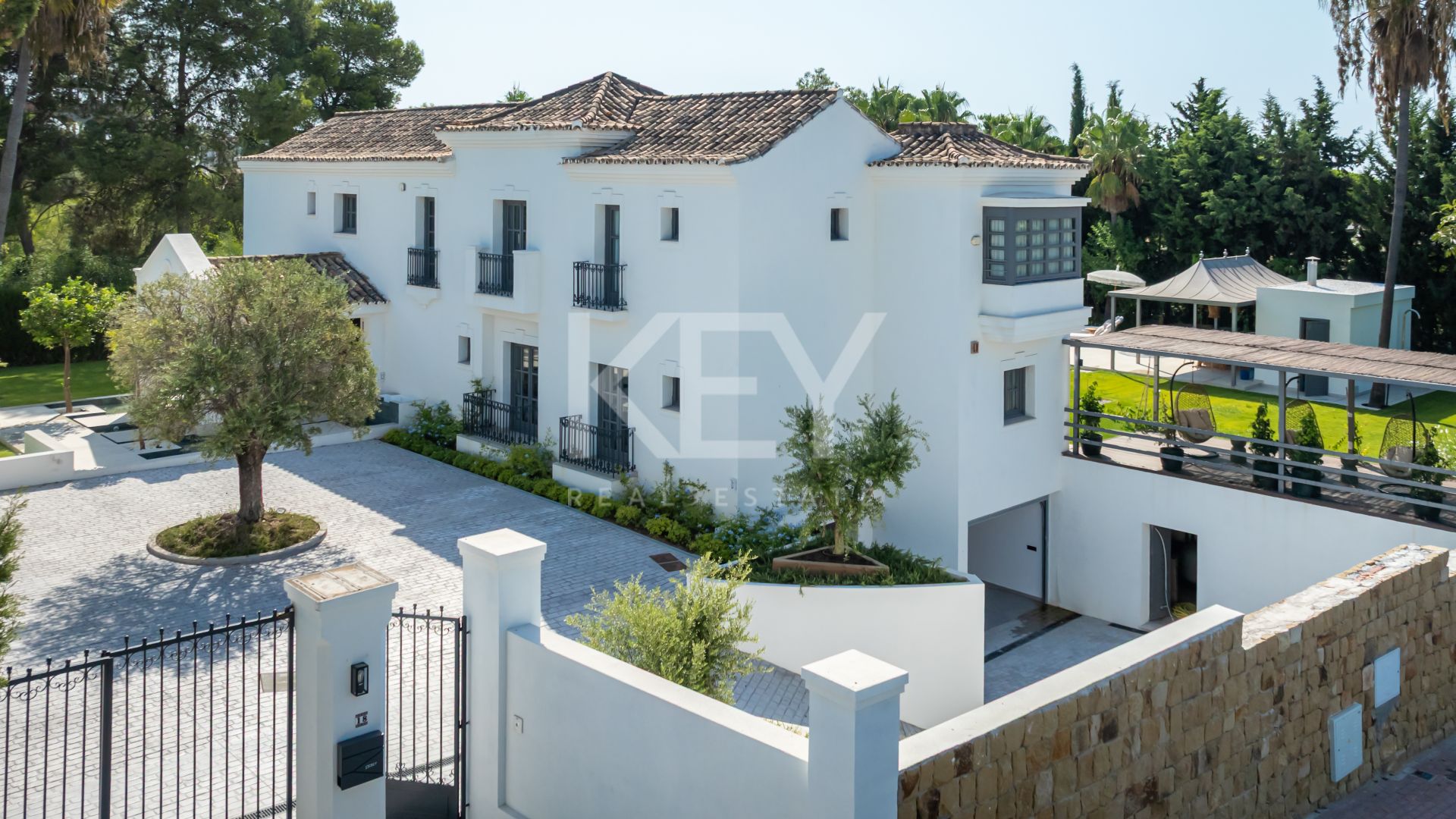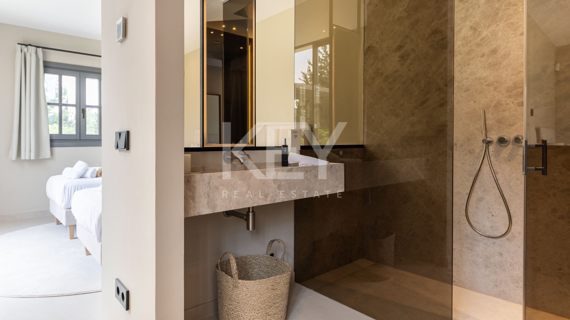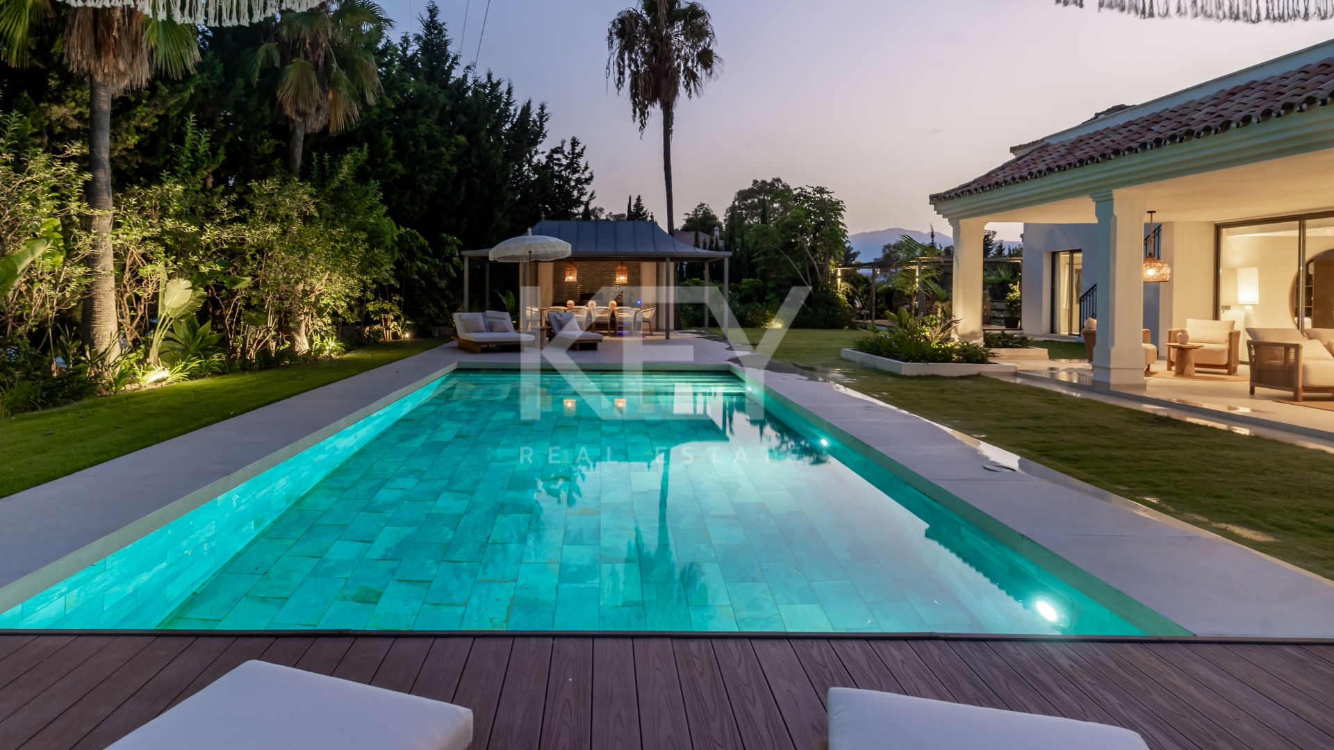 Эта изысканная вилла, расположенная всего в 400 метрах от гольф-клуба Atalaya, сочетает в себе классический андалузский шарм и современную элегантность. Окруженная взрослыми деревьями и красивыми ландшафтными садами, она дарит ощущение умиротворения, которое усиливается благодаря частному бассейну и просторным открытым площадкам, предназначенным как для отдыха, так и для развлечений.
