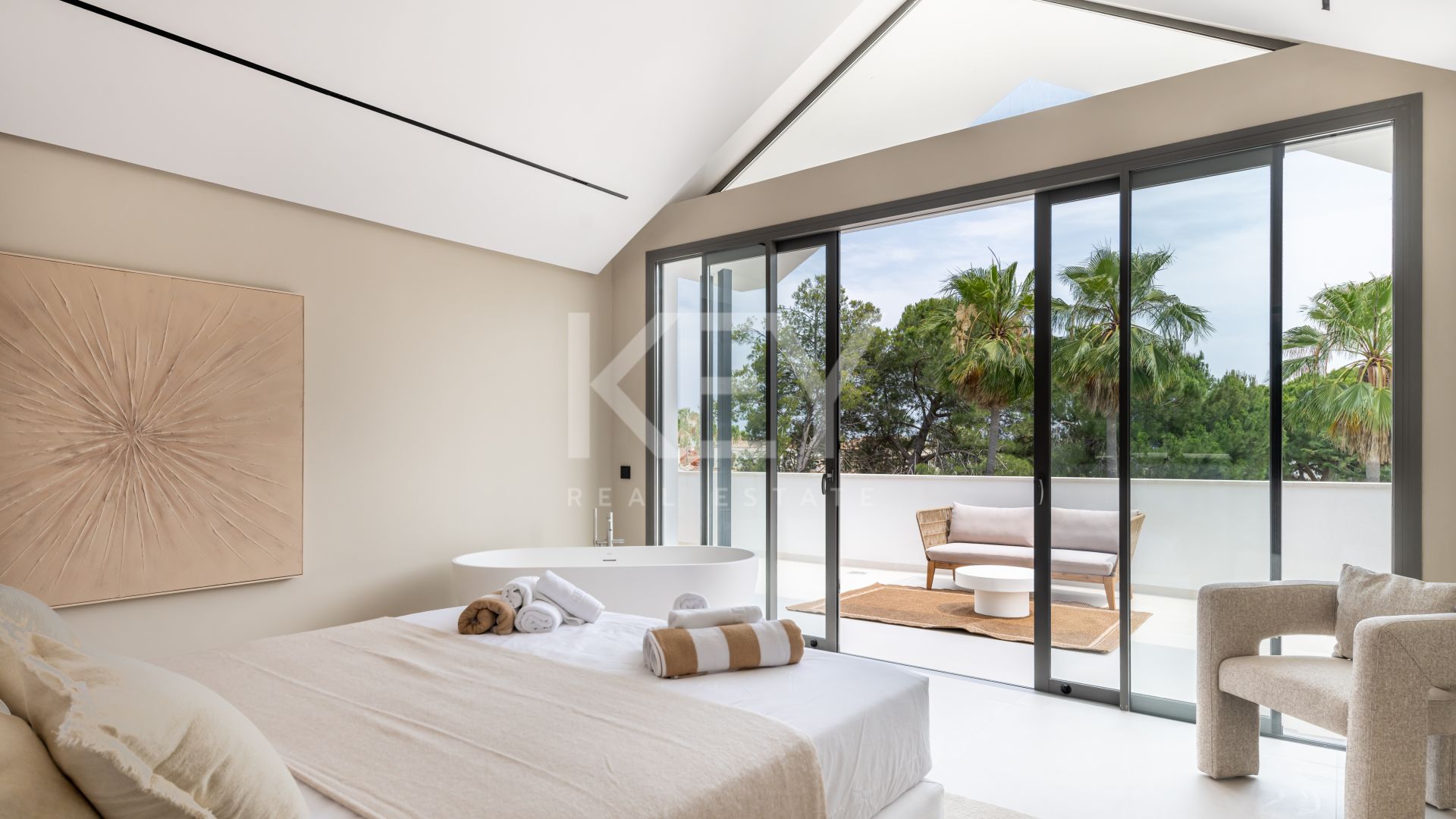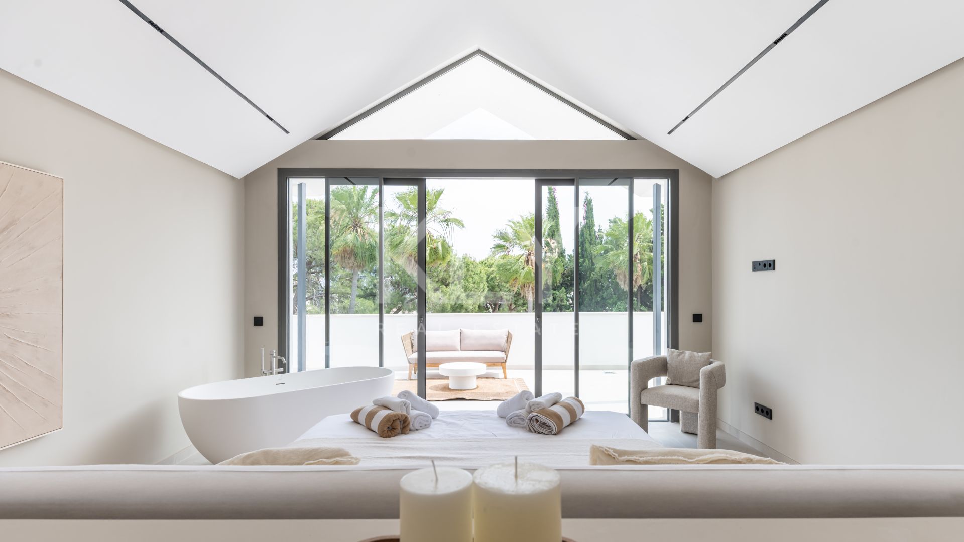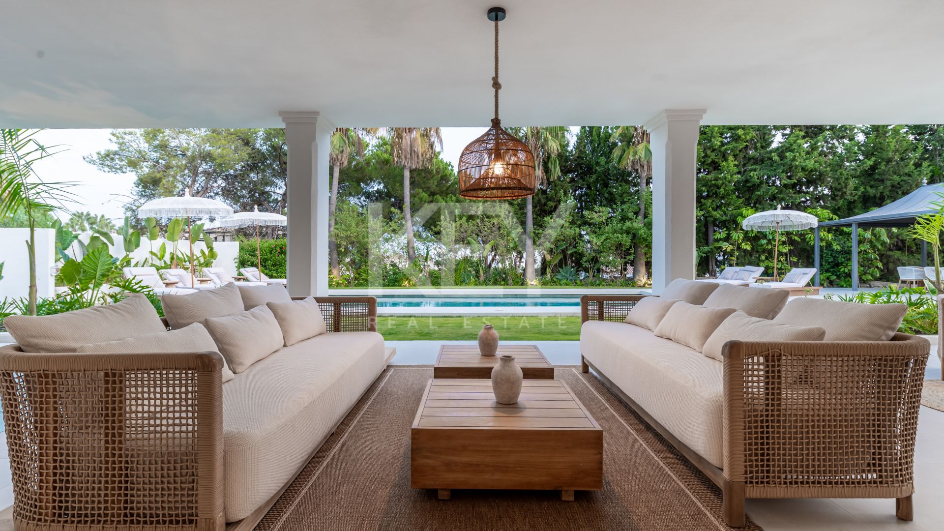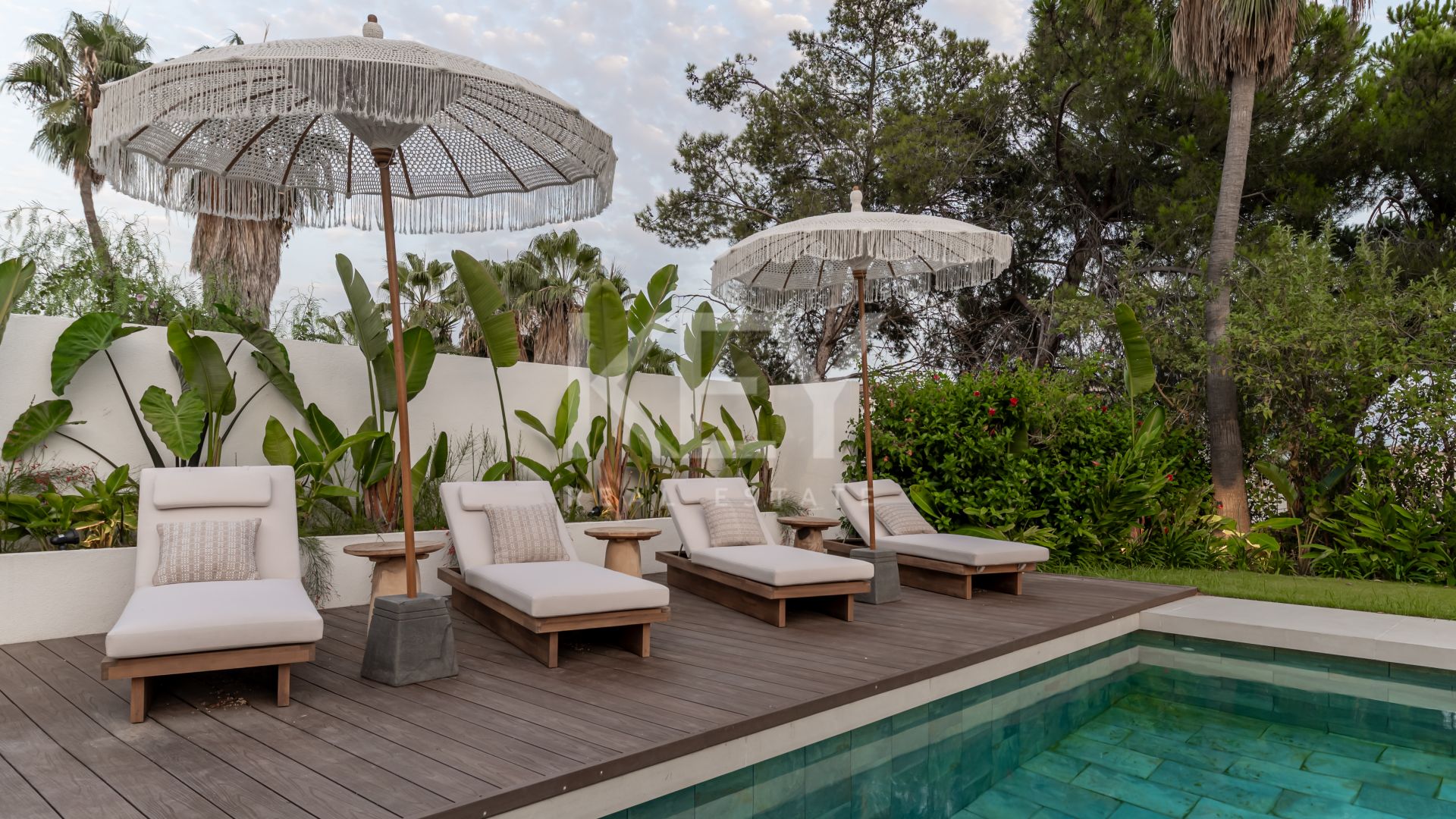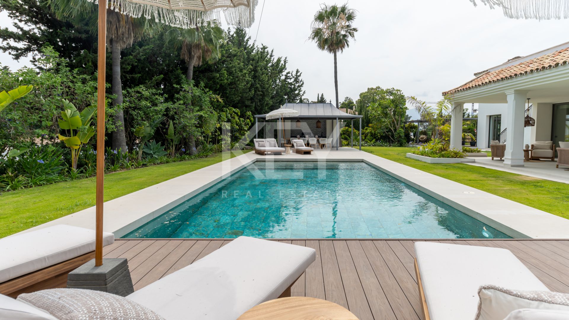 Эта изысканная вилла, расположенная всего в 400 метрах от гольф-клуба Atalaya, сочетает в себе классический андалузский шарм и современную элегантность. Окруженная взрослыми деревьями и красивыми ландшафтными садами, она дарит ощущение умиротворения, которое усиливается благодаря частному бассейну и просторным открытым площадкам, предназначенным как для отдыха, так и для развлечений.