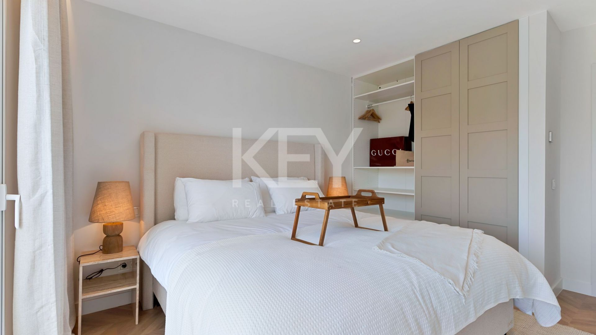 На верхнем этаже расположены скошенные потолки и дополнительная терраса с частичным видом на море. В квартире две многофункциональные комнаты, которые идеально подойдут как спальни или рабочие места, а также современная ванная комната с душевой кабиной.