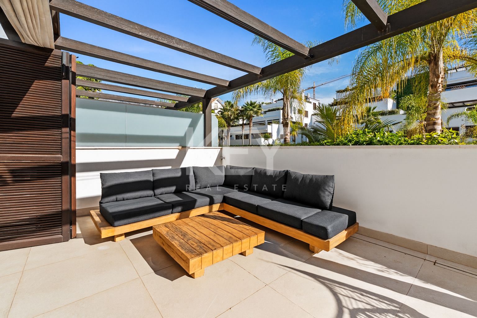 Дуплекс в аренду в Lomas del Rey, Золотая Миля, с 2 спальни, 2 bанных, 1 туалет, объкет был построен в 2020 функции бассейн (общий), гараж (Частный) и сад (общий).согласно объекту размеры 60 m² терраса.