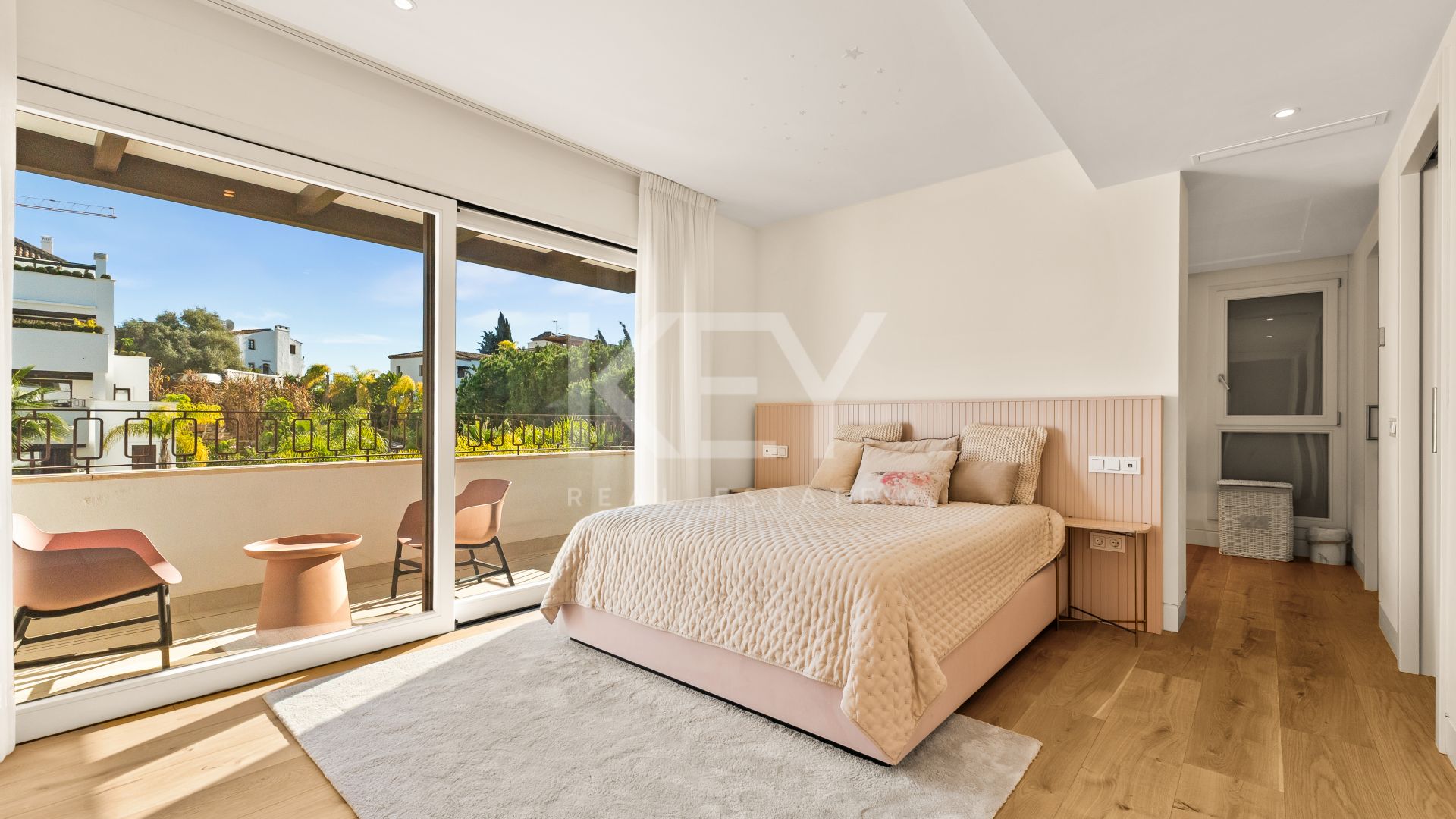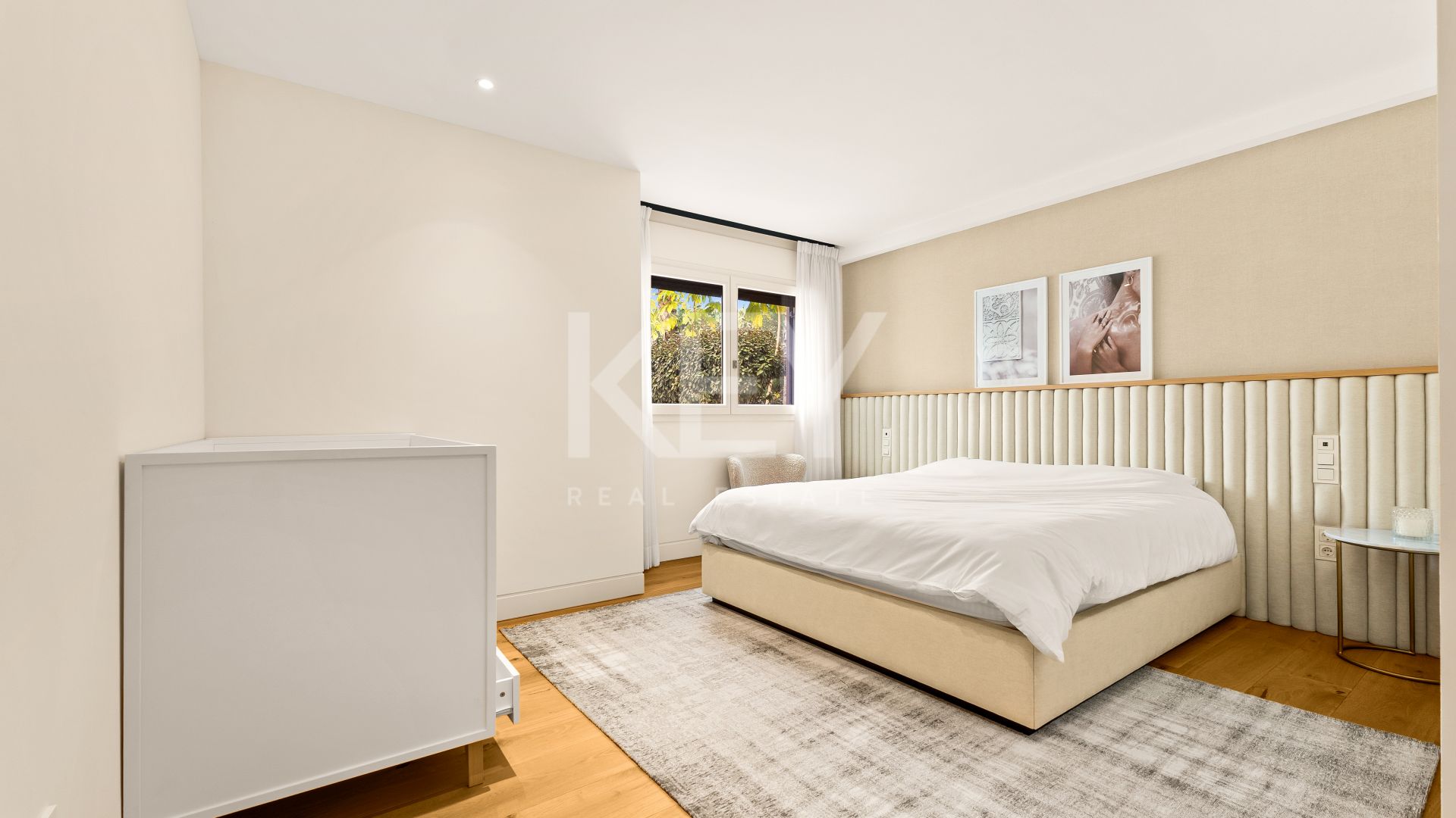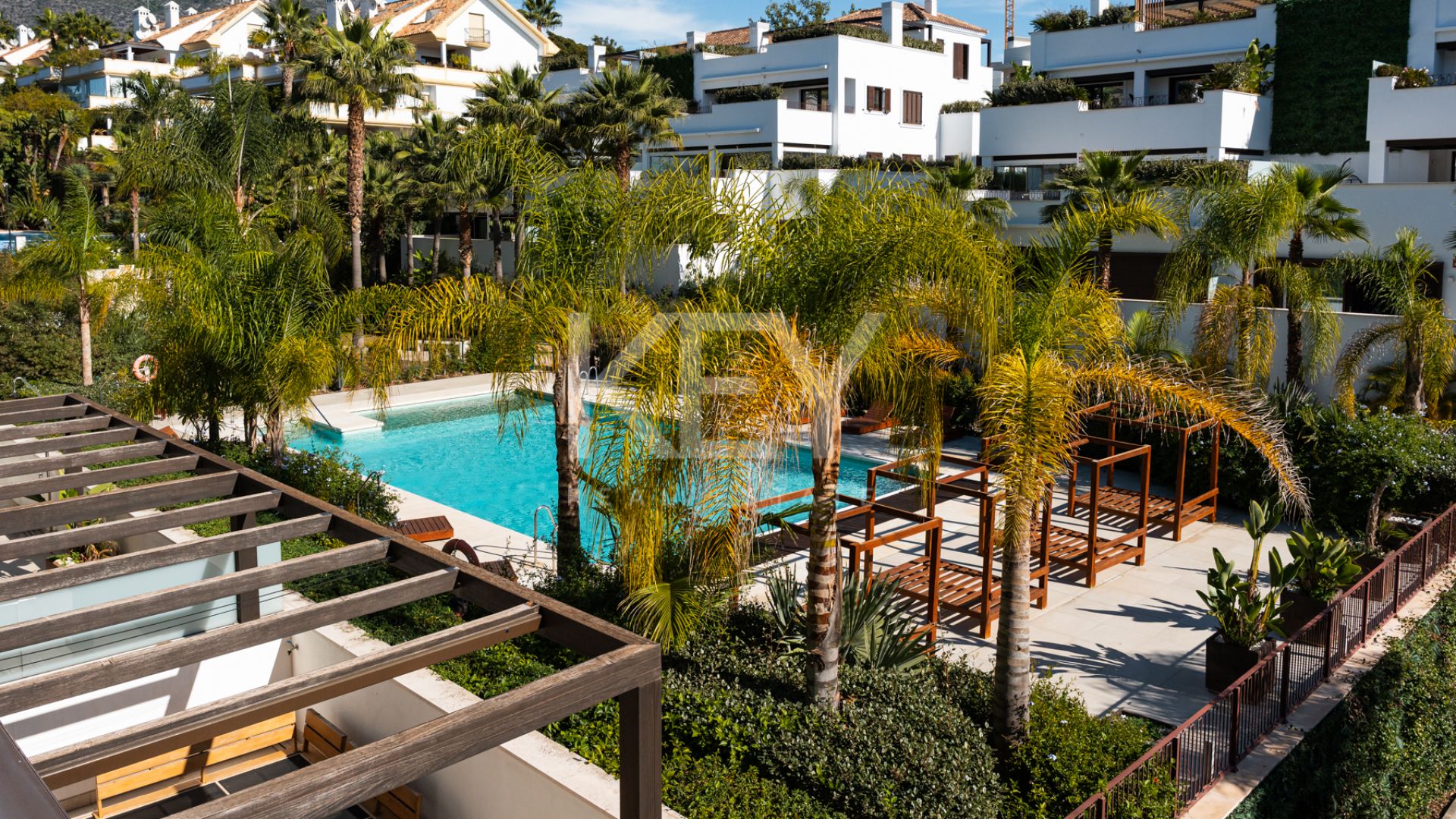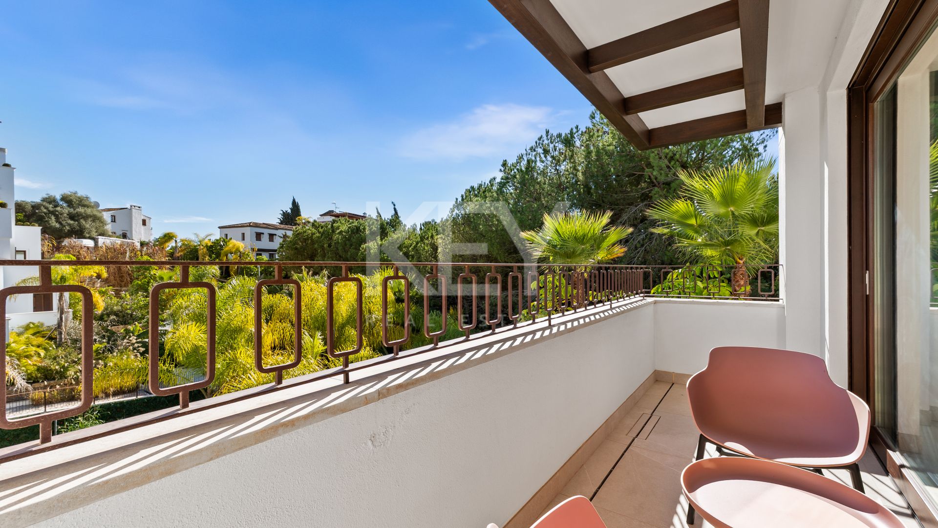 этот объект следующие характеристики: Полностью оборудованная кухня, Рядом с магазинами, близко к городу, Рядом со школой, Камеры наблюдения, Интернет – оптоволокно, Двойные стеклопакеты, Гостевой туалет, Бассейн с подогревом воды, Интернет – Wi-Fi, Кондиционирование, Вид на бассейн, Центральное отопление, Рядом море/пляж, Возле поля для гольфа, Стеклянные двери, Балкон, Полная меблировка и Отличное состояние.