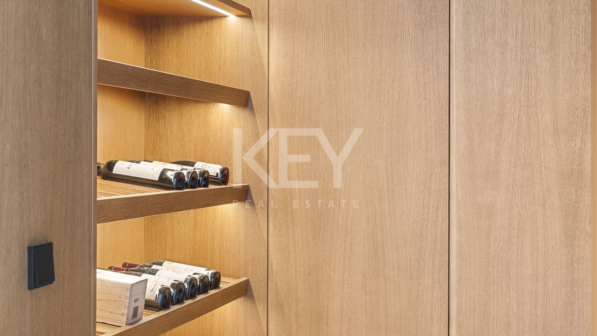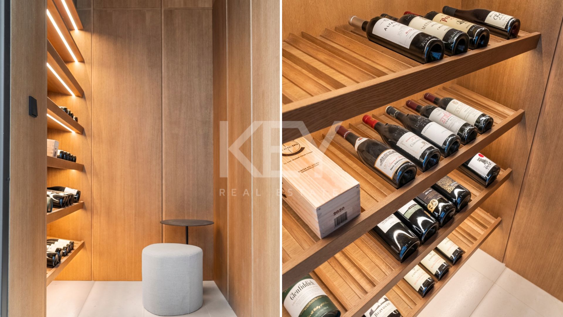 Интерьеры продуманы до мелочей и объединяют строгие архитектурные линии с качественными материалами и функциональной планировкой. Среди особенностей — частный винный погреб, полностью оборудованная гардеробная, скрытая прачечная и отдельная комната с гольф-симулятором. Это пространство для отдыха при необходимости легко преобразуется в домашний кинотеатр, тренажёрный зал или игровую комнату, что добавляет гибкости и отвечает ожиданиям покупателей элитной недвижимости.