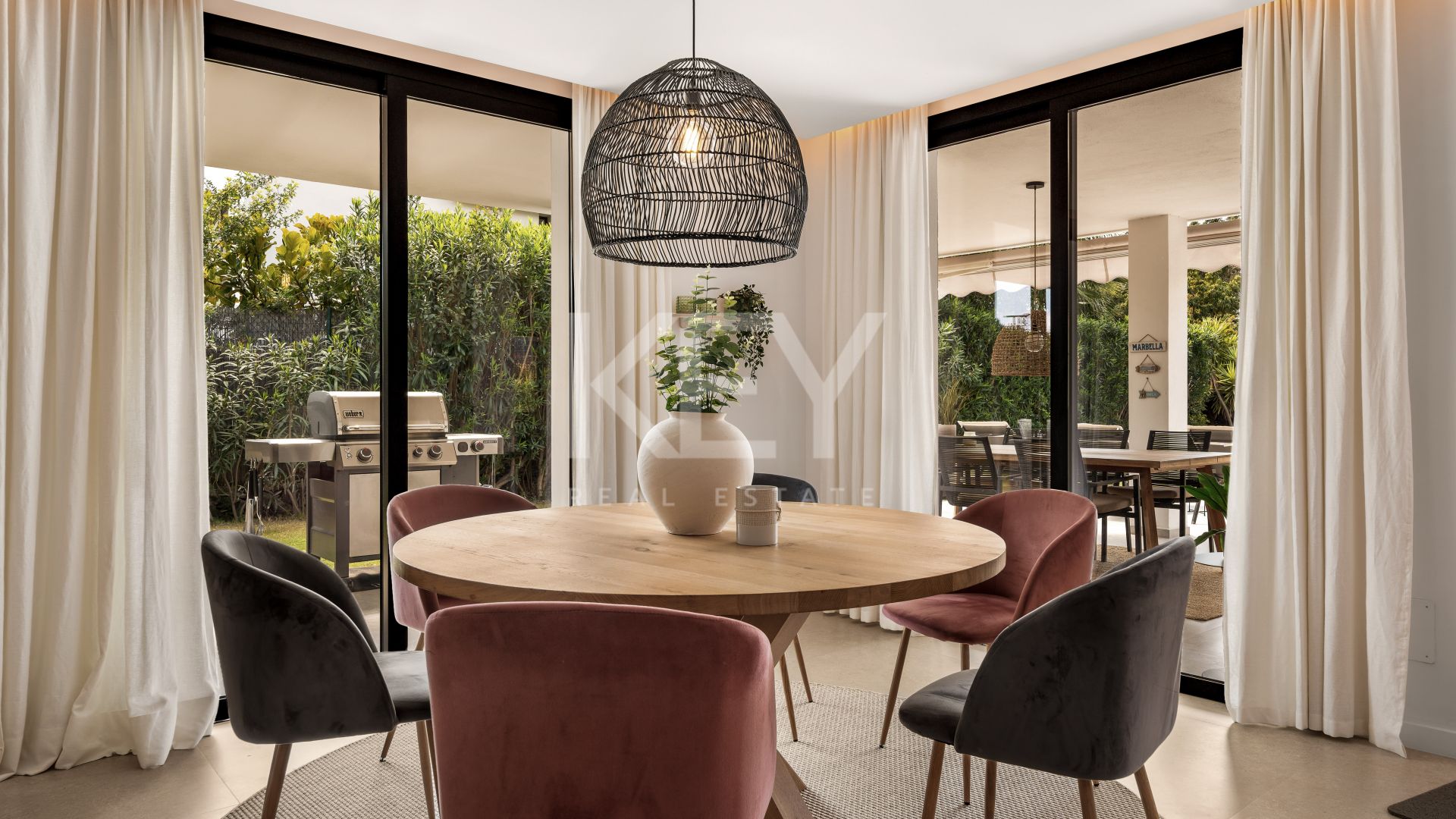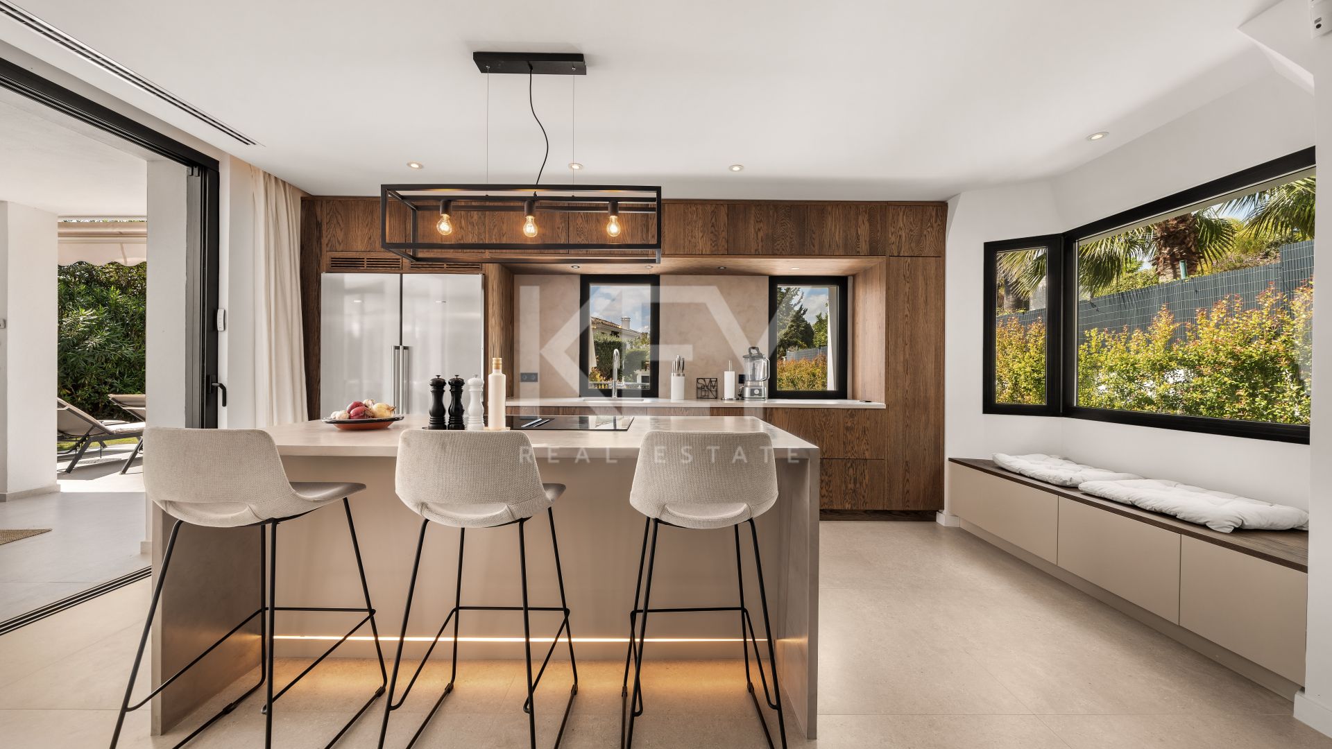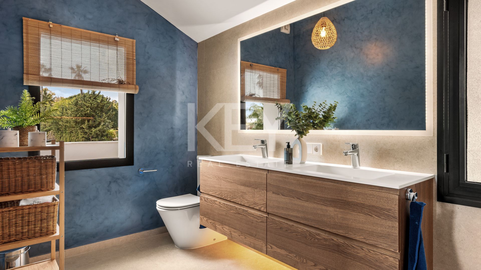 Расположенная в одном из самых востребованных районов Нуэва Андалусия, в известной Гольфовой долине Марбельи, эта полностью обновлённая вилла предлагает современный взгляд на средиземноморский образ жизни. Чистые архитектурные линии, обилие естественного света и плавное соединение внутренних и внешних пространств создают гармоничную атмосферу. Этот дом соответствует ожиданиям покупателей, ищущих современную виллу рядом с полями для гольфа и в непосредственной близости от Пуэрто Банус.