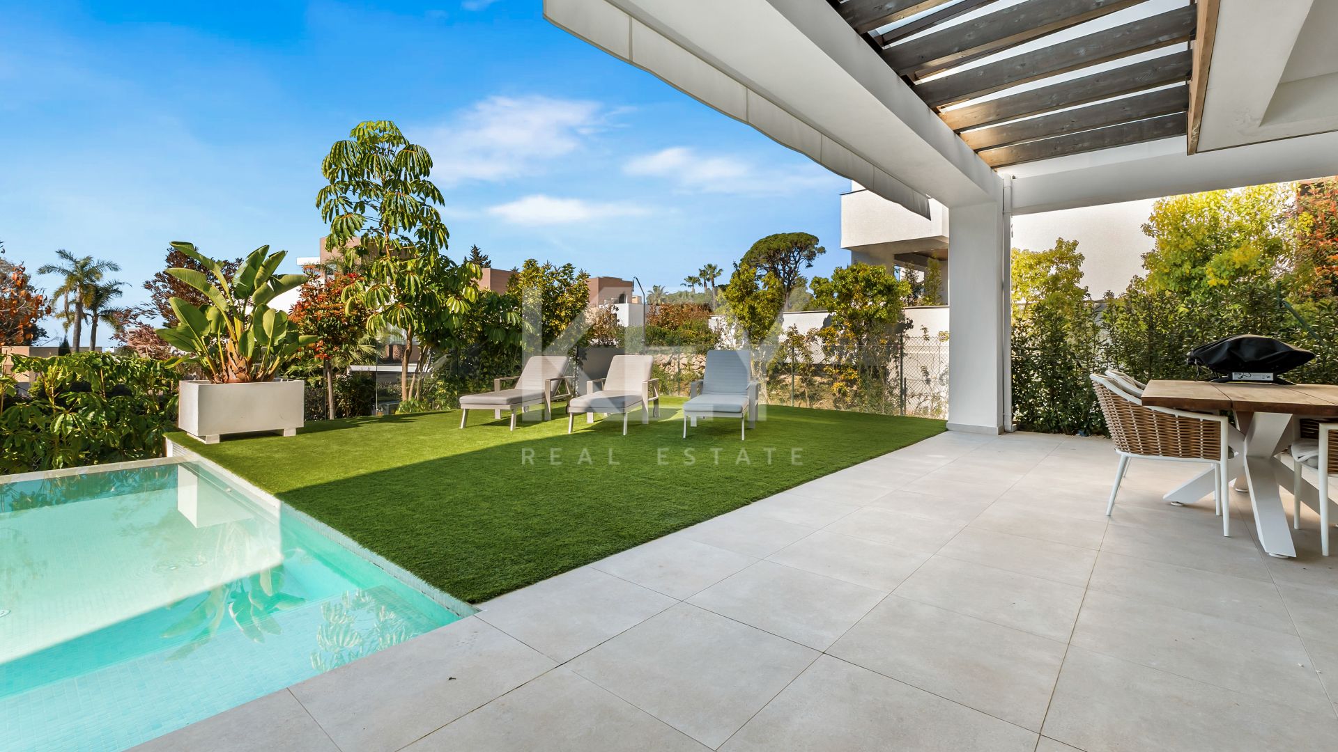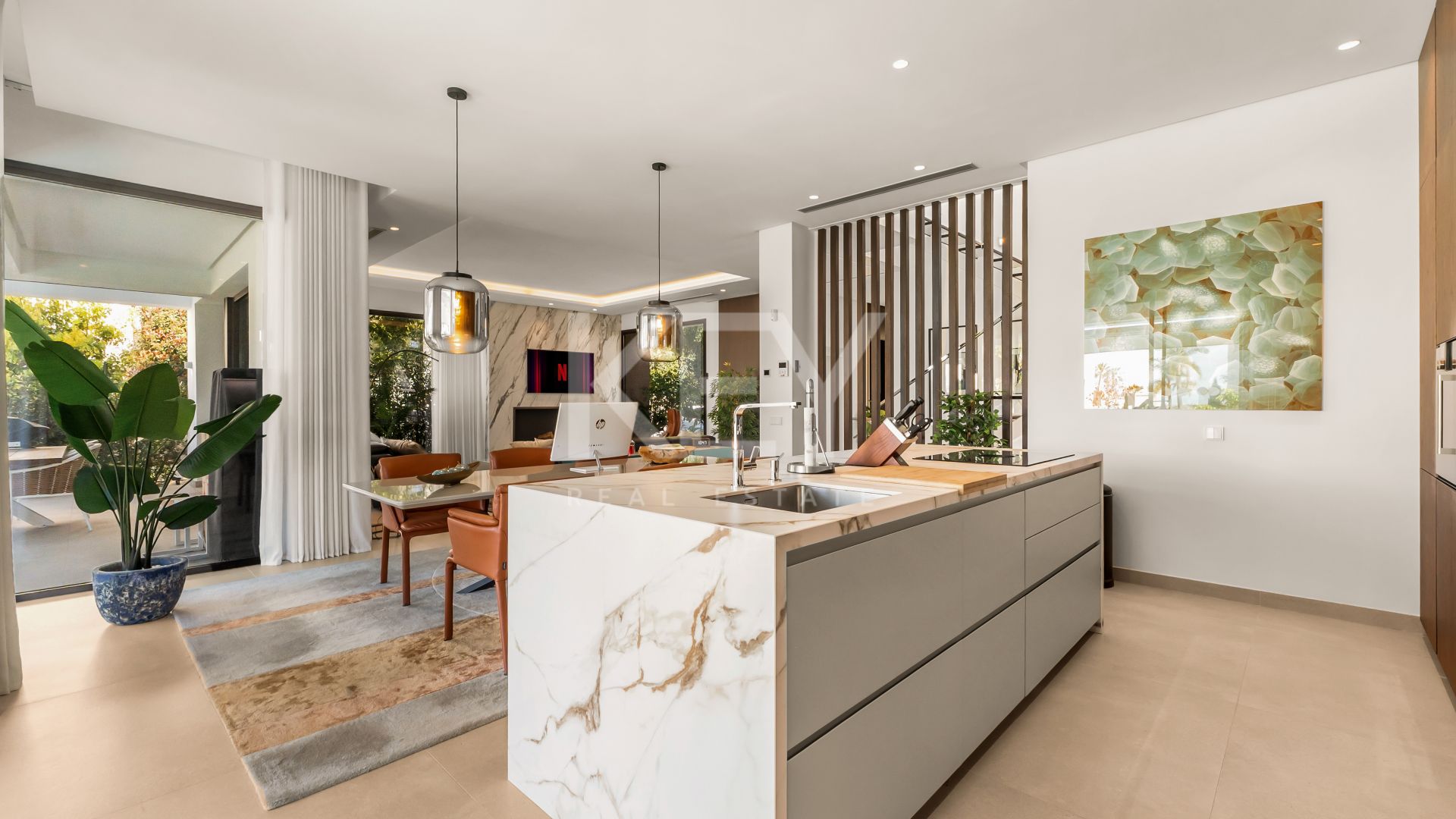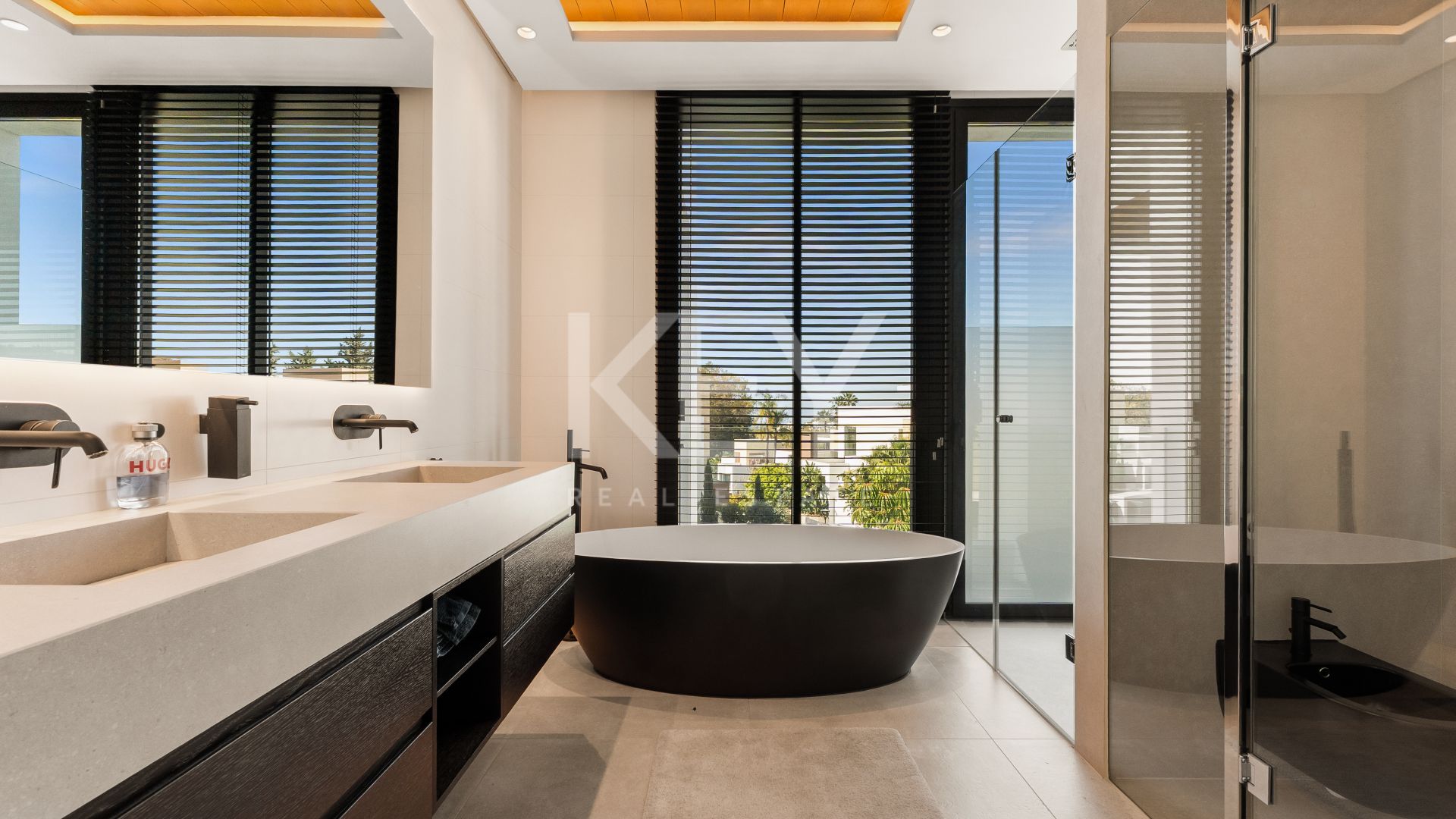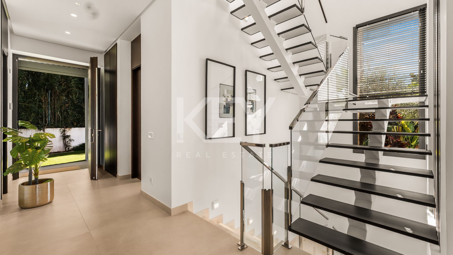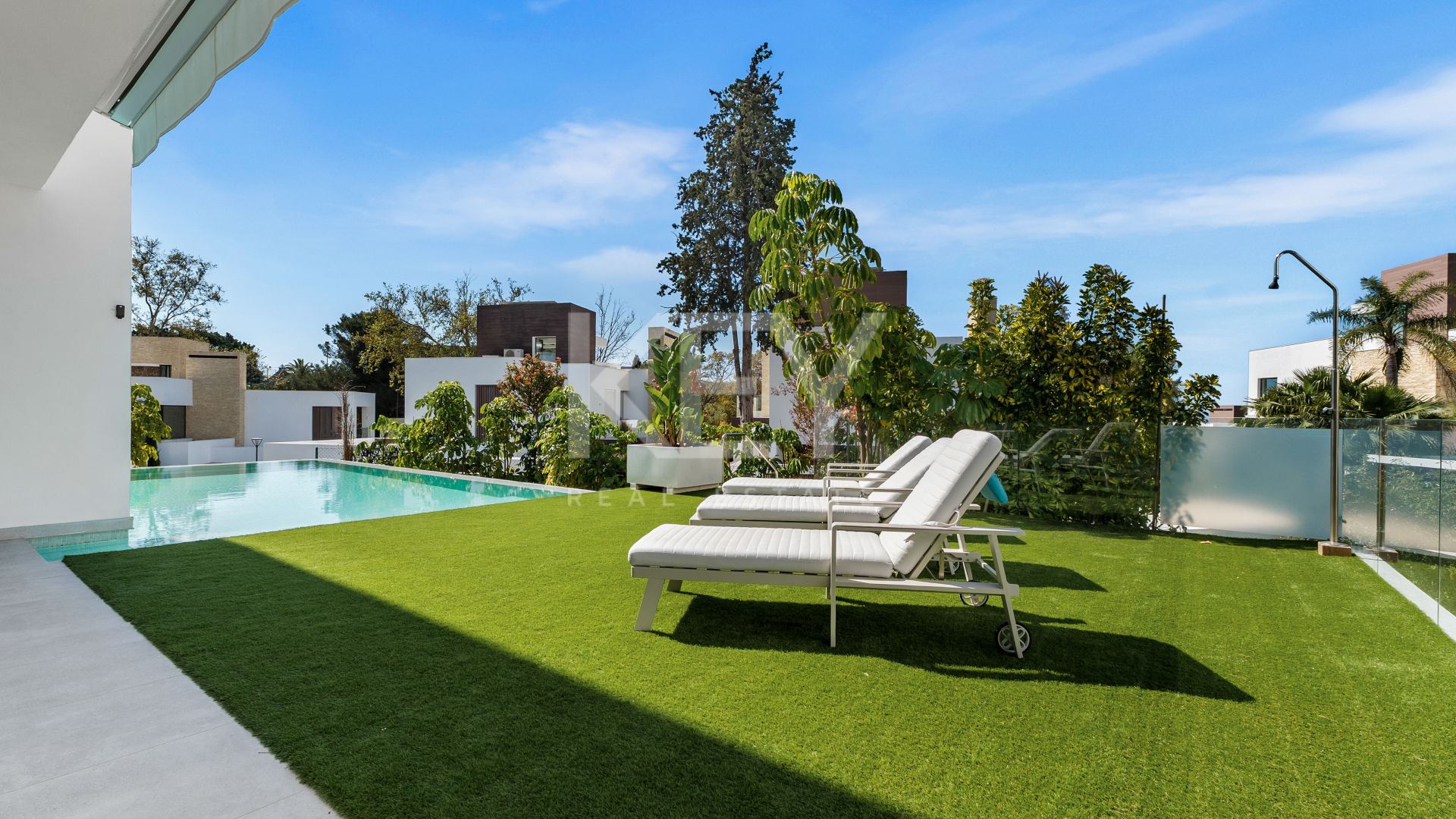 Внешние зоны также продуманы до мелочей: просторная терраса подходит для отдыха и обедов на свежем воздухе, а на крыше расположен солярий с летней кухней. Ландшафтный сад окружает частный бассейн, создавая комфортную атмосферу для отдыха в любое время года. Удобное расположение обеспечивает быстрый доступ к международным школам, гольф-полям, частным клиникам и центру Марбельи, а также к известной набережной, соединяющей Марбелью с Пуэрто-Банус, где сосредоточены рестораны, пляжные клубы и активная жизнь.