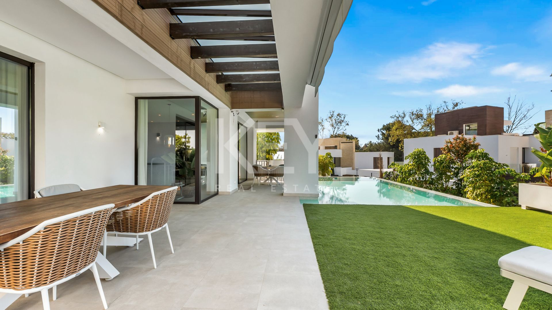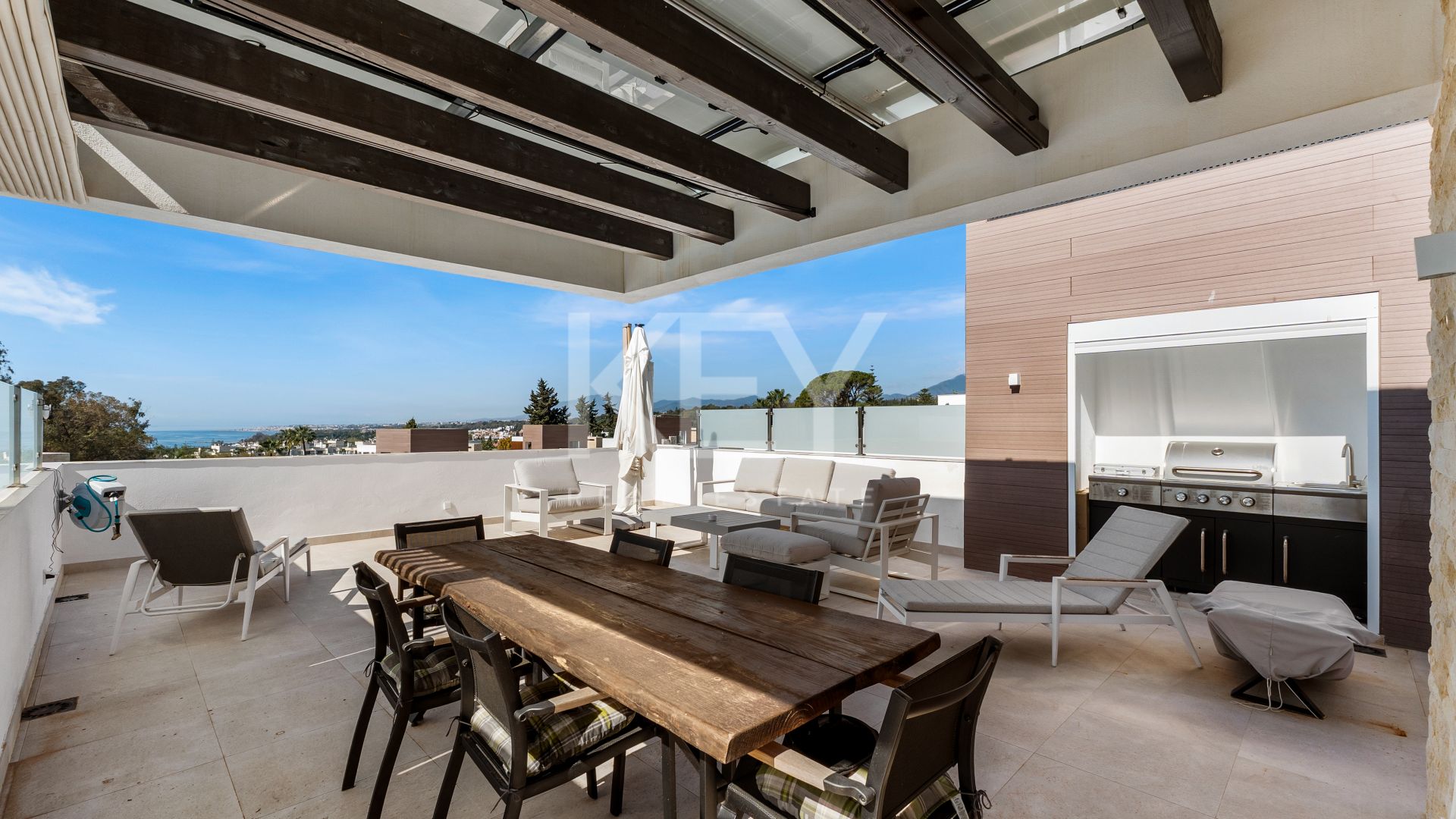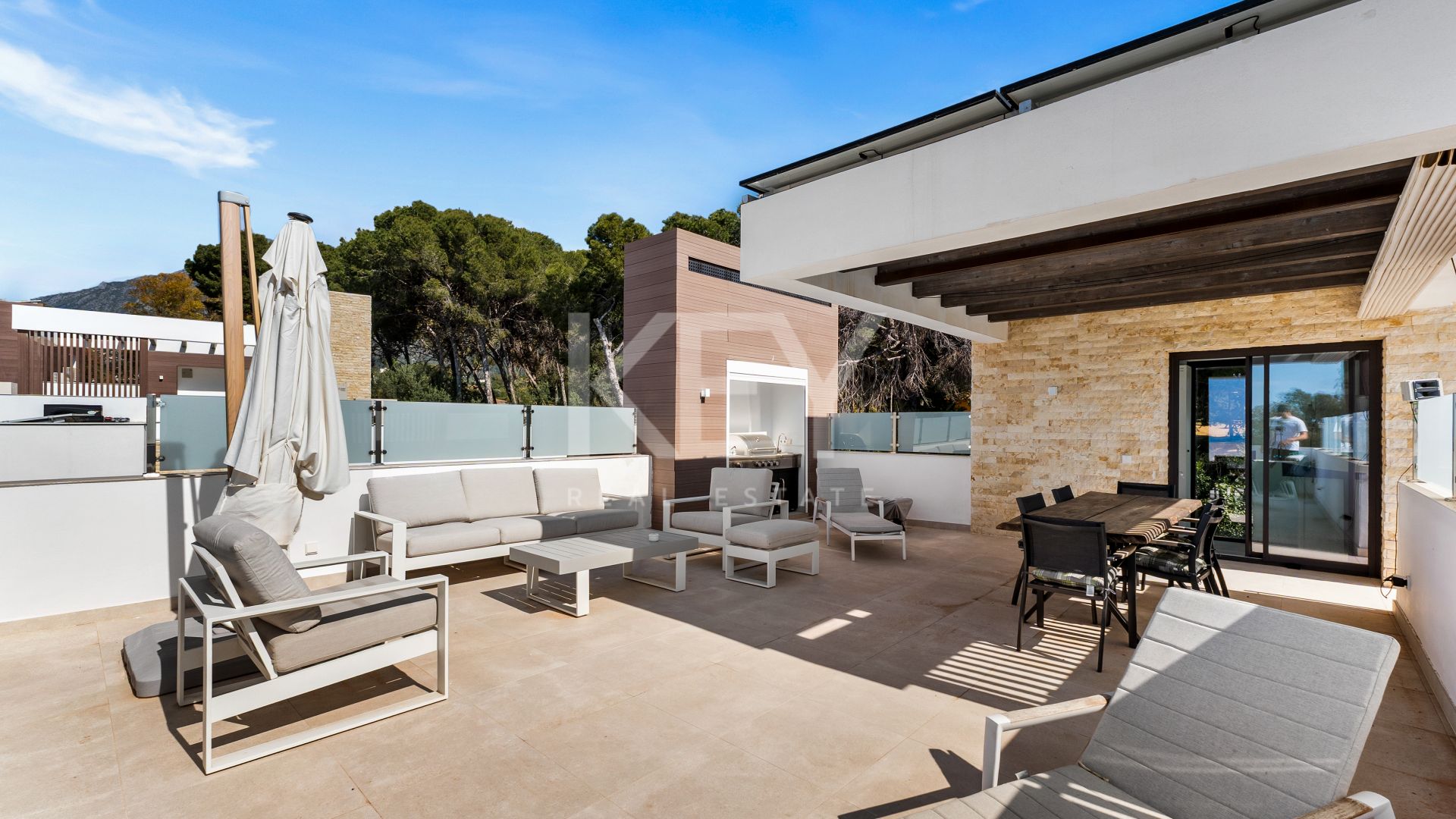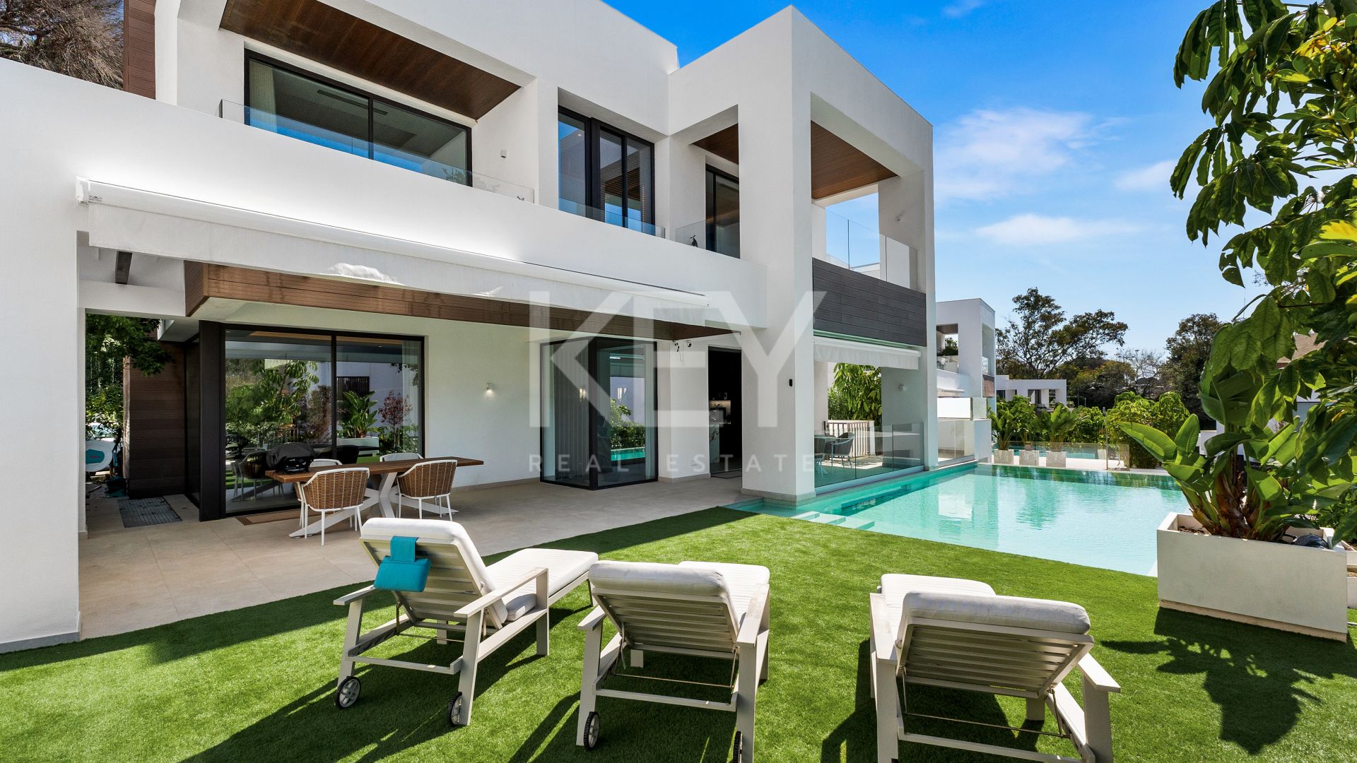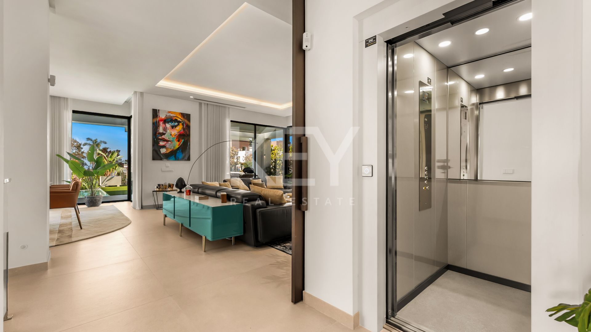 Внешние зоны также продуманы до мелочей: просторная терраса подходит для отдыха и обедов на свежем воздухе, а на крыше расположен солярий с летней кухней. Ландшафтный сад окружает частный бассейн, создавая комфортную атмосферу для отдыха в любое время года. Удобное расположение обеспечивает быстрый доступ к международным школам, гольф-полям, частным клиникам и центру Марбельи, а также к известной набережной, соединяющей Марбелью с Пуэрто-Банус, где сосредоточены рестораны, пляжные клубы и активная жизнь.
