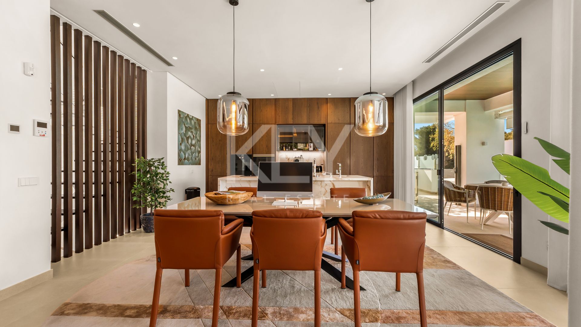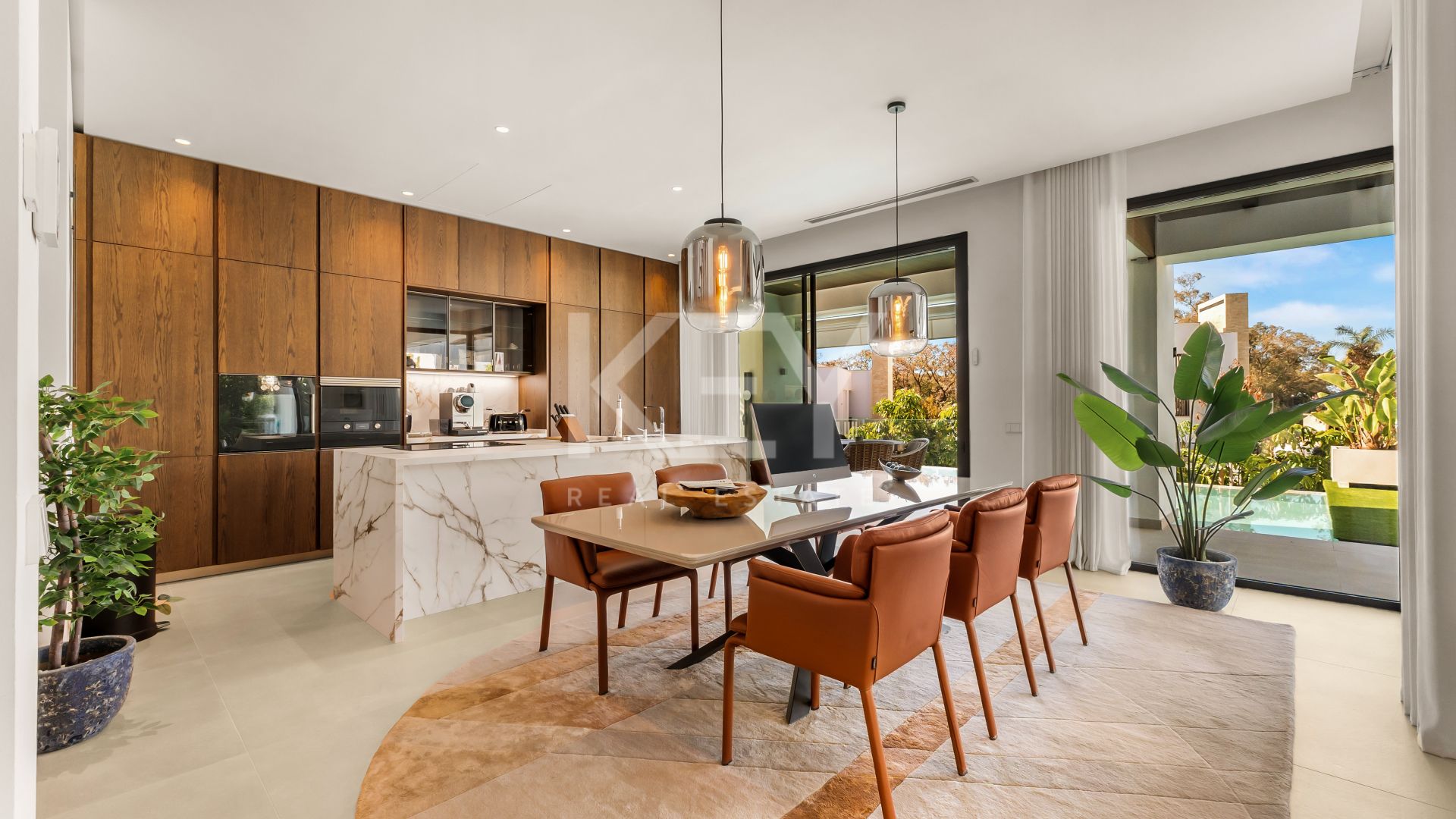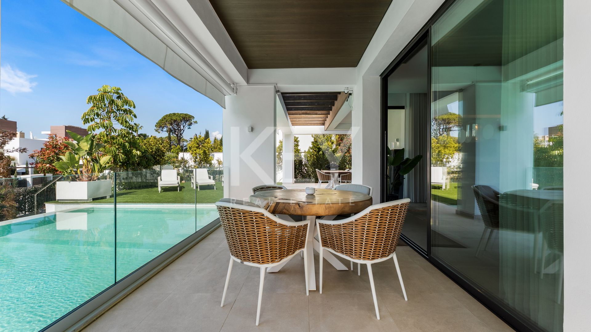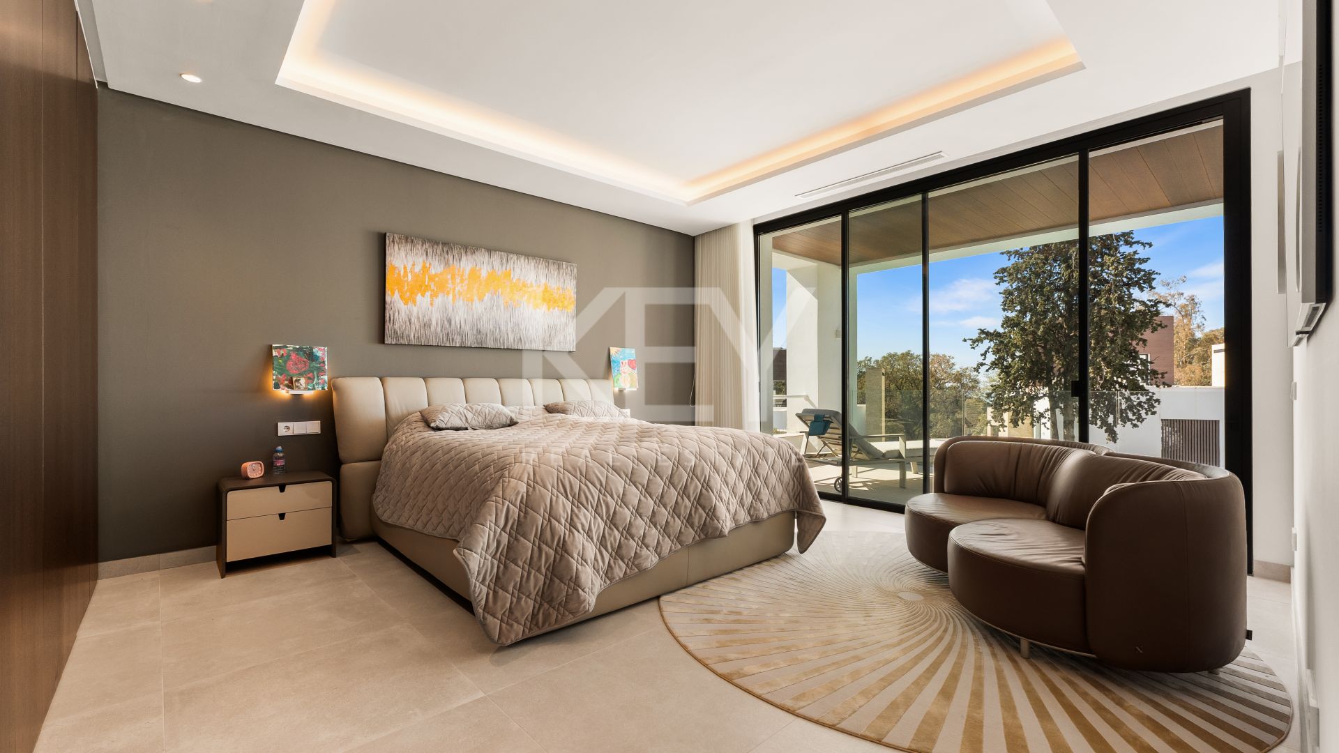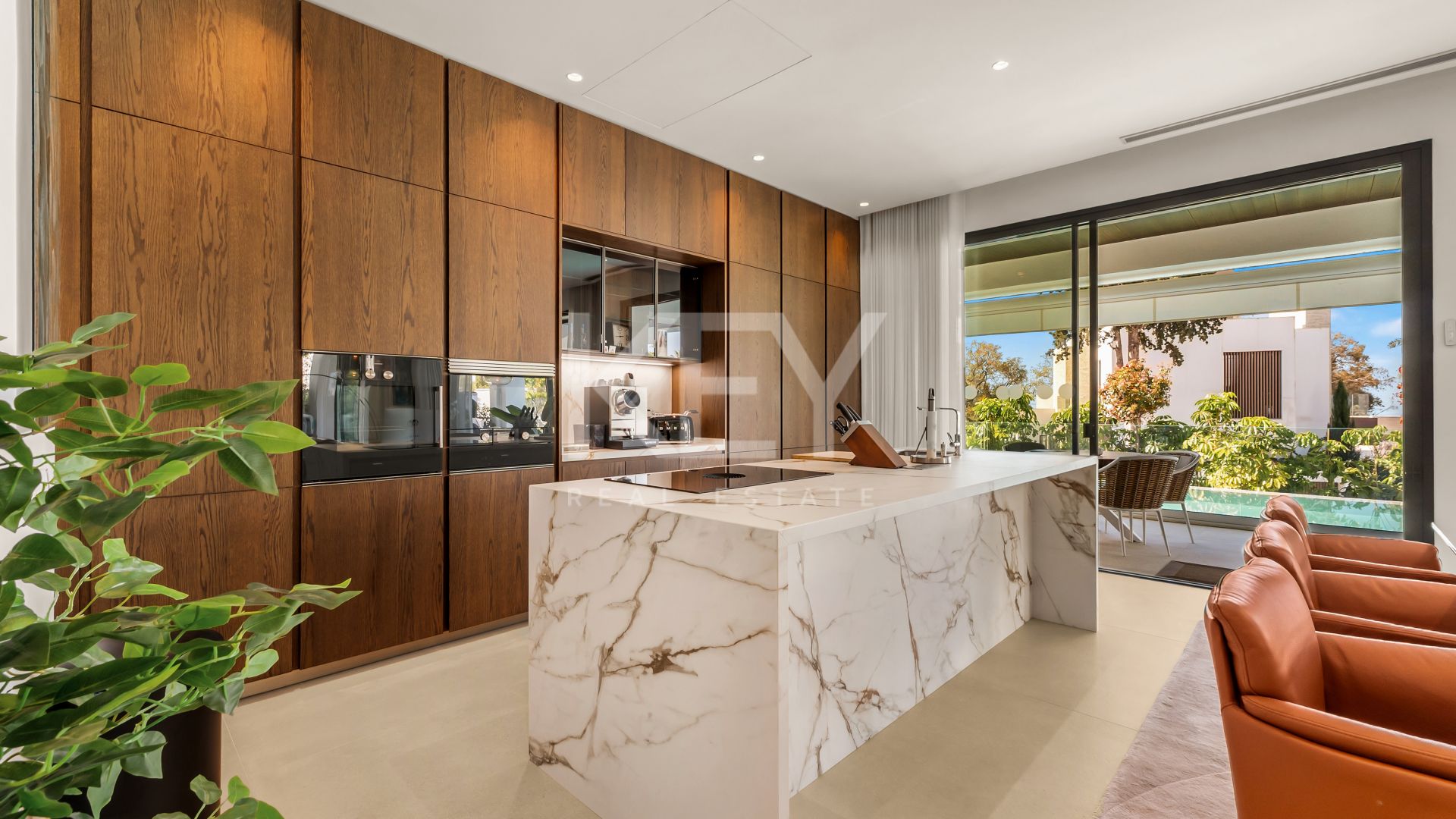 Внешние зоны также продуманы до мелочей: просторная терраса подходит для отдыха и обедов на свежем воздухе, а на крыше расположен солярий с летней кухней. Ландшафтный сад окружает частный бассейн, создавая комфортную атмосферу для отдыха в любое время года. Удобное расположение обеспечивает быстрый доступ к международным школам, гольф-полям, частным клиникам и центру Марбельи, а также к известной набережной, соединяющей Марбелью с Пуэрто-Банус, где сосредоточены рестораны, пляжные клубы и активная жизнь.
