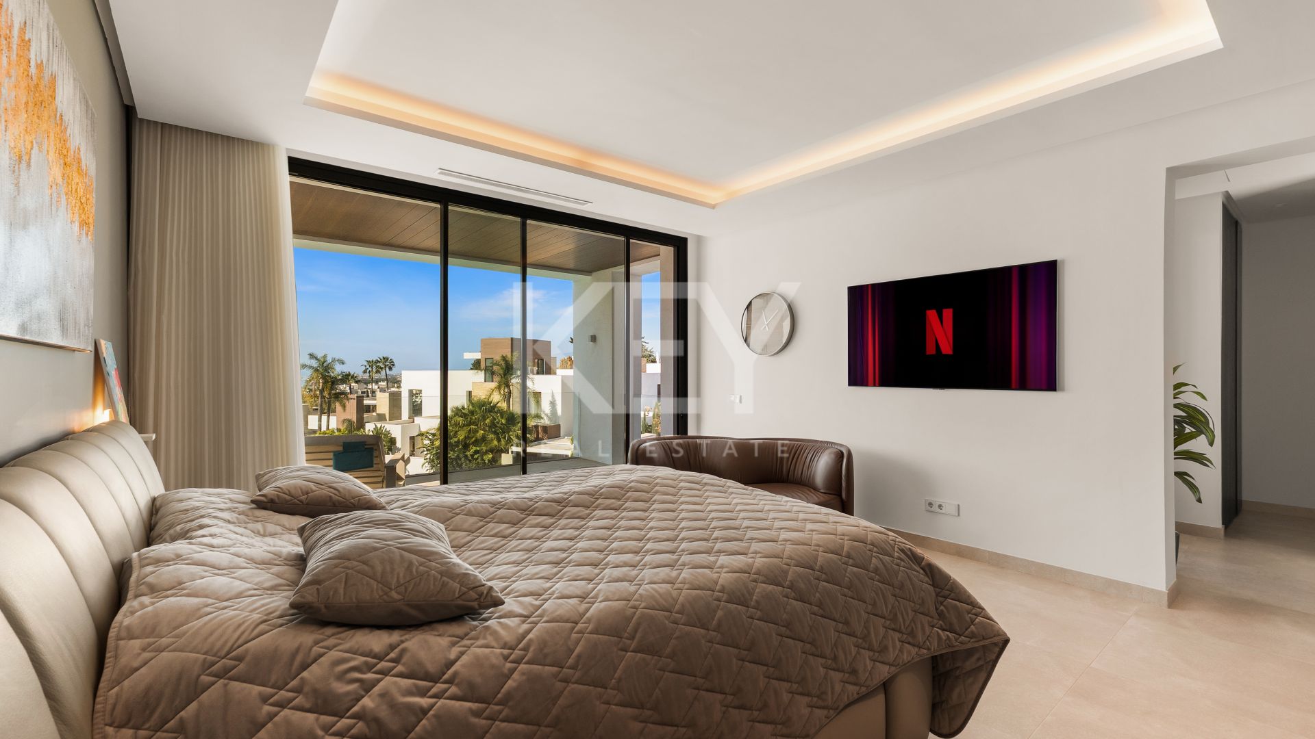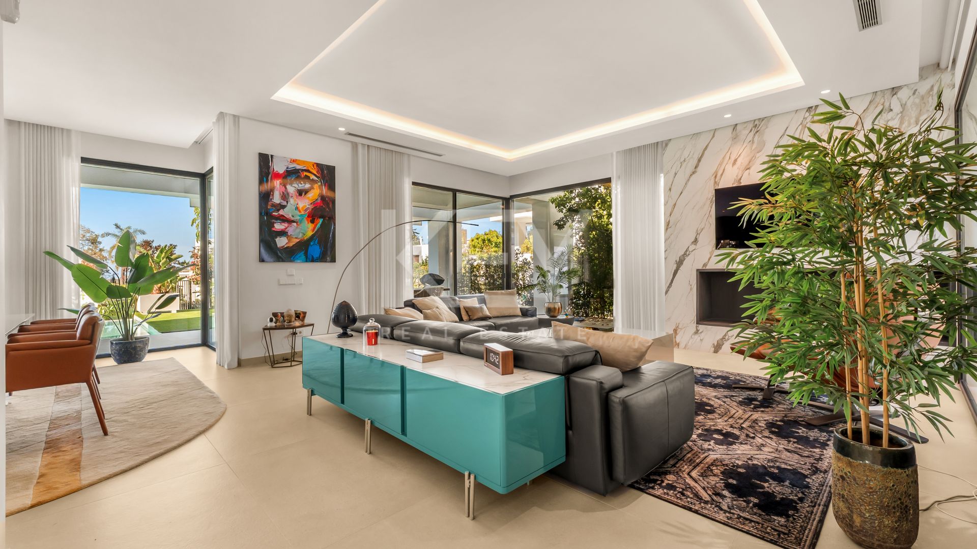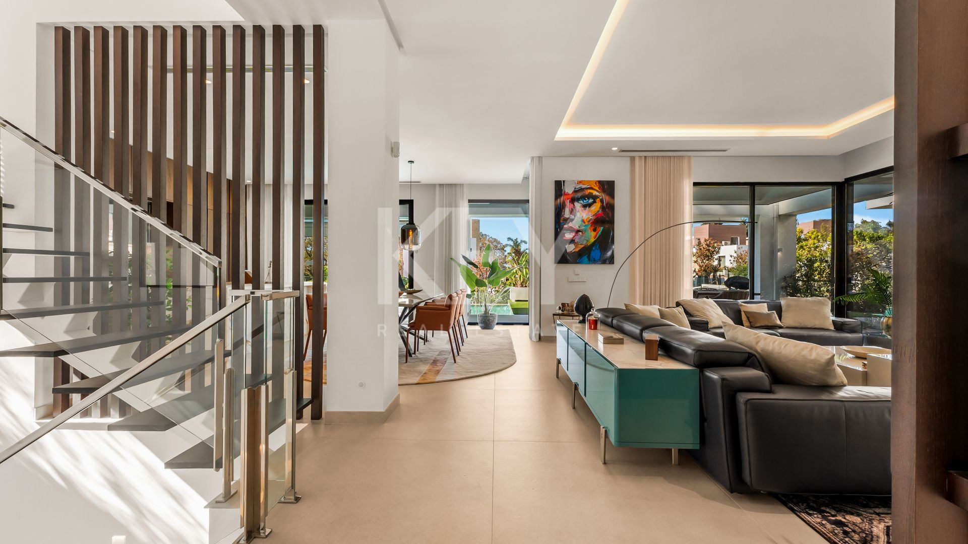 Расположенная в одном из самых востребованных районов Марбельи, эта современная вилла на Золотой Миле сочетает престижное расположение с продуманной архитектурой и высоким качеством отделки. Недвижимость находится в закрытом жилом комплексе, что обеспечивает приватность, при этом пляж, рестораны, супермаркеты и все необходимые повседневные услуги находятся в пешей доступности. Благоприятная ориентация позволяет наслаждаться естественным освещением в течение всего дня, а с террасы на крыше открываются виды на Средиземное море.