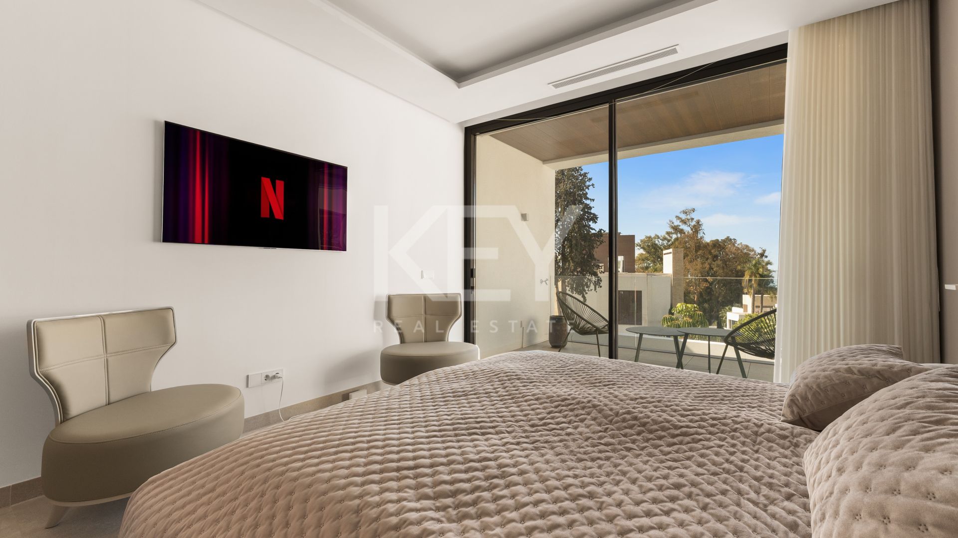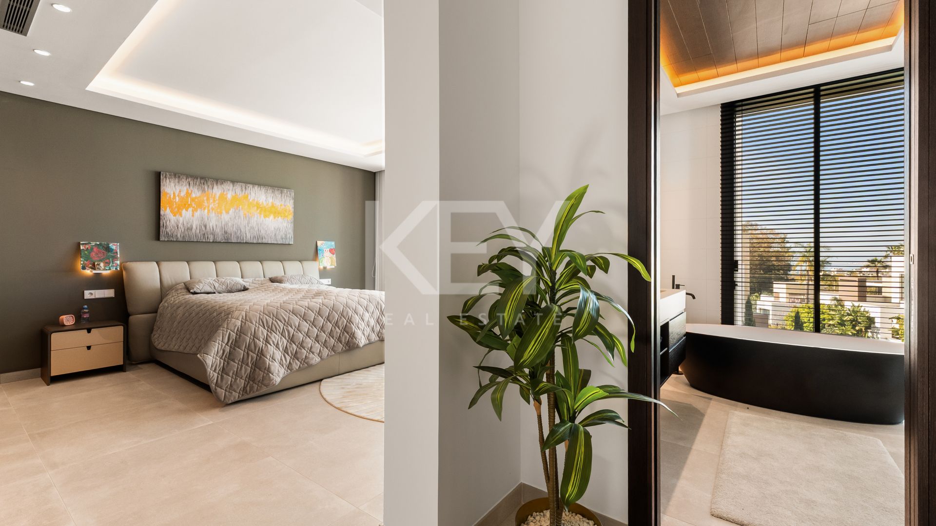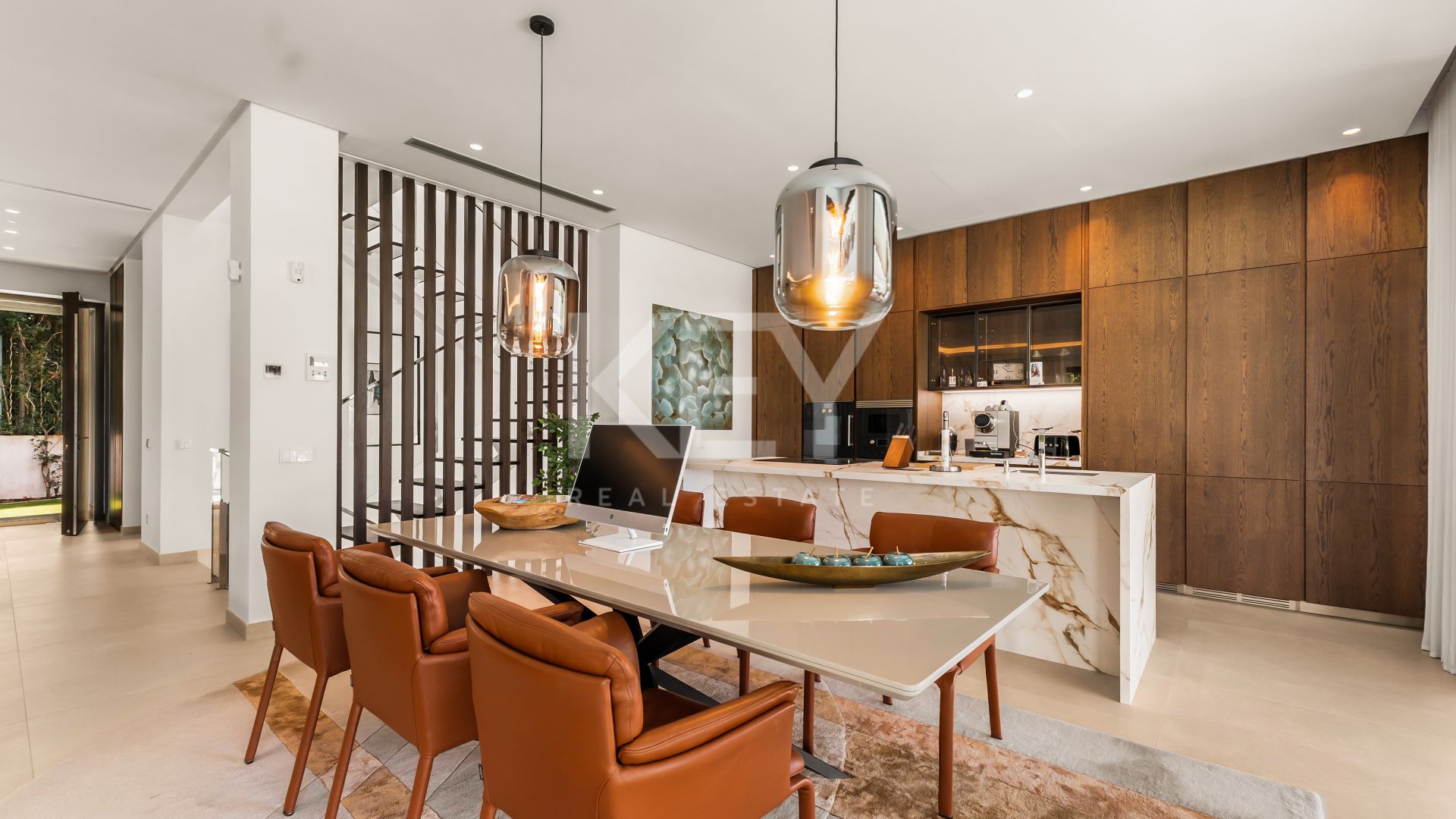 Расположенная в одном из самых востребованных районов Марбельи, эта современная вилла на Золотой Миле сочетает престижное расположение с продуманной архитектурой и высоким качеством отделки. Недвижимость находится в закрытом жилом комплексе, что обеспечивает приватность, при этом пляж, рестораны, супермаркеты и все необходимые повседневные услуги находятся в пешей доступности. Благоприятная ориентация позволяет наслаждаться естественным освещением в течение всего дня, а с террасы на крыше открываются виды на Средиземное море.
